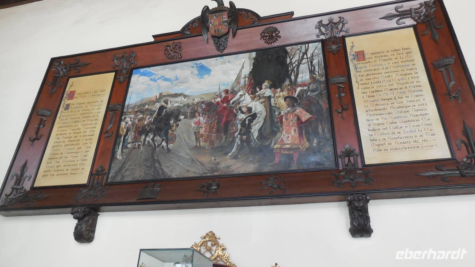 Statt zurück nach Granada mit dem Bus zu fahren, gingen wir bergab zu Fuß ins Zentrum mit einem kurzen Spaziergang durch schöne Wege. Wir erkunden noch gemeinsam die Stadt, das Rathaus, die „Zoco"-Gassen und besichtigen die „Königliche Kapelle" wo Fernando und Isabel beerdigt sind. Das Mittagessen wurde heute individuell und ich erkläre, was Tapas in Granada bedeuten. Man braucht nur ein Wein, Bier oder Getränk zu bestellen und umsonst bekommt man einen „Tapas-Teller". Jedes Mal wird er anders sein.