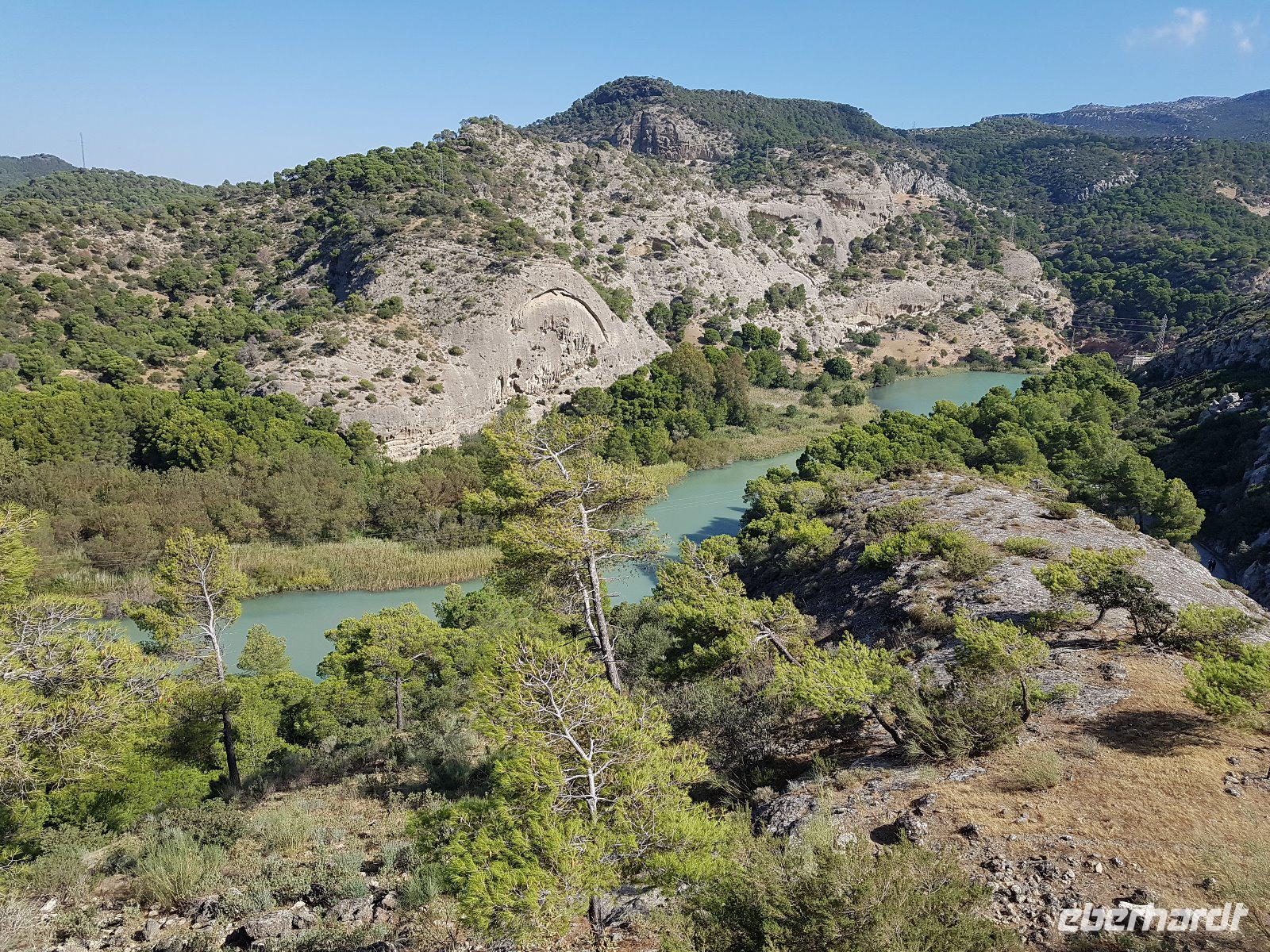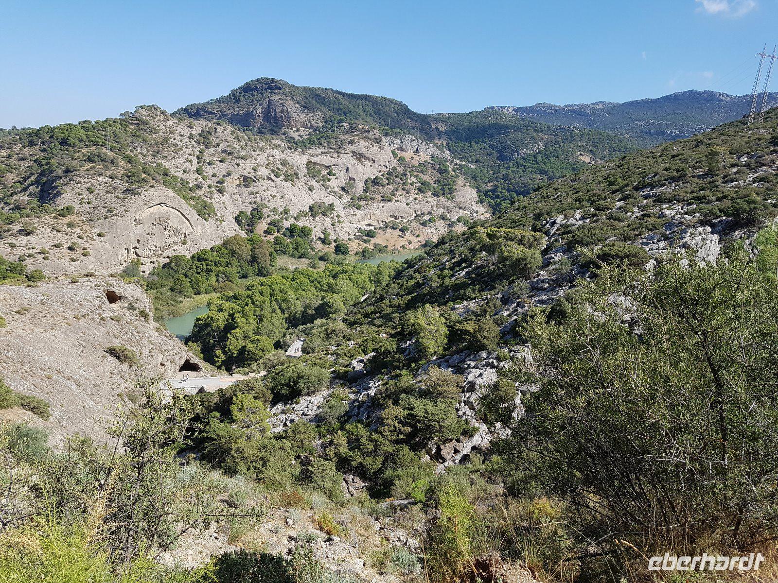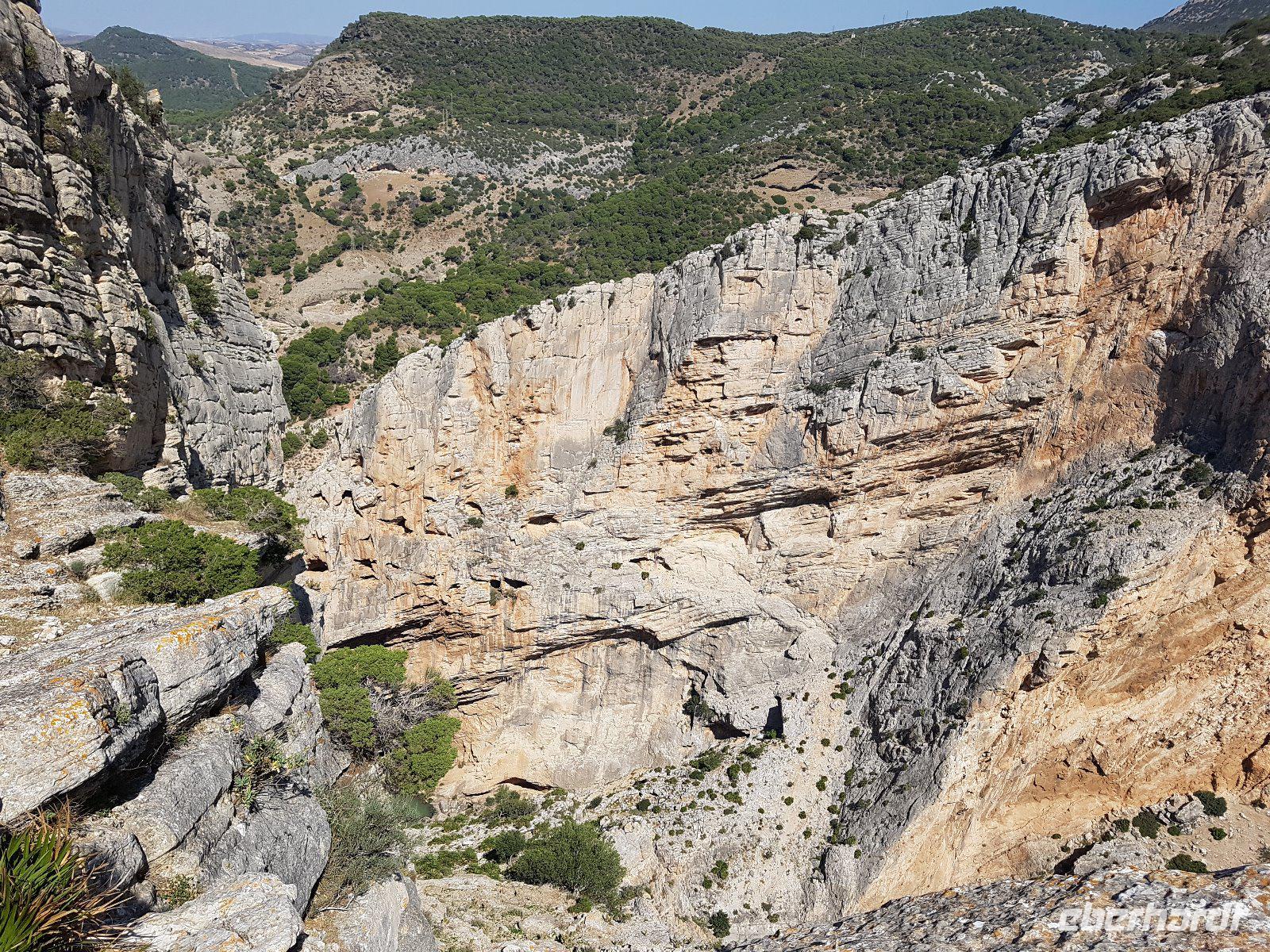 Wir fangen in El Chorro an, einst eine winzige Siedlung für die Arbeiter, die das Wasserkraftwerk Conde del Guadalhorce am Anfang des vergangenen Jahrhunderts bauten. Wir wandern um die Talsperren und Stauseen von Conde del Guadalhorce und Guadalteba und erstaunen atemberaubende Blicke in tiefe Schluchten wie „Desfiladero de los Gaitanes".