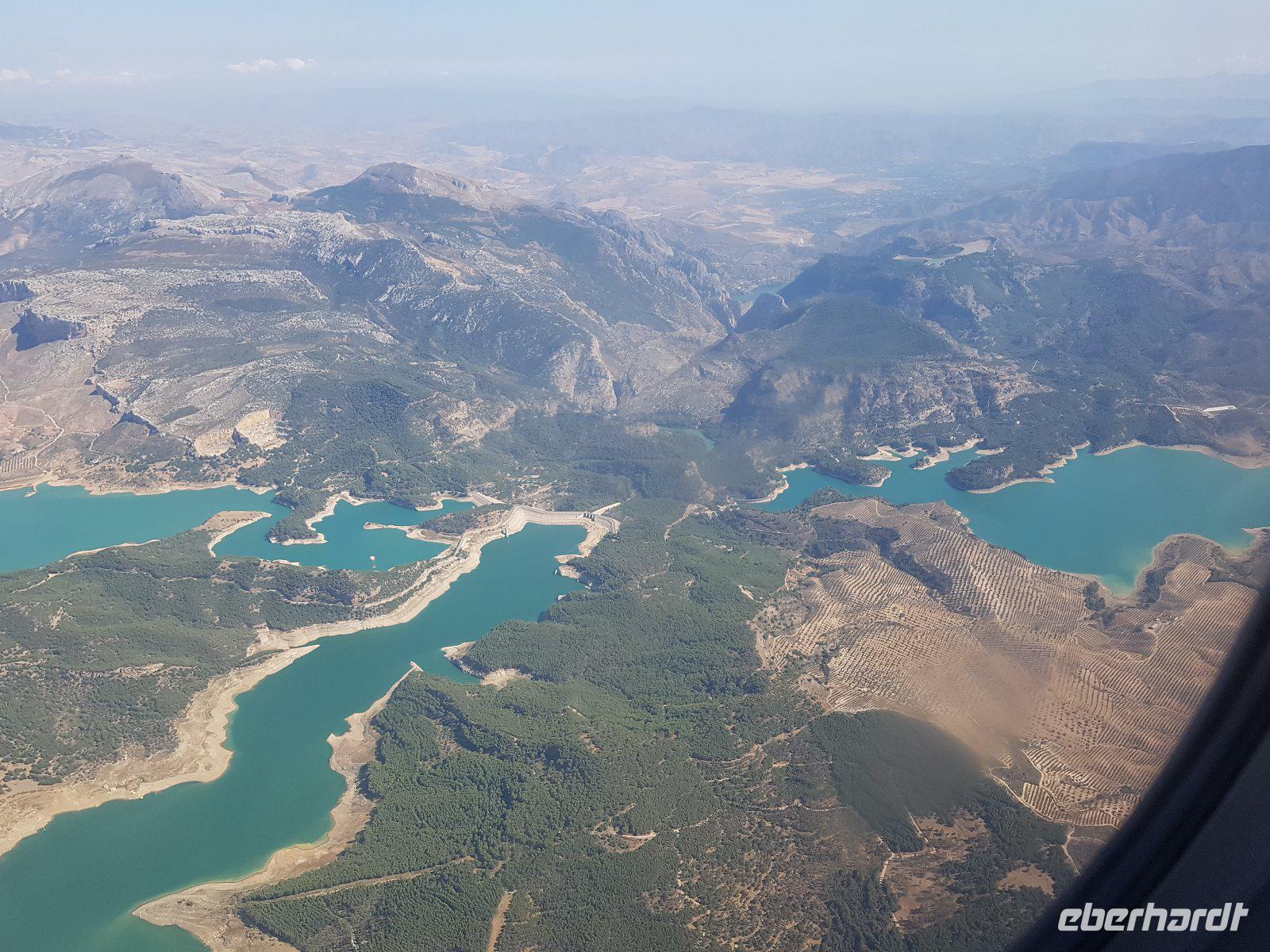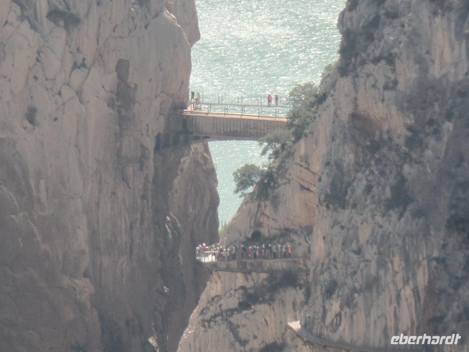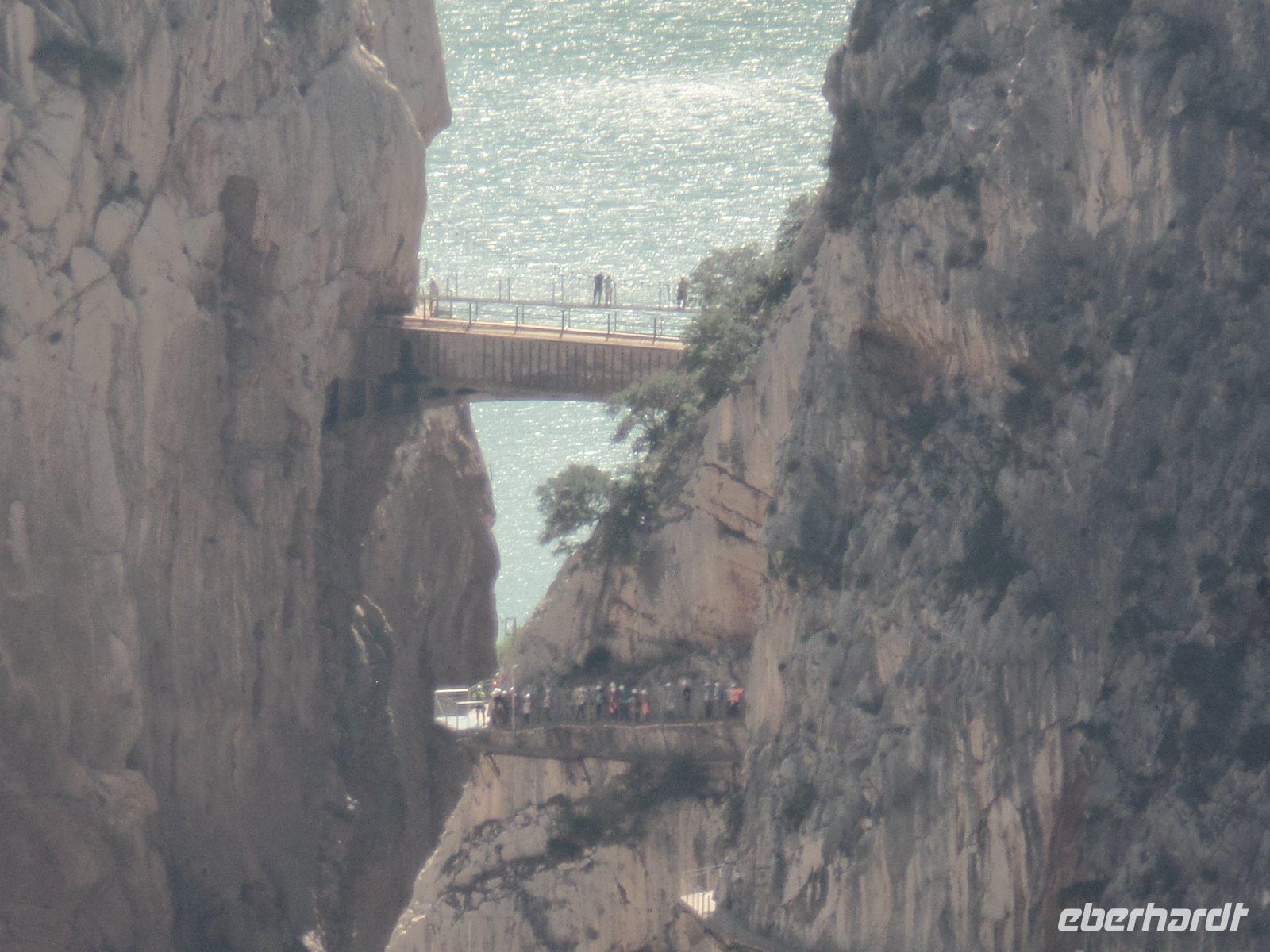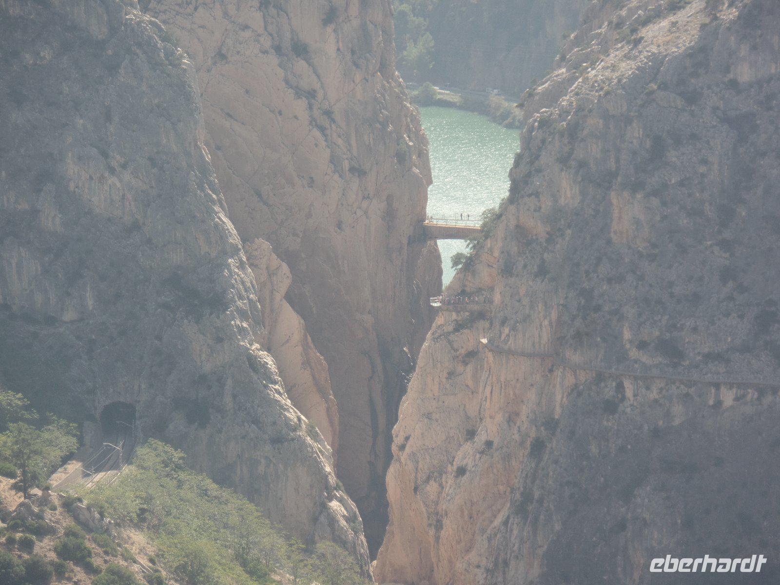 Wir fangen in El Chorro an, einst eine winzige Siedlung für die Arbeiter, die das Wasserkraftwerk Conde del Guadalhorce am Anfang des vergangenen Jahrhunderts bauten. Wir wandern um die Talsperren und Stauseen von Conde del Guadalhorce und Guadalteba und erstaunen atemberaubende Blicke in tiefe Schluchten wie „Desfiladero de los Gaitanes".