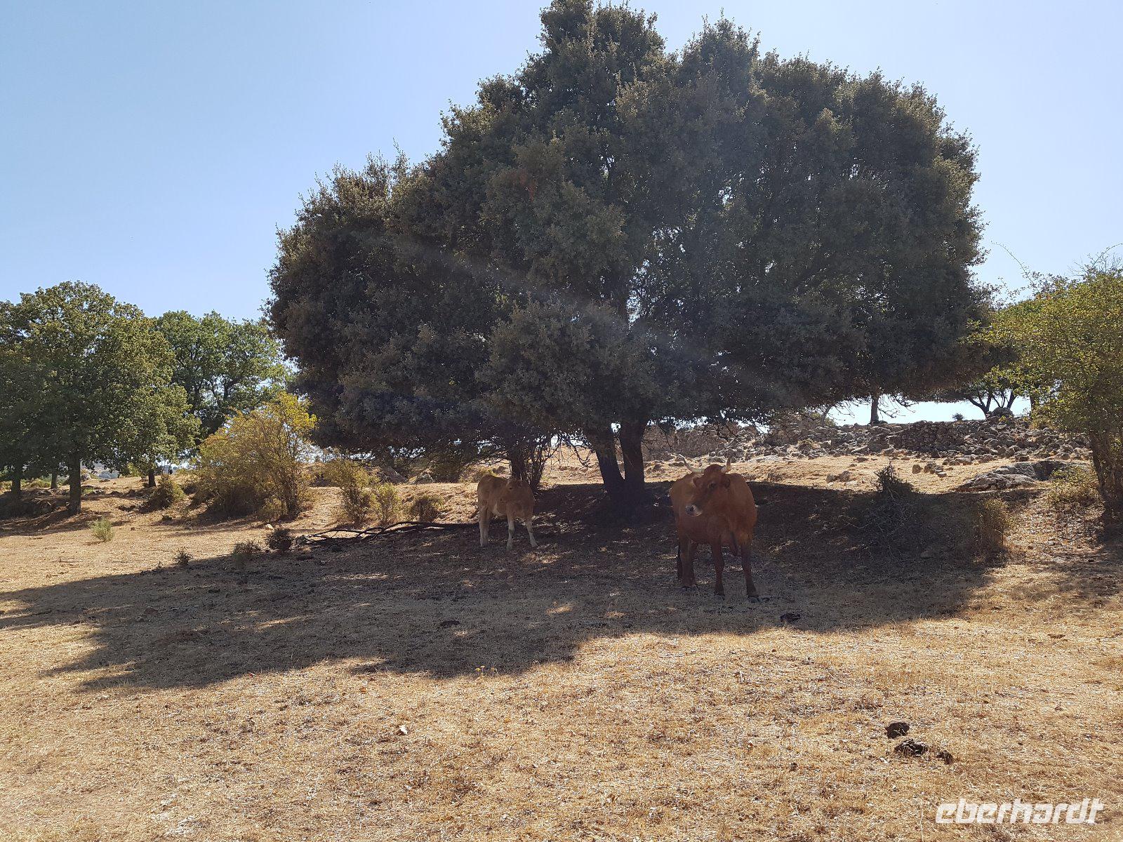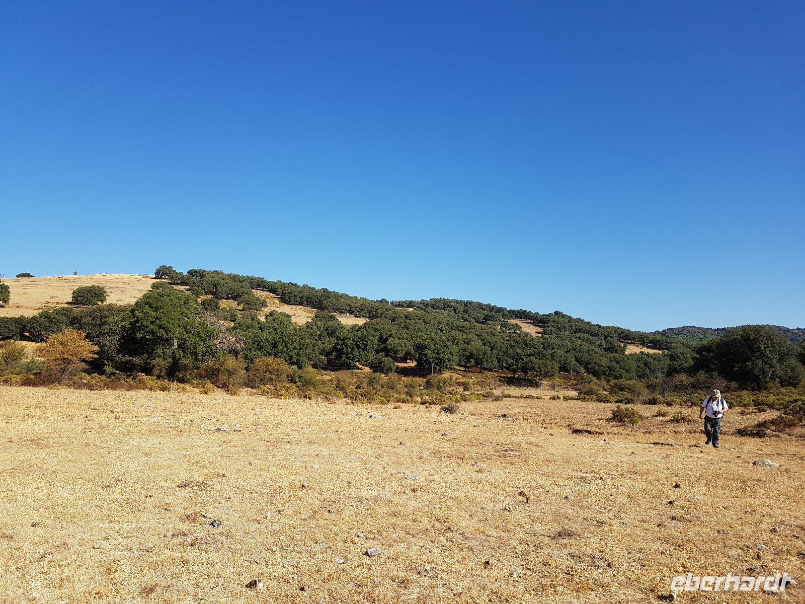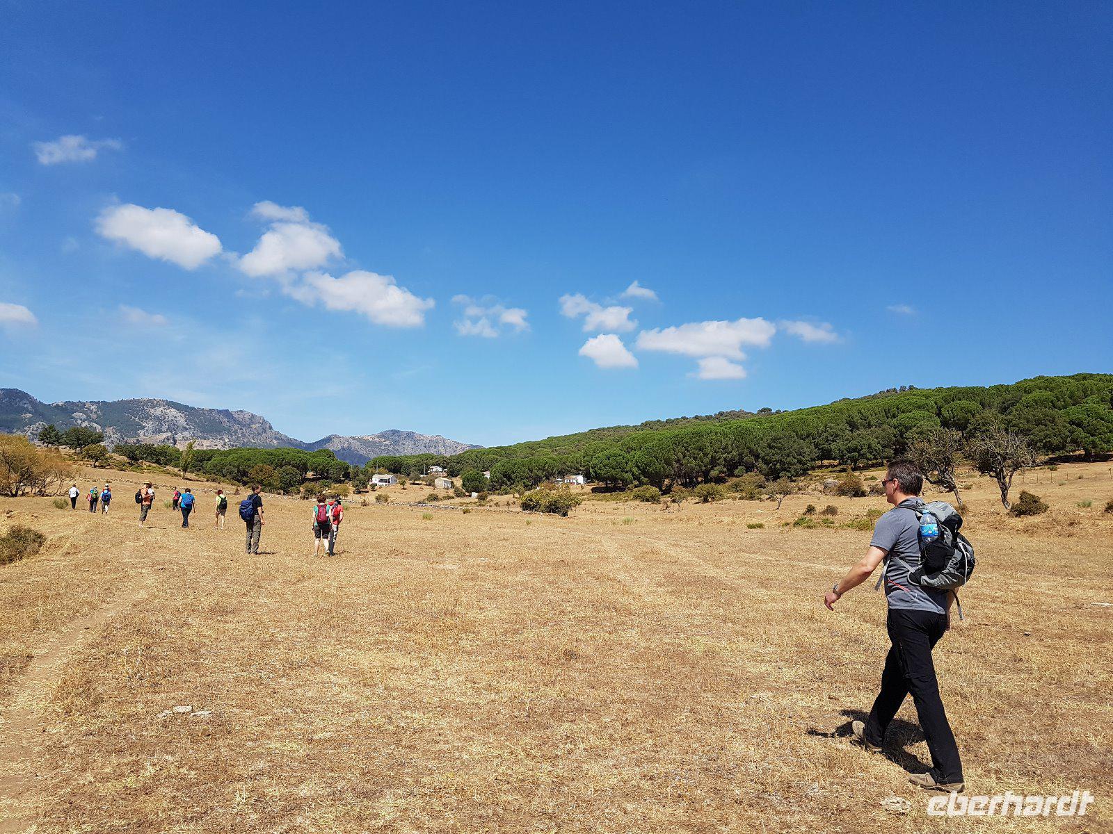 Die Sonne kommt langsam hoch und färbt den Himmel rosa. Uns begeistert immernoch die herrliche Anlage des Hotels. Wir fuhren heute hoch Richtung Grazalema-Gebirge. Dort trafen wir unsere Wander-Reiseleiterin Frau Jo Carter, eine sehr nette englische Frau, die seit vielen Jahren hier lebt. Sie und ihr Mann Fernando bereiteten liebevoll für uns alle leckere Brötchen vor. Wir machten heute eine wunderschöne Wanderung über Wiesen und durch einen dichten Korkeichenwald, mit den berühmten Korkeichenbäumen.Im Frühling hätten wir mehr Blumen gesehen. Nun im Herbst ist es nicht mehr so, sondern trocken nach dem Sommer aber immerhin die Berge und Sonne machen es alles herrlich. Namensgebend sind die mächtigen Korkschichten des Stammes, die zur Korkgewinnung genutzt werden. Ein einzelner Baum kann sogar während seines Lebens 100 bis 200 Kilogramm Kork liefern. Auf dem Weg zur Wanderung haben wir uns gewundert, warum die Bäume so komisch geschnitten waren. Aber jetzt dank Jo haben wir es verstanden. Alle neun Jahre werden Sie geschnitten, um Kork zu gewinnen. Es schadet den Bäumen nicht, weil es nur die äußerste Schutzhülle ist.