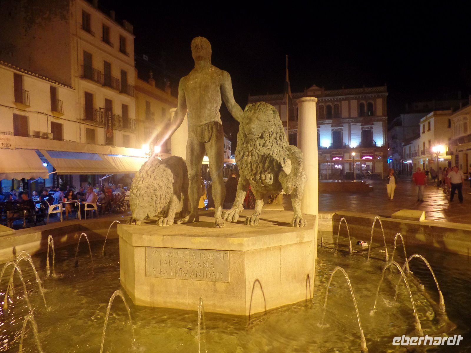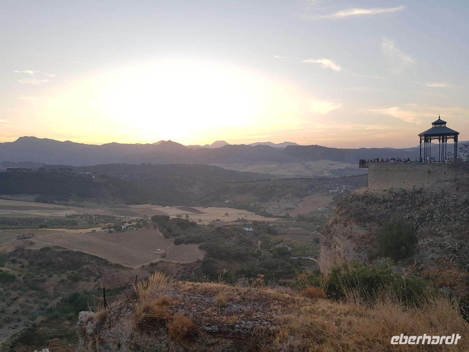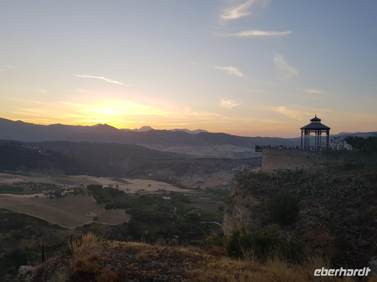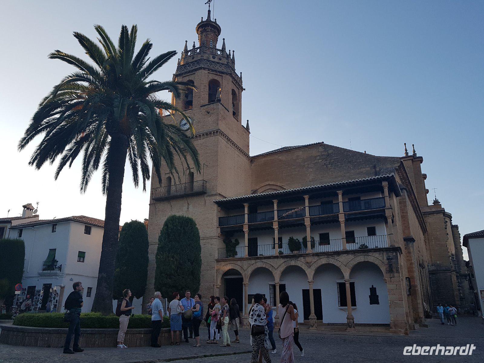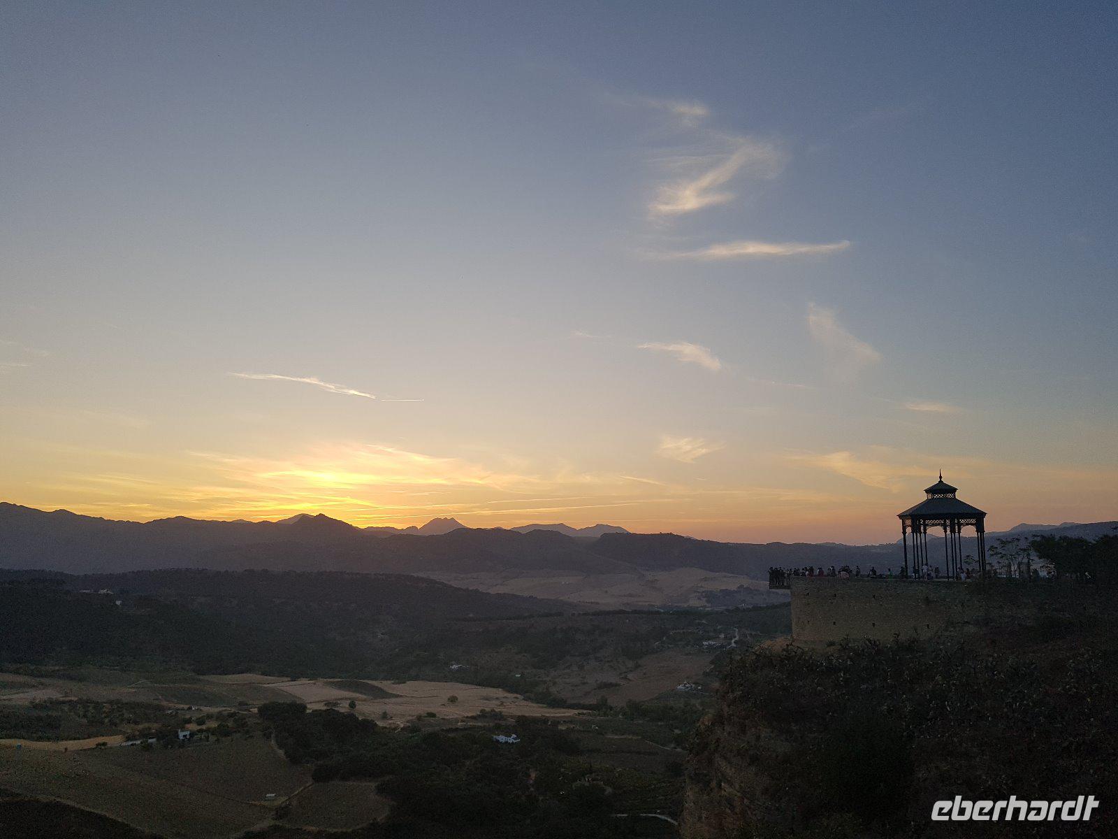 Nachdem wir auf einer Wiese unsere Brötchen gegessen hatten, kehrten wir auf einem einfacheren Weg zum Bus zurück. Wir hielten noch in Grazalema (eines von der Weisen-Dörfer -Route) um dieses winzige kleine Dorf unter den massigen Berge zu erleben. Wir fuhren zurück ins Hotel und hatten Zeit uns im Hotel auszuruhen und frisch zu machen, bevor wir nach Ronda für den Stadtrundgang fuhren. Wir zogen uns chic an und trafen am späten Nachmittag unseren örtlichen Reiseleiter Daniel Stachel in Ronda, der uns diese andalusische Kleinstadt zeigte. Ronda liegt auf einer Höhe von 723 m über dem Meeresspiegel in einer als Serranía de Ronda bekannten Berglandschaft. In Ronda gibt es sozusagen zwei getrennte Städte oder Viertel, die mit einer Brücke über eine Schlucht verbunden sind. Wir besichtigten erstmal die Stierkampf-Arena von außen. Für uns Spanier ist Ronda insbesondere wegen seiner Rolle in der Entwicklung des Stierkampfes von Bedeutung.