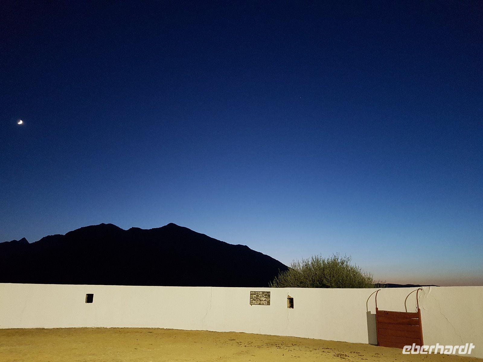 Wir staunen über unser romantisch gelegenes Hotel und nach dem Check-In trafen wir uns zum Abendessen bei einem herrlichem Sonnenuntergang. Das Hotel liegt auf einem Hügel mit einem herrlichen Blick auf einen Stausee. Heute hatten wir auch eine zweite Überraschung da die besten Freunde von Benjamin, Tocho und Annalisa, mit denen er vom 1995 bis 1998 in Bayern an der katholischen Universität Eichstätt studierte, 2 Nächte hier im Hotel buchten und gemeinsam mit ihren 3 Kindern und uns die morgige Wanderung machten. Wir aßen alle gemeinsam mit Cristina, Pedro und Francesco. Bevor wir ins Bett gingen, bestaunten wir auch den spanischen Himmel voller Sterne.