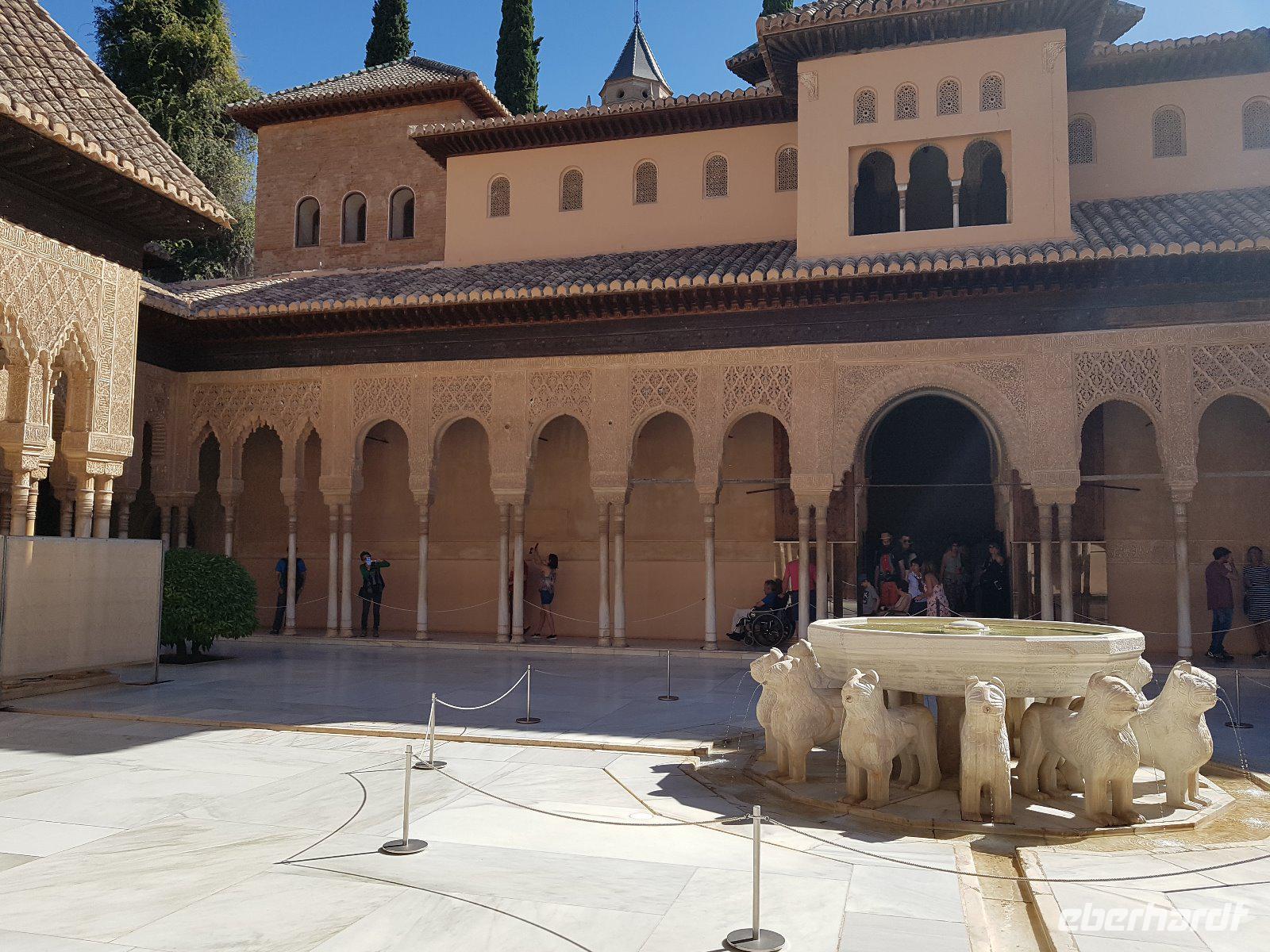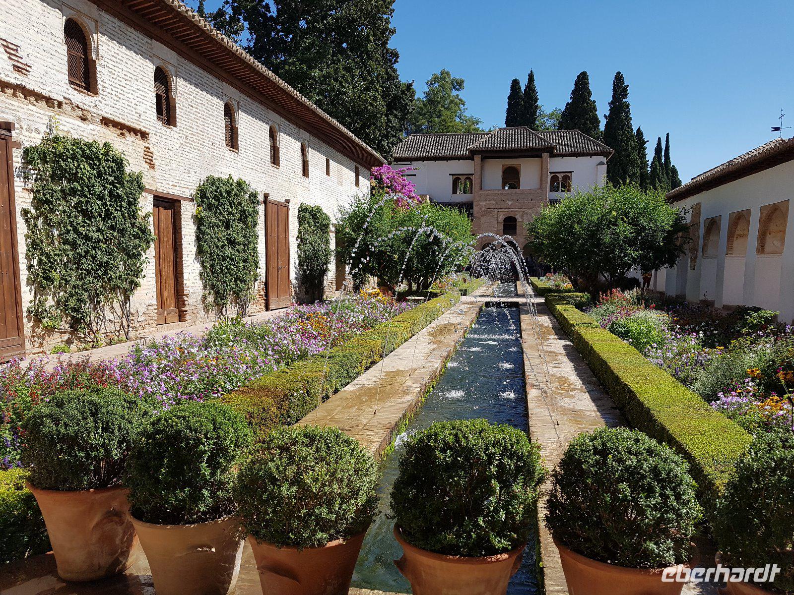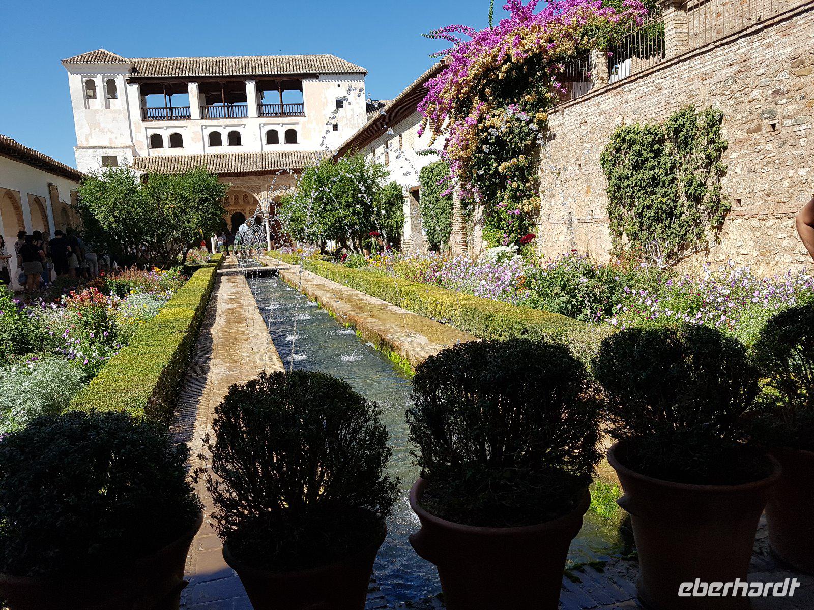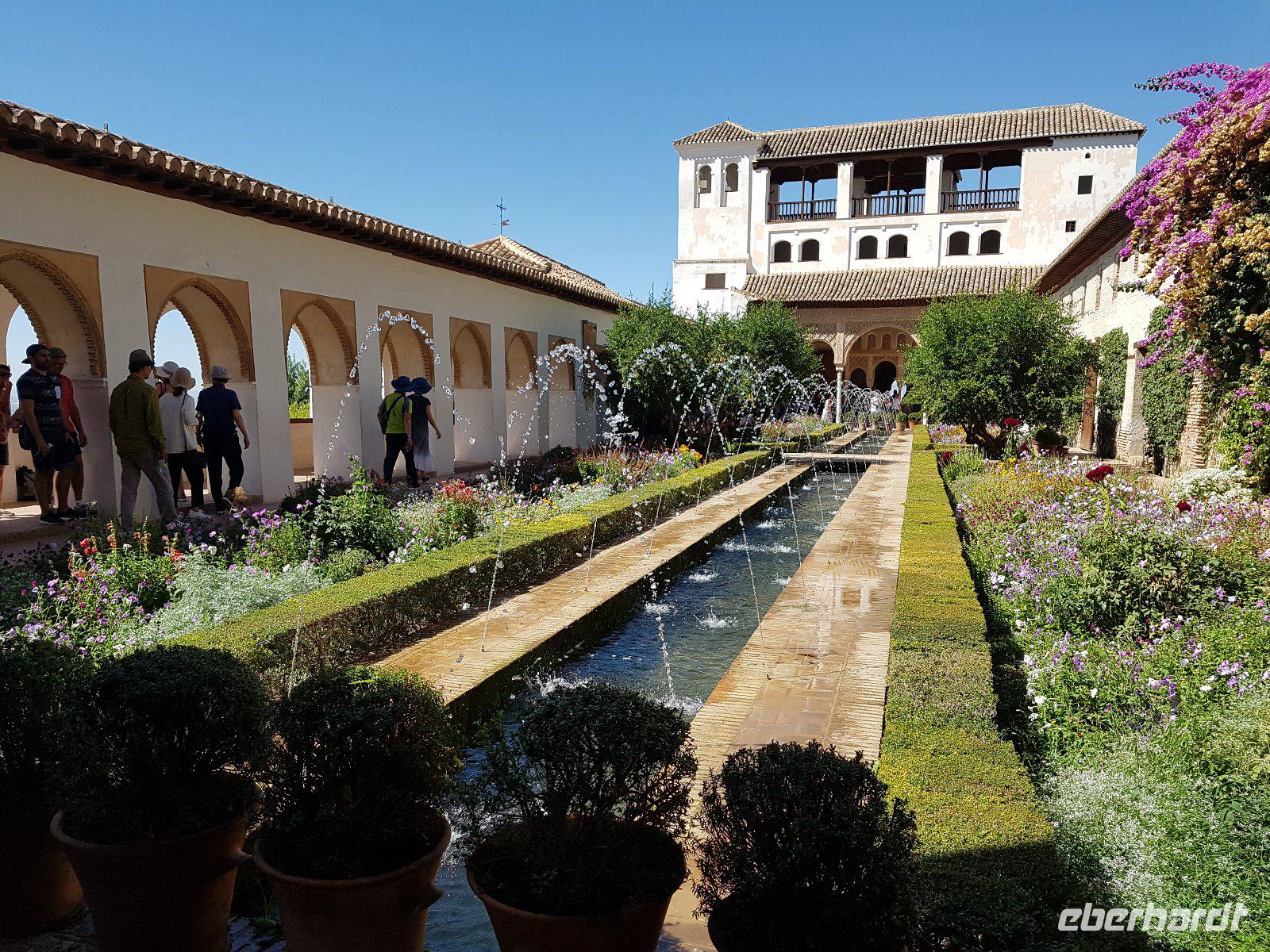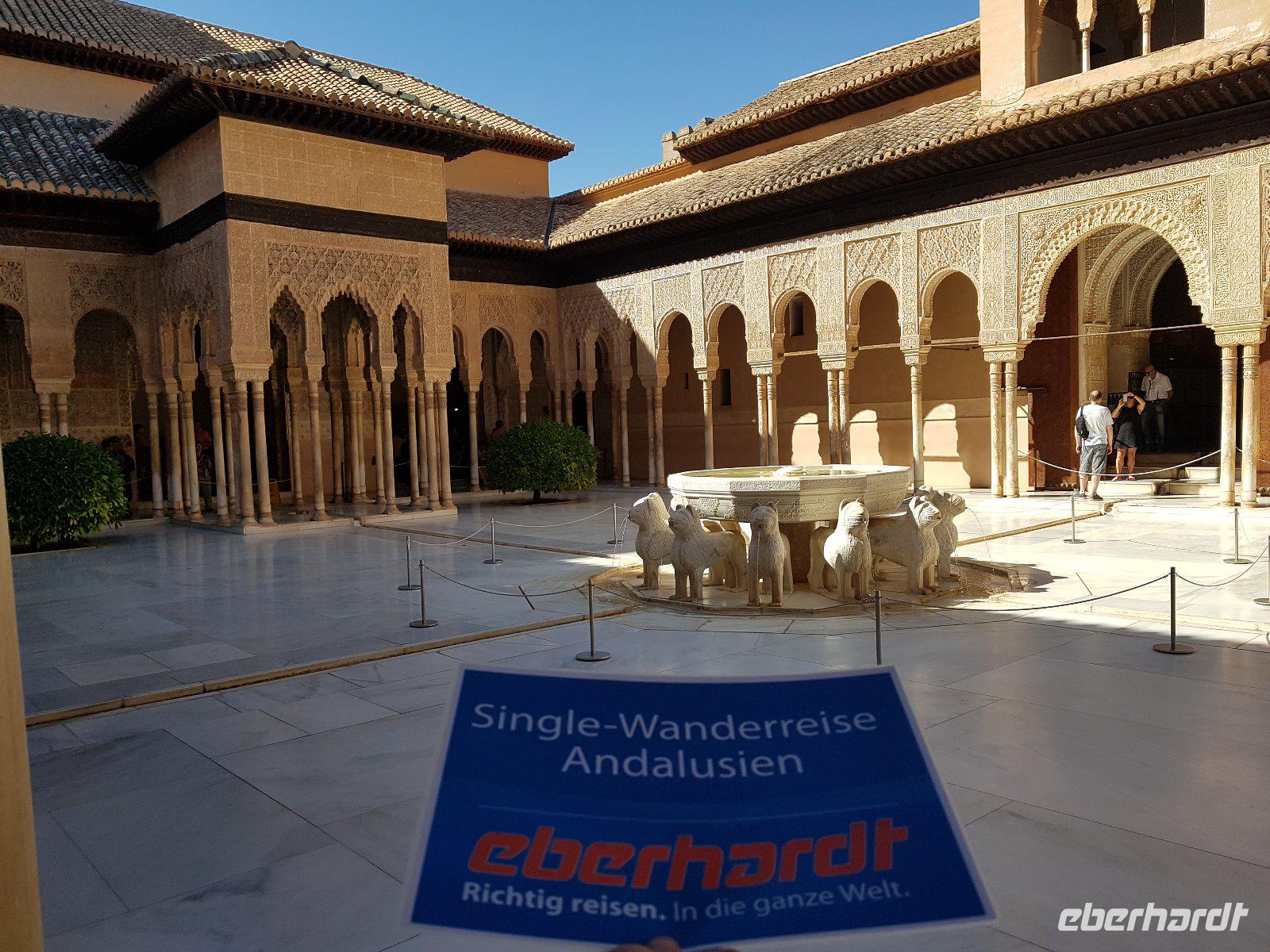 Früh am Nachmittag erwartet uns ein besonderer Höhepunkt unserer Reise: die Besichtigung der Alhambra. Die beeindruckende Stadtburg vereint mehrere Paläste, deren architektonische Erscheinung durch kunstvolle Verzierungen ein wahres Meisterwerk der Baukunst bieten. Bezaubernde Gartenanlagen mit ihren Wasserspielen machen aus der Besichtigung ein wahres Erlebnis. Unser Reiseleiter Pedro hat dazu beigetragen, dass man ihm seine Leidenschaft und den Spaß an seiner Arbeit anmerkt. Die Alhambra ist die am meisten besuchte touristische Attraktion in ganz Spanien.