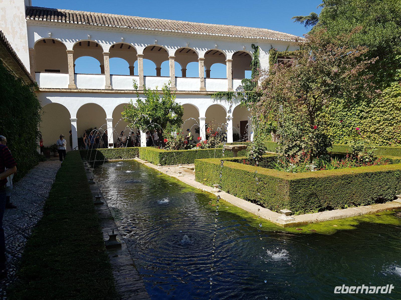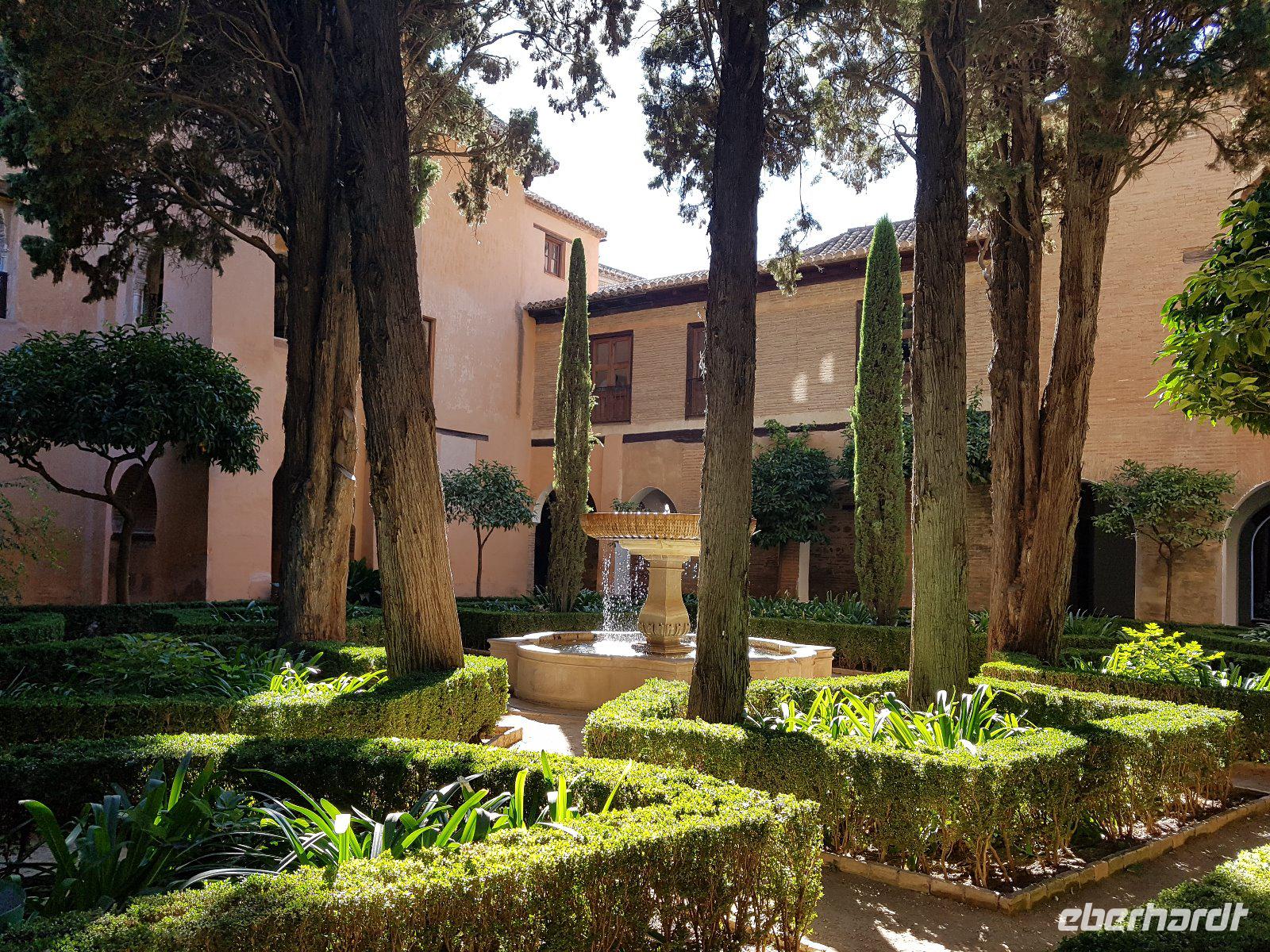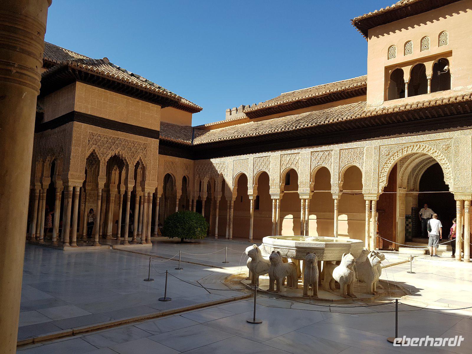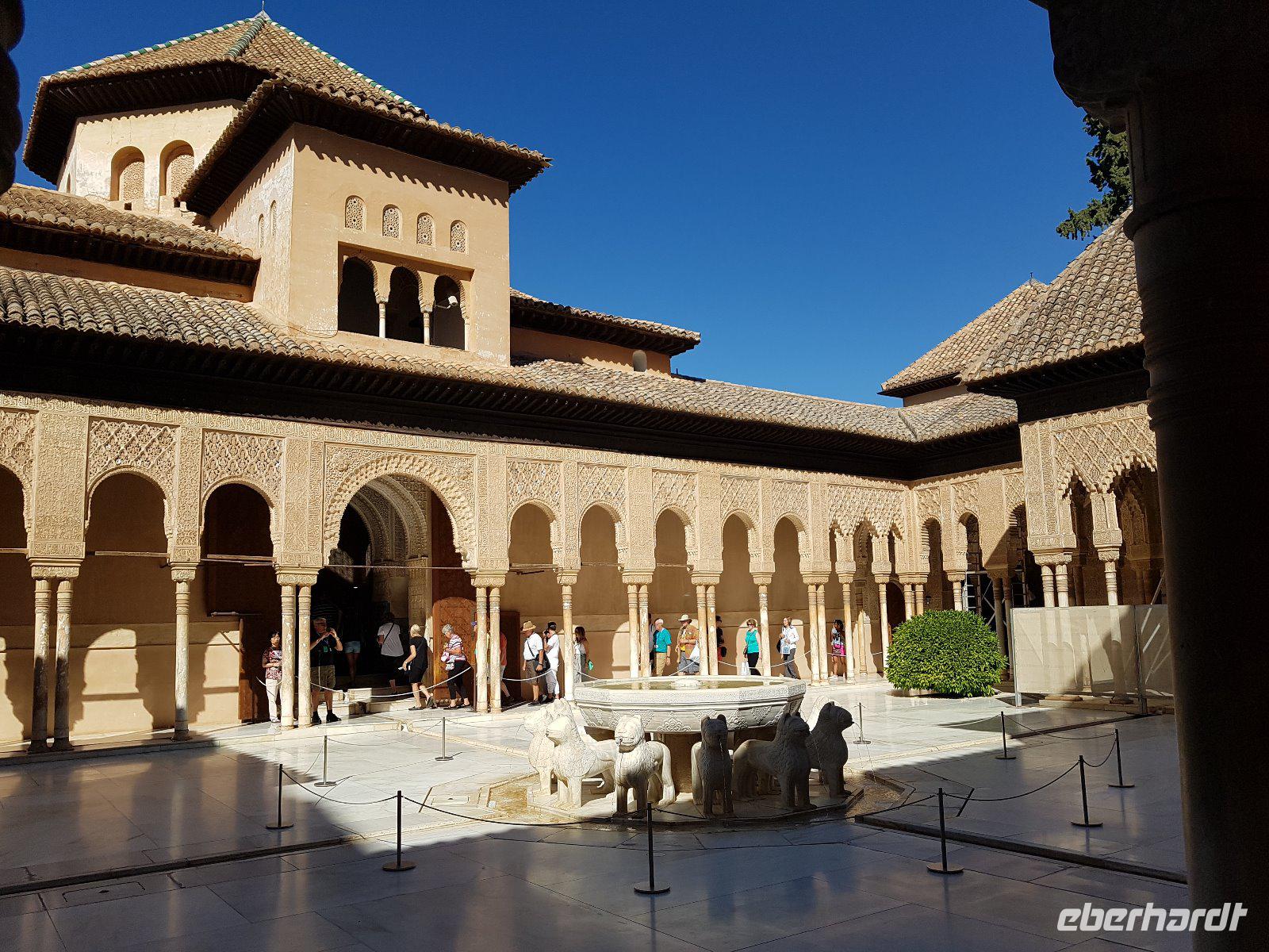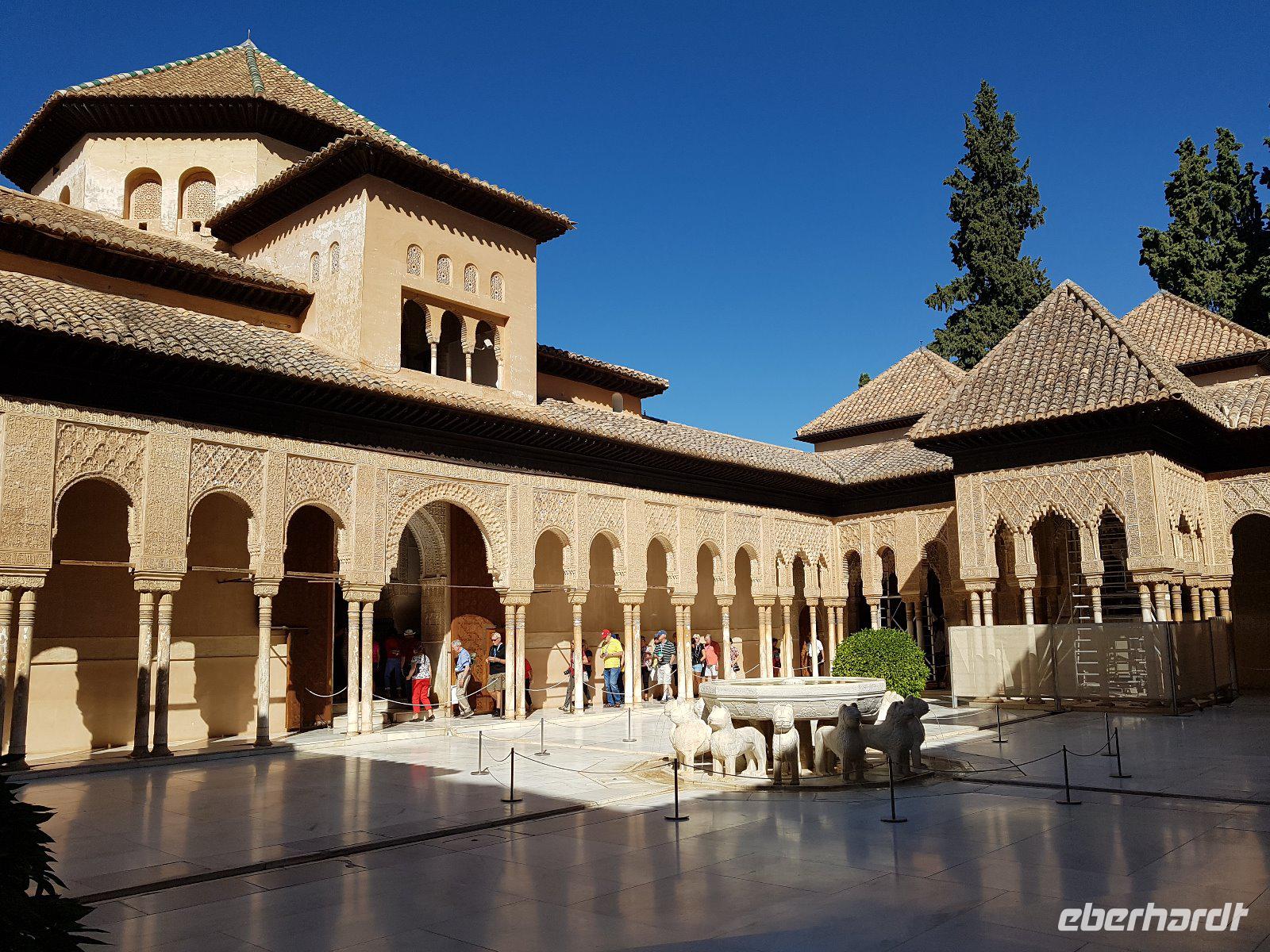 Früh am Nachmittag erwartet uns ein besonderer Höhepunkt unserer Reise: die Besichtigung der Alhambra. Die beeindruckende Stadtburg vereint mehrere Paläste, deren architektonische Erscheinung durch kunstvolle Verzierungen ein wahres Meisterwerk der Baukunst bieten. Bezaubernde Gartenanlagen mit ihren Wasserspielen machen aus der Besichtigung ein wahres Erlebnis. Unser Reiseleiter Pedro hat dazu beigetragen, dass man ihm seine Leidenschaft und den Spaß an seiner Arbeit anmerkt. Die Alhambra ist die am meisten besuchte touristische Attraktion in ganz Spanien.