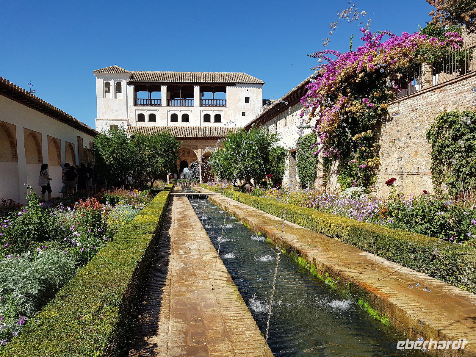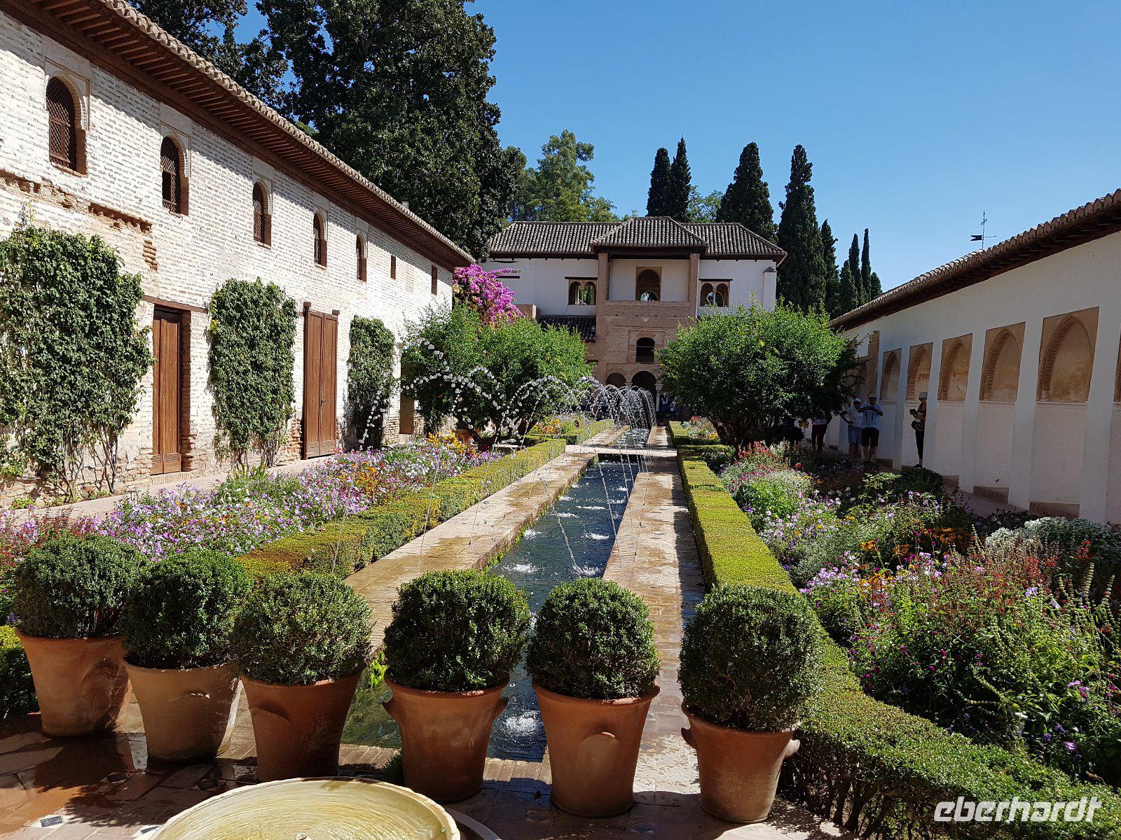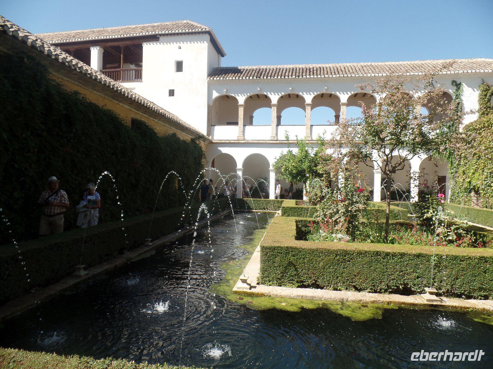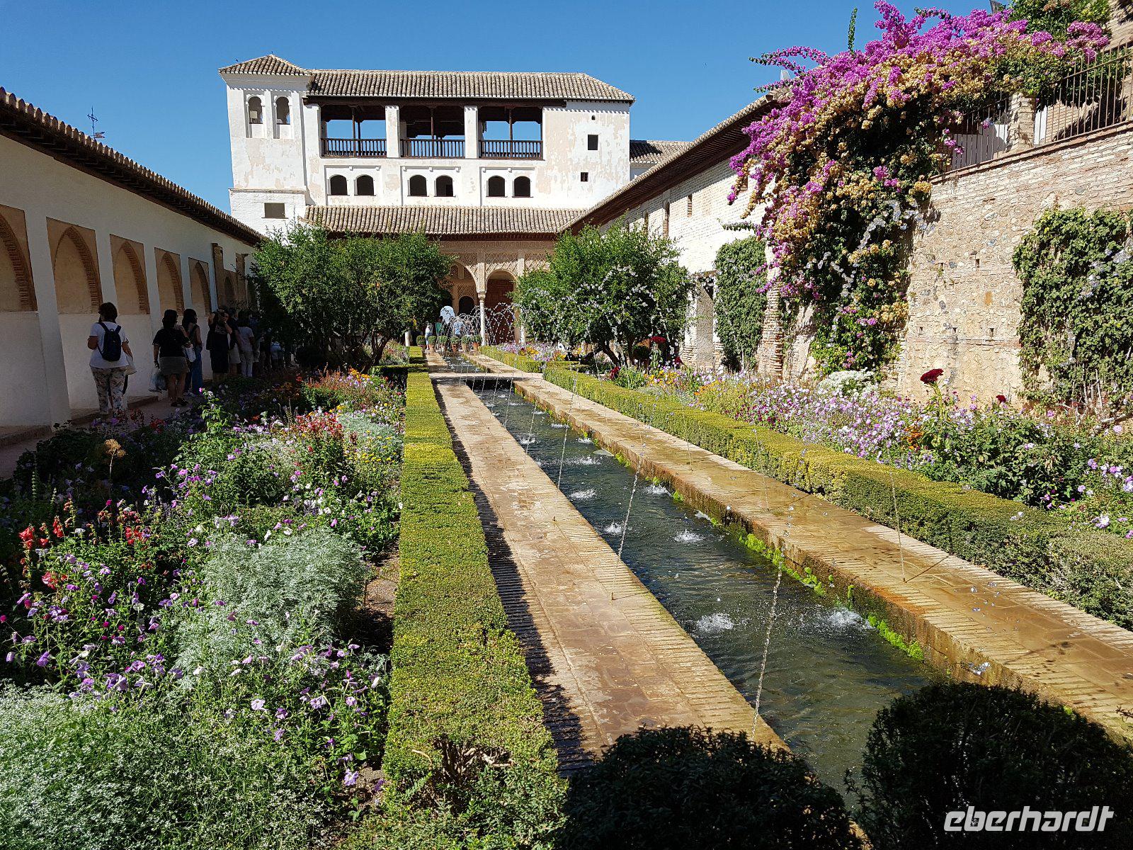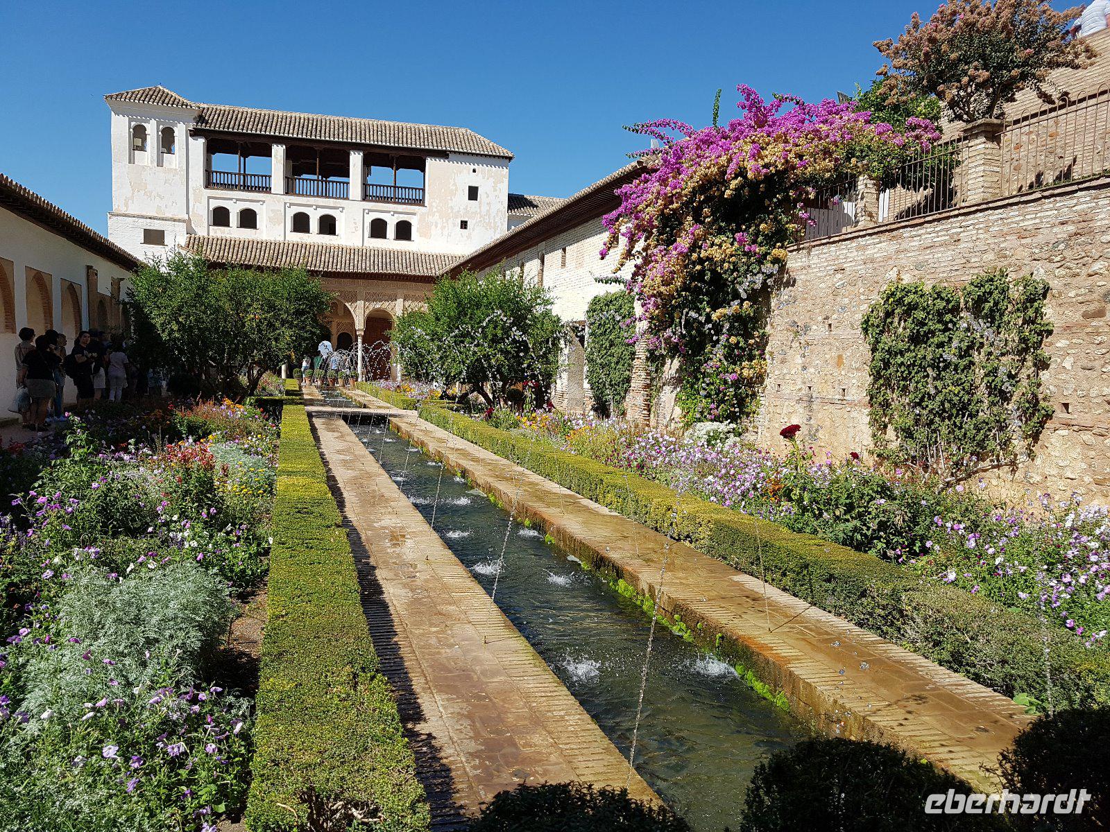 Früh am Nachmittag erwartet uns ein besonderer Höhepunkt unserer Reise: die Besichtigung der Alhambra. Die beeindruckende Stadtburg vereint mehrere Paläste, deren architektonische Erscheinung durch kunstvolle Verzierungen ein wahres Meisterwerk der Baukunst bieten. Bezaubernde Gartenanlagen mit ihren Wasserspielen machen aus der Besichtigung ein wahres Erlebnis. Unser Reiseleiter Pedro hat dazu beigetragen, dass man ihm seine Leidenschaft und den Spaß an seiner Arbeit anmerkt. Die Alhambra ist die am meisten besuchte touristische Attraktion in ganz Spanien.