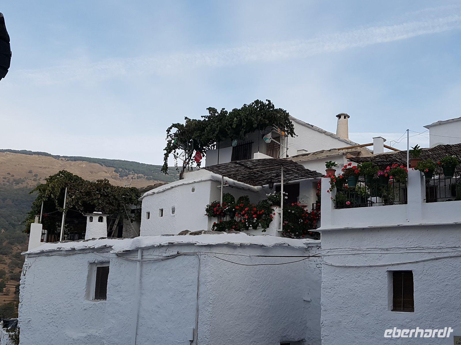Wir müssen uns leider von Granada verabschieden und im Anschluss fahren wir entlang zahlreicher Serpentinen in die Bergwelt der Alpujarras, das letzte Rückzugsgebiet der Mauren mit ihren Bergdörfern. Wir biegen in Lanjaron ab, einem Kurort Spaniens in 450 Meter Höhe. Das Dorf Capileira, wo unser idyllisches Hotel „Finca Los Llanos" ist, liegt auf 1450 Meter Höhe und ist der höchste Ort des Poqueiratals. Es war noch hell und wir hatten noch Zeit das Dorf zum ersten Mal zu erkunden, bevor wir ein deftiges, hausgemachtes, regionales Abendessen genießen durften.