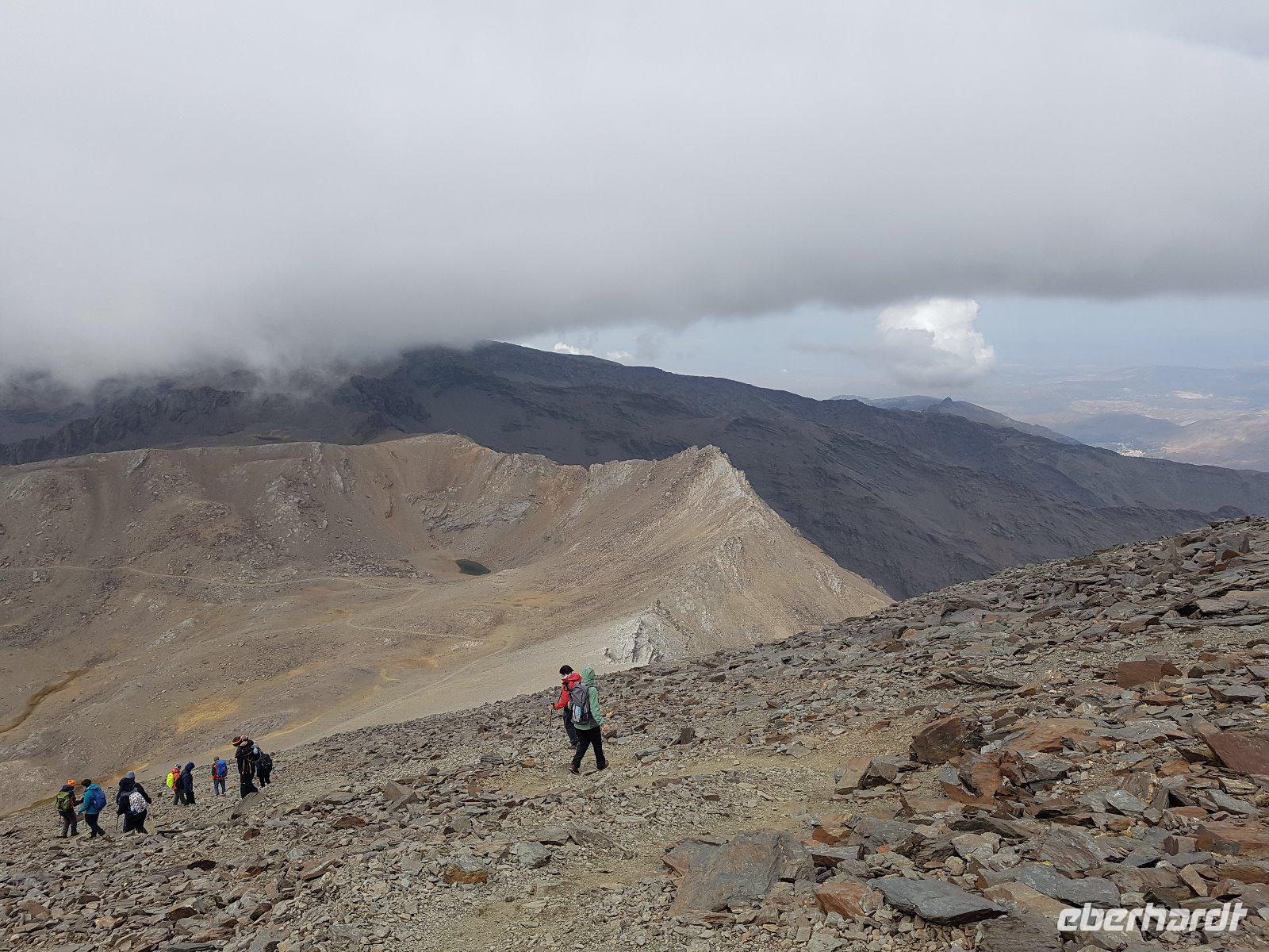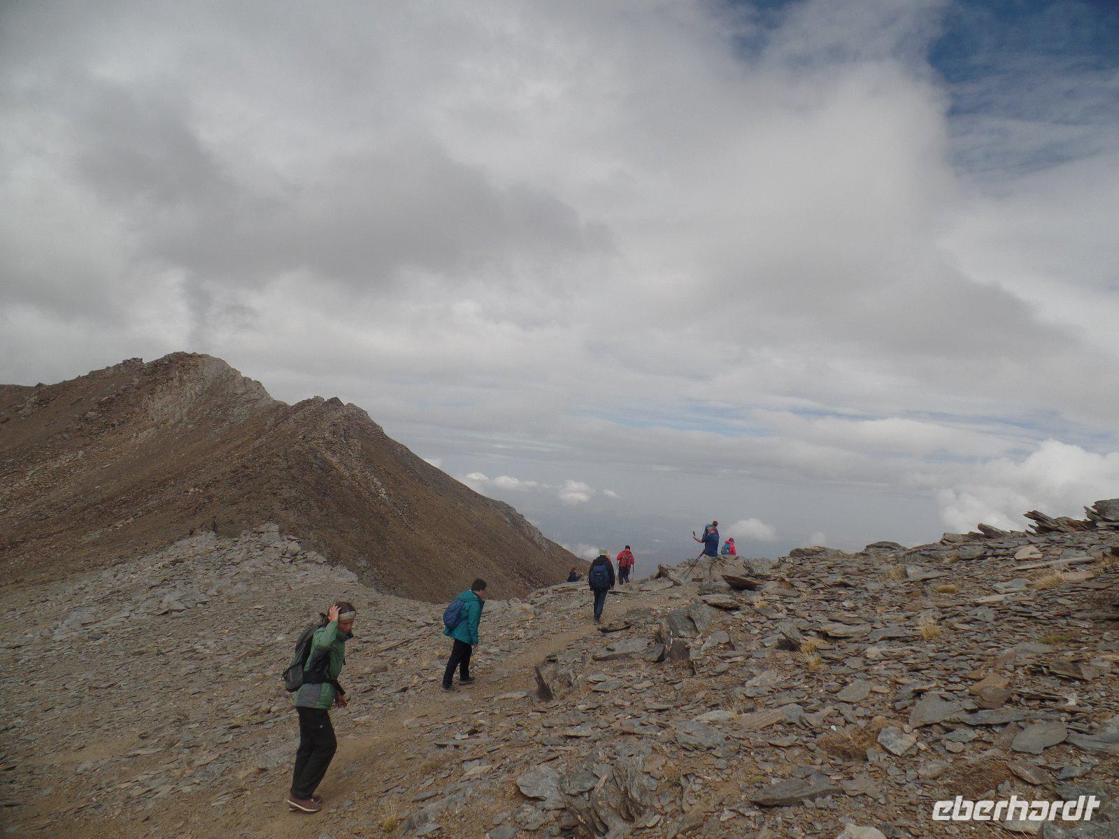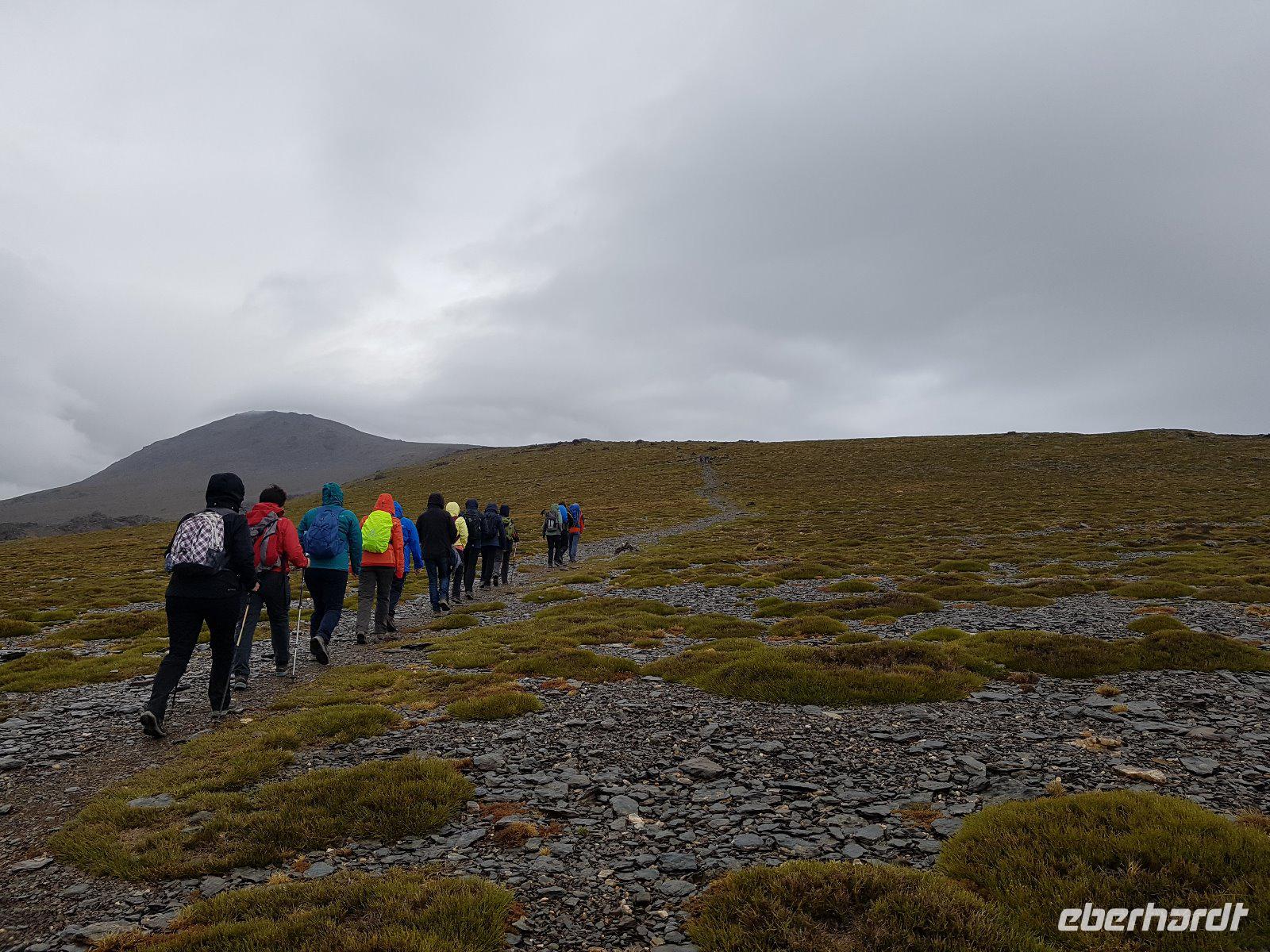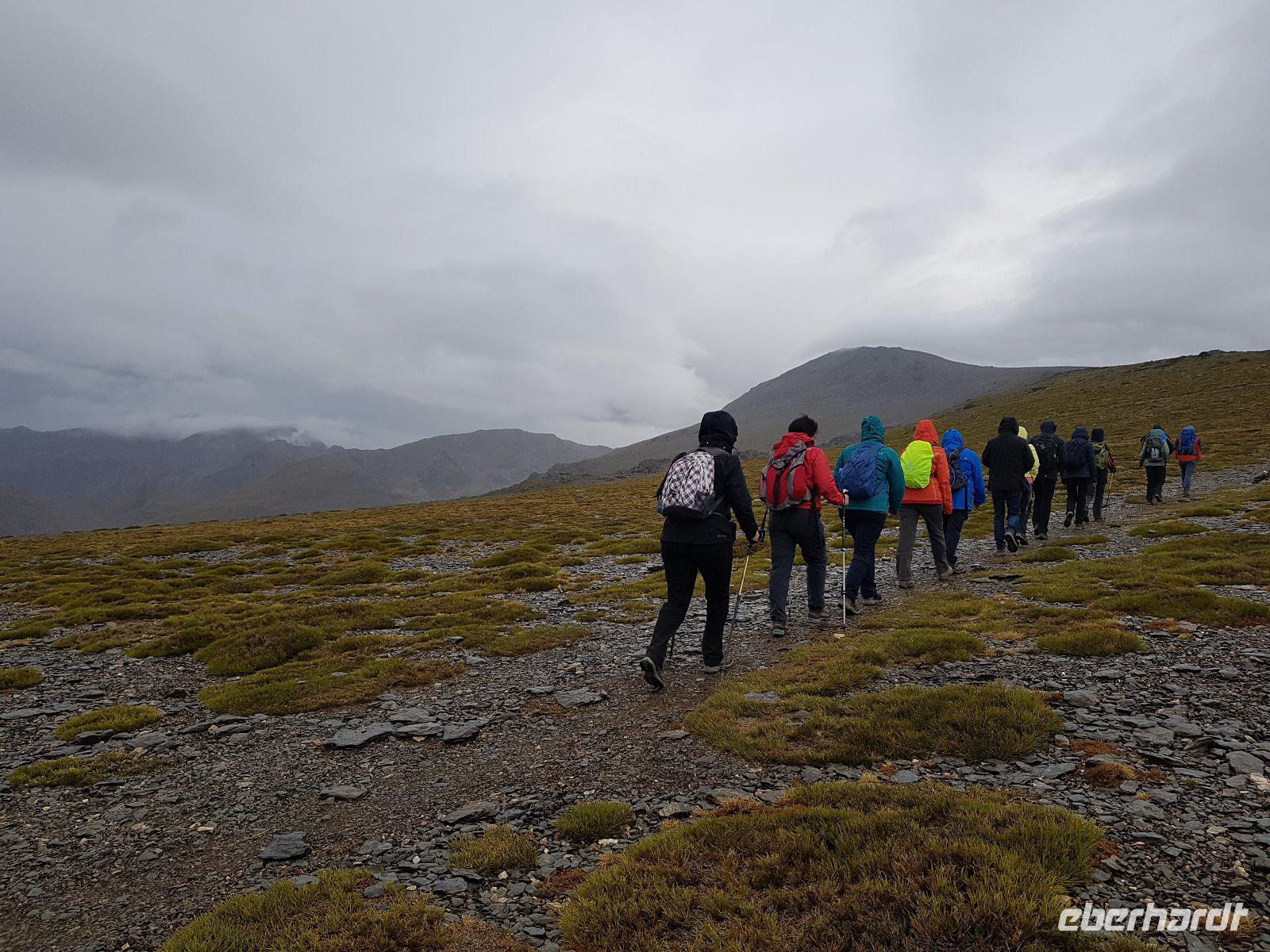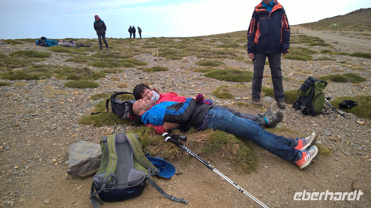 Heute wandern wir mit Wanderführer Fernando, welcher uns wieder am Hotel abholt. Unsere ca. 19 km lange Tour führt uns mit einem Bus von National Park hinauf auf 2100 m in die Sierra Nevada. Das Wetter war heute gut und perfekt für die Wanderung da es nicht so sonnig war aber oben einen guten klaren Blick hatten. Es regnete ein bisschen am Anfang aber wir sind gut ausgerüstet und ließen uns davon nicht abschrecken. Durch die dichten Wolken versecken sich auch die beiden höchsten Spitzen der Sierra Nevada, der Venta und der Mulhacen vor uns. Es war für uns alle eine Ehre heute das höchste Gipfel vom iberischen Halbinsel zu besteigen und hier oben auf 3.428 Metern machten wir tollen Bildern. Später weiter unten machten wir uns auf eine Hütte unser Picknick. Von hier oben sehen wir immer wieder auch Wasserkanäle, welche noch aus der maurischen Zeit stammen und noch heute genutzt werden. Um 16 Uhr waren wir wieder am Parkplatz wo der Bus von National Park heute morgen uns verlassen hatte und fuhren wieder unten durch einen Wald, voll von gemeinen mitteleuropäischen Kiefern, nach Capileira wo wir vor dem Abendessen noch eine echte richtige Flamenco-Abend hatten. Uns wird diesen typisch spanischen Tanzstil dargestellt und später versuchten wir es auch mit den Händen und Füssen es irgendwie nachzumachen. Lustig und voll Leidenschaft und Lebensfreude. Später um 20 Uhr genossen wir das andalusische Buffet in unserem Hotel als Abendessen.