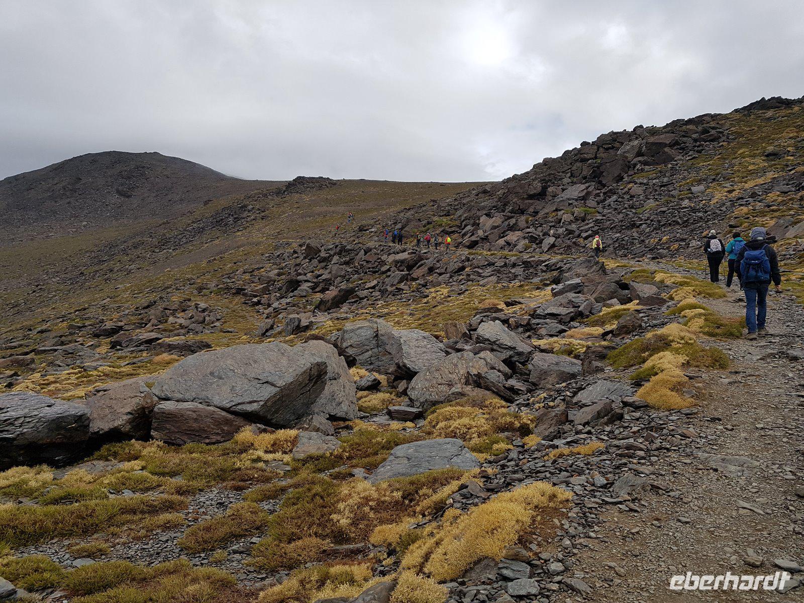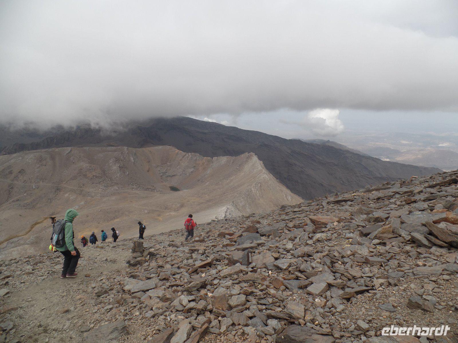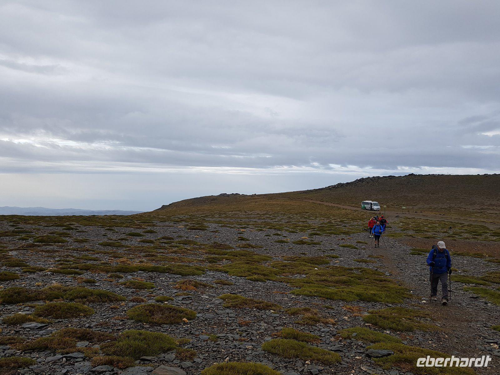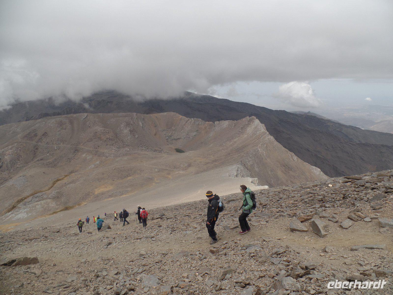 Heute wandern wir mit Wanderführer Fernando, welcher uns wieder am Hotel abholt. Unsere ca. 19 km lange Tour führt uns mit einem Bus von National Park hinauf auf 2100 m in die Sierra Nevada. Das Wetter war heute gut und perfekt für die Wanderung da es nicht so sonnig war aber oben einen guten klaren Blick hatten. Es regnete ein bisschen am Anfang aber wir sind gut ausgerüstet und ließen uns davon nicht abschrecken. Durch die dichten Wolken versecken sich auch die beiden höchsten Spitzen der Sierra Nevada, der Venta und der Mulhacen vor uns. Es war für uns alle eine Ehre heute das höchste Gipfel vom iberischen Halbinsel zu besteigen und hier oben auf 3.428 Metern machten wir tollen Bildern. Später weiter unten machten wir uns auf eine Hütte unser Picknick. Von hier oben sehen wir immer wieder auch Wasserkanäle, welche noch aus der maurischen Zeit stammen und noch heute genutzt werden. Um 16 Uhr waren wir wieder am Parkplatz wo der Bus von National Park heute morgen uns verlassen hatte und fuhren wieder unten durch einen Wald, voll von gemeinen mitteleuropäischen Kiefern, nach Capileira wo wir vor dem Abendessen noch eine echte richtige Flamenco-Abend hatten. Uns wird diesen typisch spanischen Tanzstil dargestellt und später versuchten wir es auch mit den Händen und Füssen es irgendwie nachzumachen. Lustig und voll Leidenschaft und Lebensfreude. Später um 20 Uhr genossen wir das andalusische Buffet in unserem Hotel als Abendessen.