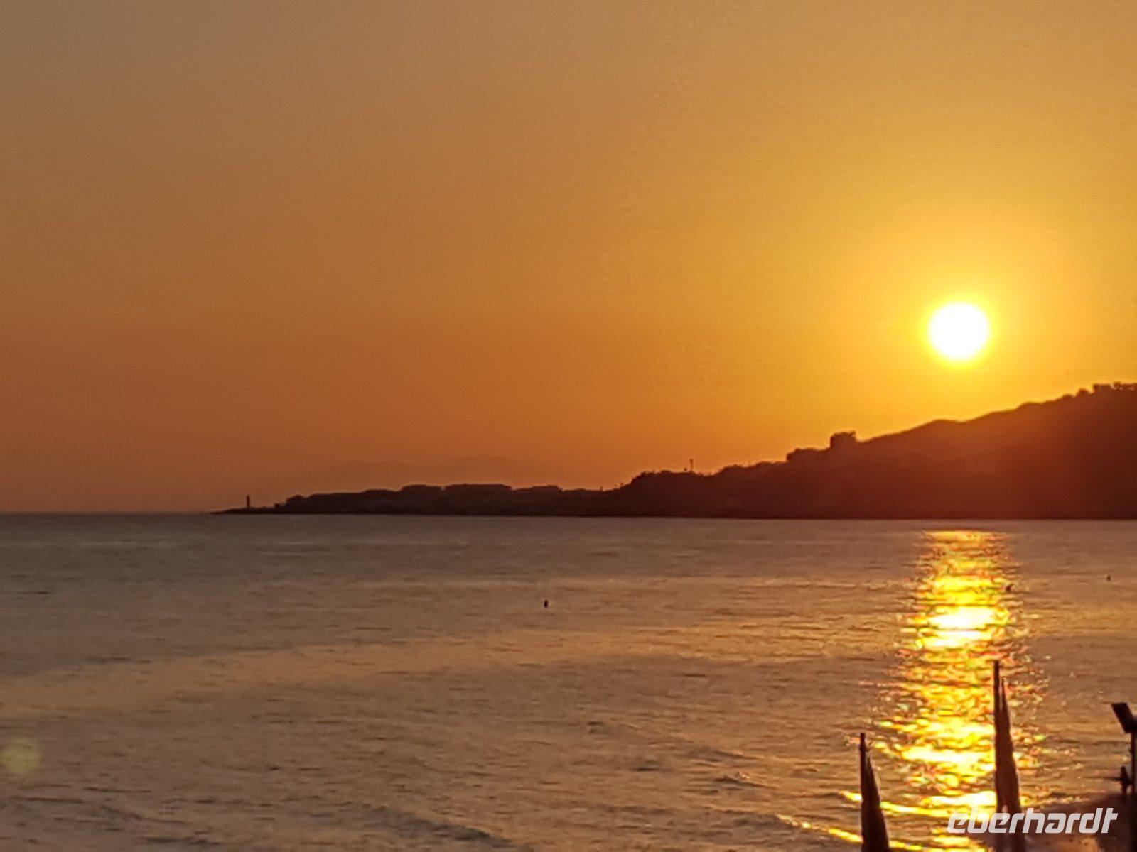 Nachdem wir in Nerja den Check-in im 4 Sterne Hotel Perla Marina machten, ging Benjamin mit den Gästen ins Zentrum, um Nerja zu Fuß zu erkunden und seine berühmte „Balcon de Europa", mit einem herrlichen Blick auf die zerklüftete Küste. Hier genossen viele von uns ein Eis. Wir hatten so viel Zeit, dass wir an den Strand gingen, um im Meer zu baden, bevor wir uns wieder zum Abendessen trafen. Benjamin brachte Sidra (Apfel Cider) mit und wir bestaunen die Sterne. Später auf der Terrasse vom Hotel setzen wir uns, um uns mit Bier zu erfrischen und darauf anzustoßen, was wir die Tage beim Wandern geschafft haben. Zum richtig Feiern stoßen wir wieder auf diesen wunderschönen Tag mit unseren Lieblingsspruch: „Arriba, abajo, al centro y para dentro" an. Es war ein schöner Abschiedsabend für uns alle!
