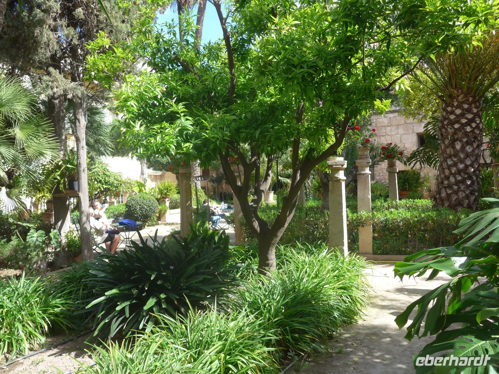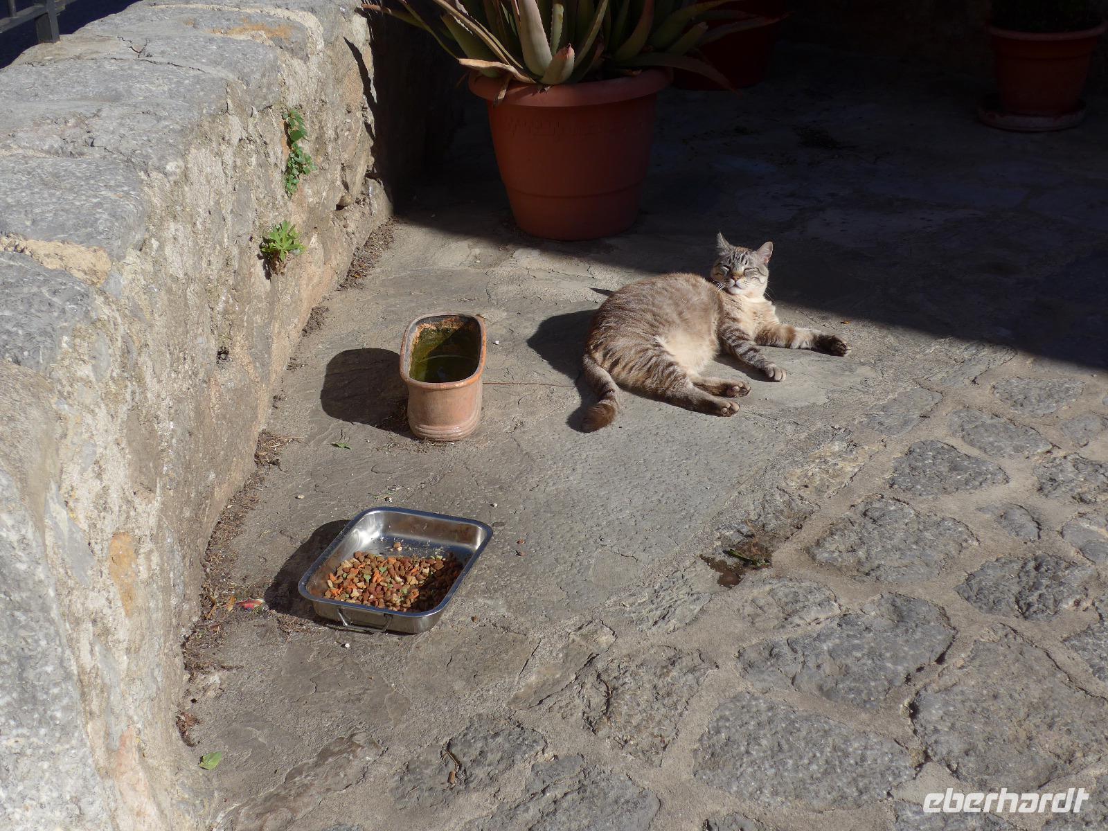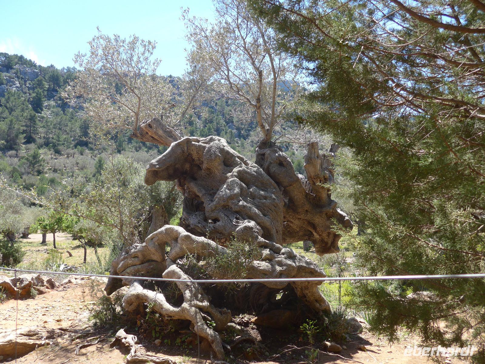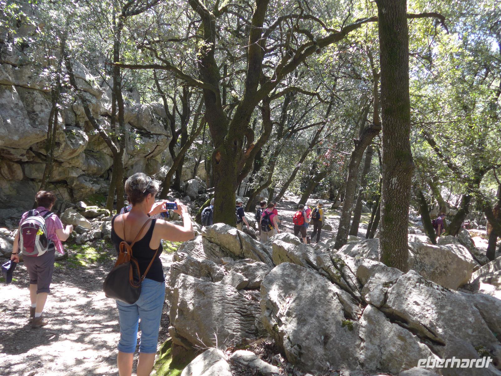 8 Uhr gab es jeden morgen Frühstück und gegen 9 Uhr trafen wir unseren Wanderführer Dieter. Er verteilte die Lunchpakete und Wasser und mit einem Kleinbus fuhren wir nach Esporles. Wir spazierten über die Plaza, an der Kirche vorbei zu unserem Wanderweg Cami des Correu. Es ging gleich mit vielen Stufen los und wir konnten die kunstvollen Trockenmauern bewundern. Auf diesem alten Weg wurde früher nicht nur die Post, sondern auch viele Waren transportiert. An einem alten Kalkofen mit guter Sicht ins Tal bis hin zum Meer machten wir eine kurze Rast und gingen dann weiter durch einen Steineichenwald mit immer wieder guten Aussichten. Zur Mittagsrast verzehrten wir unser Lunchpaket aus dem Rucksack. Der weitere Weg bot uns immer wieder eine gute Aussicht hinüber zum Anwesen des Erzherzog Ludwig Salvator.