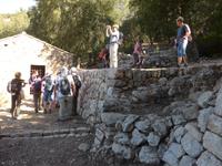 Nach dem Frühstück erwartete uns Dieter, unser Wanderführer wieder mit den Lunchpaketen und unsere Wasserflaschen vom Vortag wurden wieder aufgefüllt. Mit unserem Bus fuhren wir dann an Inca vorbei, durch Selva und Caimari hinauf zum Col de Batalla und dann hinunter zur Wanderherberge. Dort begann unsere Wanderung zum Kloster Lluc. Es war Samstag und so trafen wir unterwegs auch viele spanische Familien mit Kindern und Hunden. Es war ein herrlicher Weg immer auf und ab durch Steineichenwälder und zu schönen Aussichtspunkten. Unsere Mittagsrast machten wir bei einer Hütte, die auch zu mieten war. Dann folgte der Weg einer Strecke, die für Blinde hergerichtet wurde und wir ertasteten ebenfalls die auf den Tafeln dargestellten Landschaftsprofile und die Pflanzen.