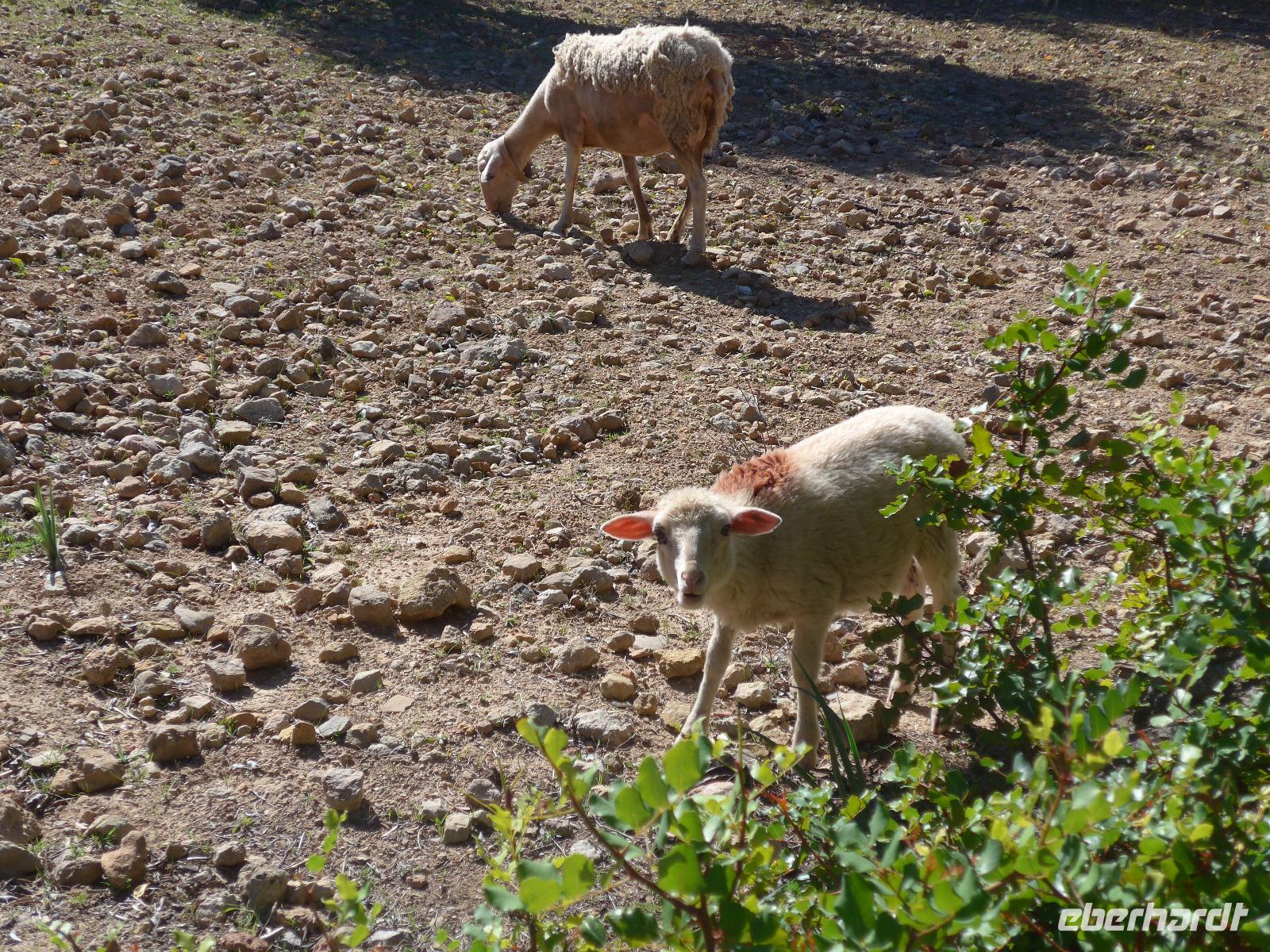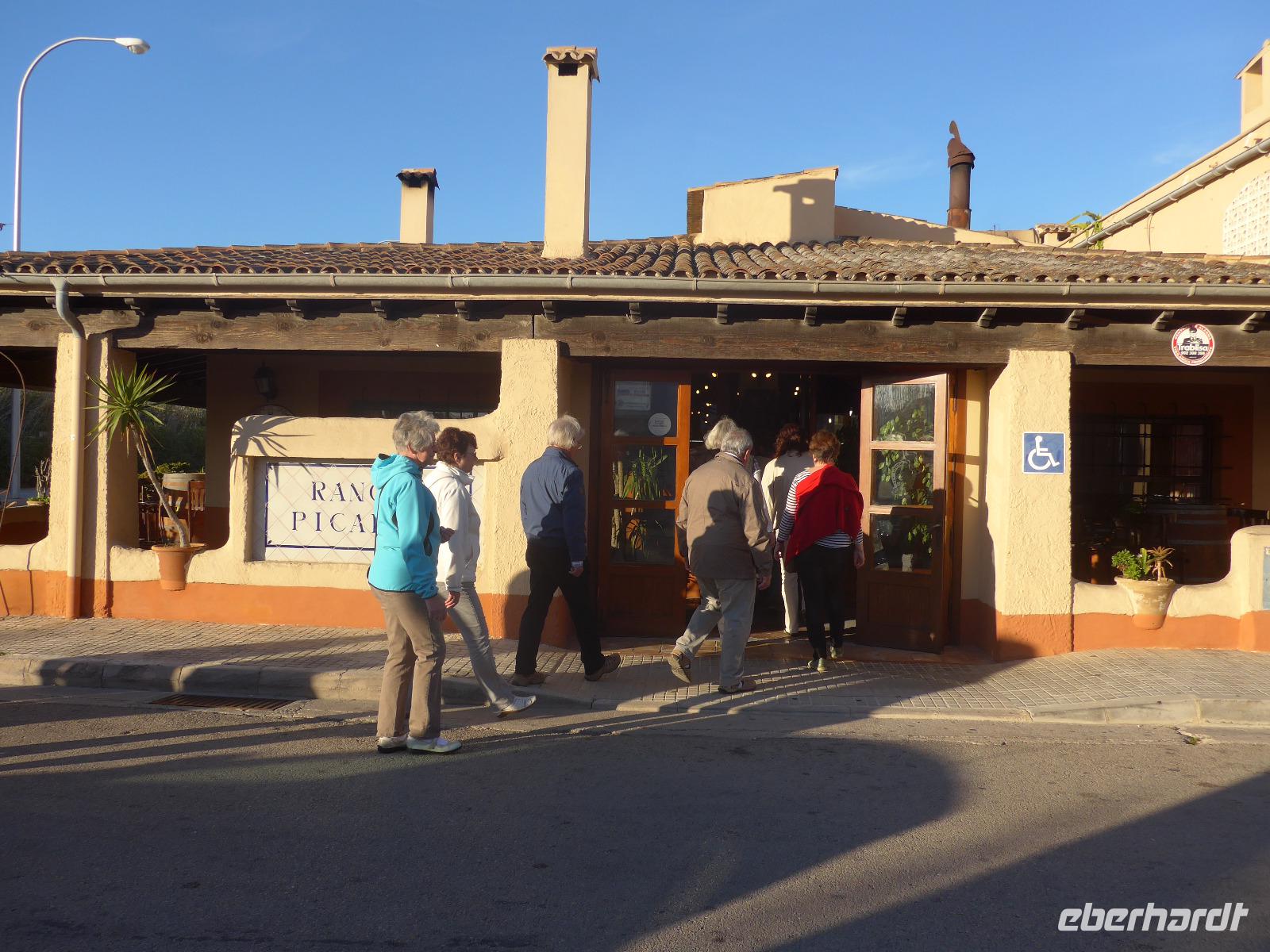 Der Abstieg verlief zunächst auf gleichem Weg und dann aber in vielen, vielen Serpentinen hinunter ins Tal zur Strasse. Zwischendurch nahmen wir Abkürzungen und erreichten schließlich das sehr rustikale Lokal "Es Verger". Die Besonderheit unter den Gerichten ist die Lammschulter und die probierten wir mit dem hauseigenen Rotwein. Es schmeckte vorzüglich und der Wein war sehr süffig. Leider war das Lokal sehr voll und wir saßen dicht gedrängt.