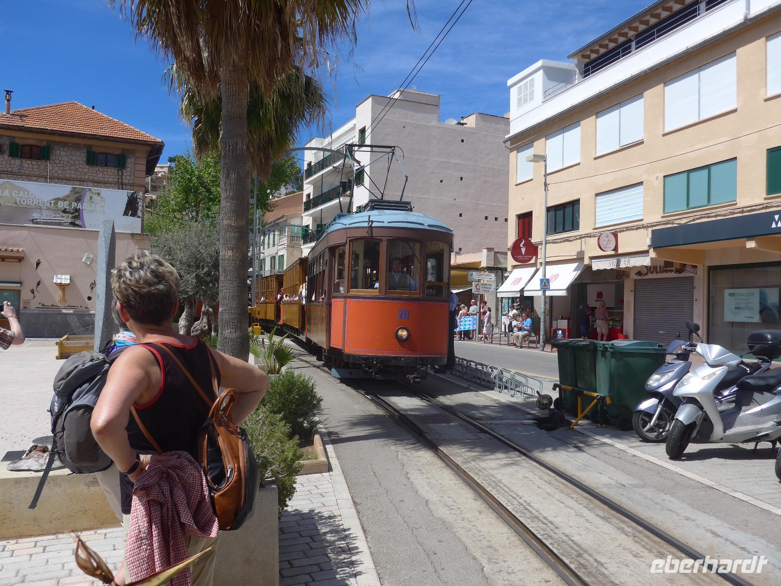 Wir spazierten auf der Uferpromenade bis zum Bahnhof der alten Straßenbahn und hatten noch Zeit für eine Kaffeepause am Strand bis zur Abfahrt. In der Sonne sitzend betrachteten wir das rege Treiben. Die zu Beginn des 20. Jahrhunderts errichtete Straßenbahn von Soller nach Port de Soller ist ein Touristenmagnet und wird auch von den Einheimischen gern genutzt. Eine halbe Stunde dauert die Fahrt und wir genossen es in einem Waggon ganz für unsere Gruppe allein. Die Fahrt ging durch die goldene Aue, gesäumt von vielen Orangenbäumen. In Soller am Bahnhof hätten wir auch in den „Roten Blitz“ umsteigen können und bis nach Palma de Mallorca mit dem Zug fahren können. Aber Daniela mit dem neuen Bus wartete auf uns und so fuhren wir durch den 1997 eröffneten Tunnel zurück zu unserem Hotel. Heute war Bergfest unserer Reise und das feierten wir in einem typischen Lokal bei einem Tapas-Essen. Isabel holte uns im Hotel ab und erläuterte uns im Lokal die vielen Speisen. Dazu gab es Rotwein, Weißwein und Wasser. Wir hatten viel Spaß bis 22.30 Uhr und gingen dann gut gelaunt ins Hotel zurück.