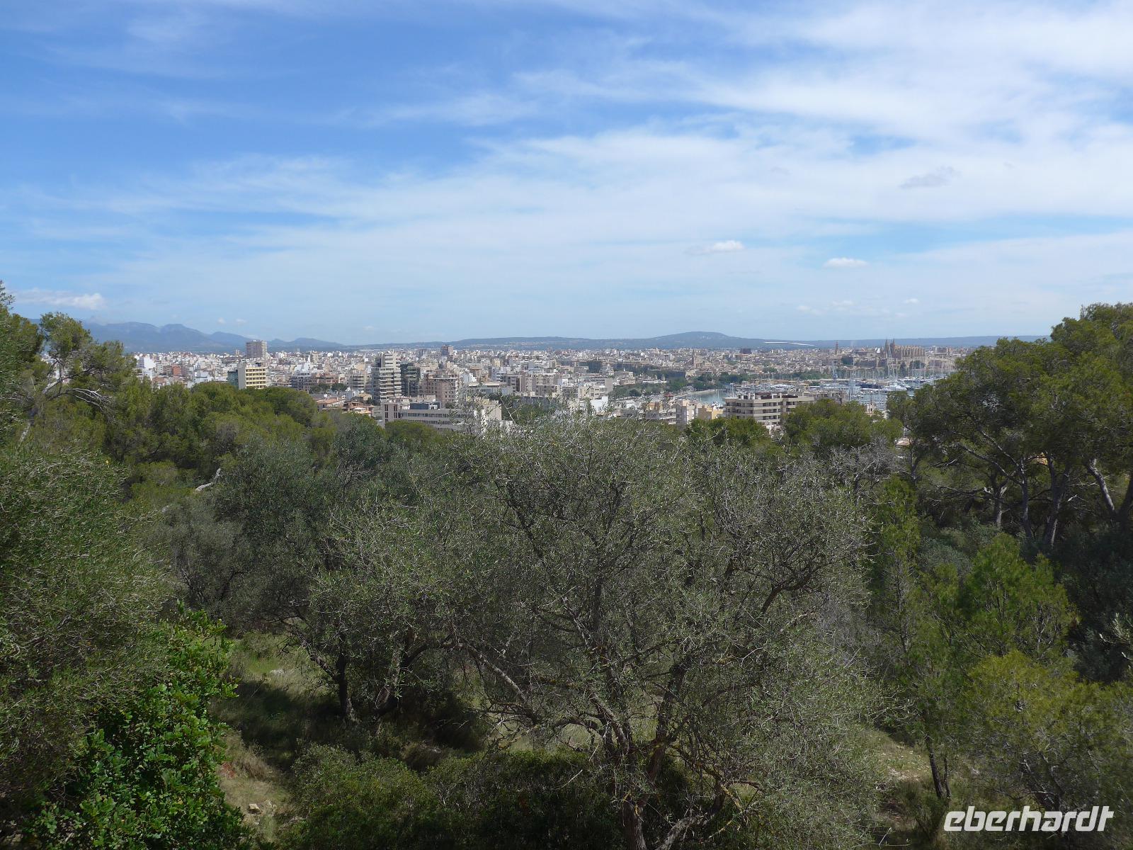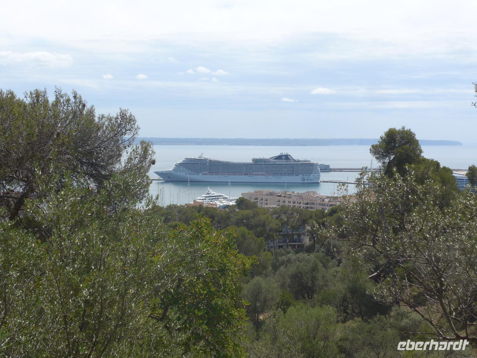 An unserem freien Tag fuhren wir gemeinsam mit dem Linienbus von unserem Hotel nach Palma de Mallorca und verließen den Bus an der Placa Espanya. Zu Fuß gingen wir durch die Stadt, besuchten die Markthalle, schauten uns die Kirche der Heiligen Maria und die Santa Eularia Kirche von innen an und besichtigten die arabischen Bäder - die einzigen noch original erhaltenen Bauten aus der Zeit der Mauren. Vom Parc de la Mar hatten wir einen herrlichen Blick auf die Kathedrale und dann ging es weiter an der Kathedrale und dem Bischofspalast vorbei bis zum Muselmanischen Bogen. Dort waren schon viele Menschen unterwegs, denn im Hafen lagen mehrere Kreuzfahrtschiffe. Wir trennten uns und ich ging mit einigen Gäste hinauf zum Castel de Bellver. Am Montag ist das Castell leider geschlossen und so konnten wir nur die herrliche Aussicht auf die Stadt, die umliegenden Berge und auf den Hafen genießen. Für den Rückweg vom Castell hinunter in die Stadt nahmen wir die Treppe und dann den Weg am Hafen entlang.