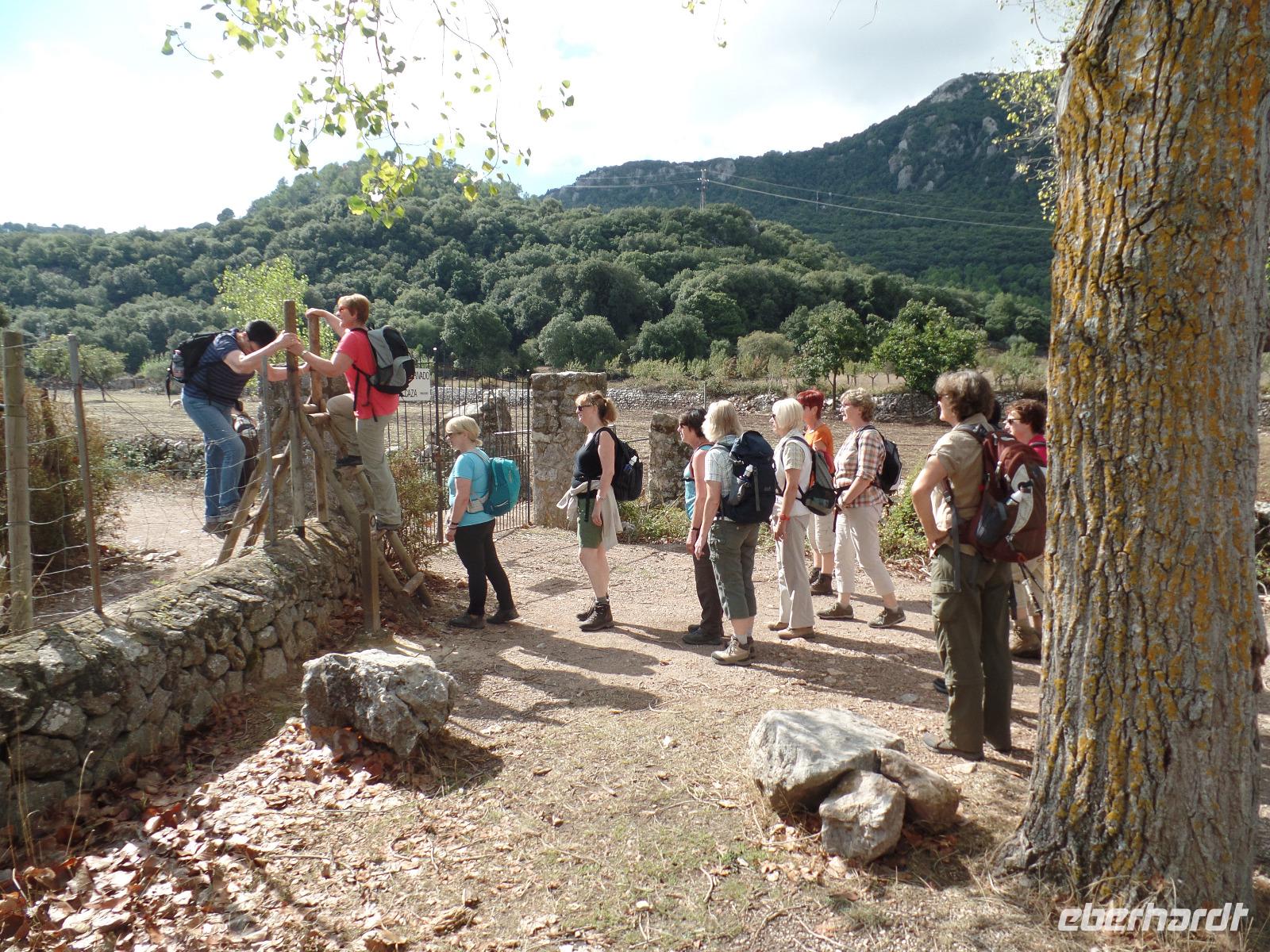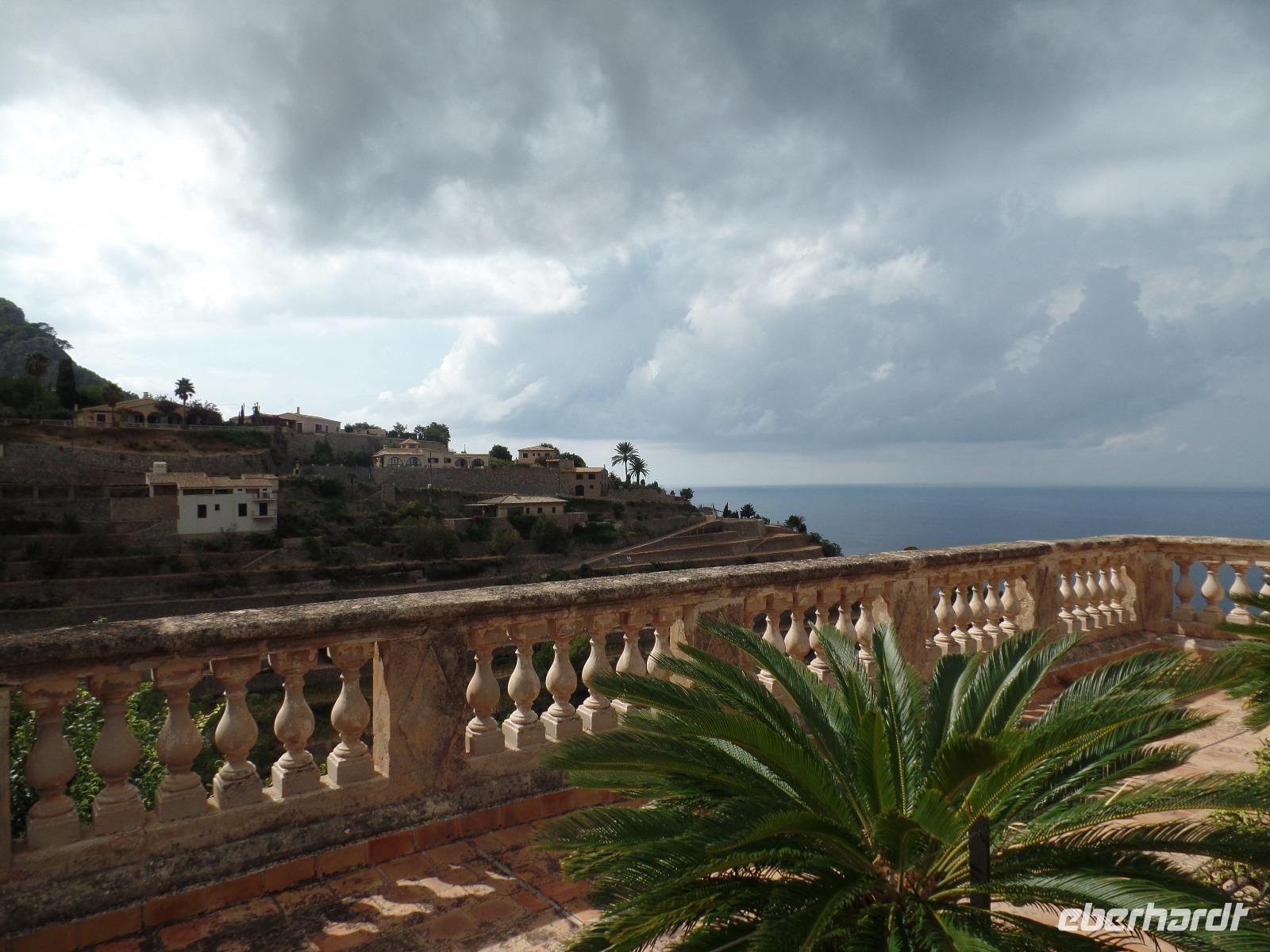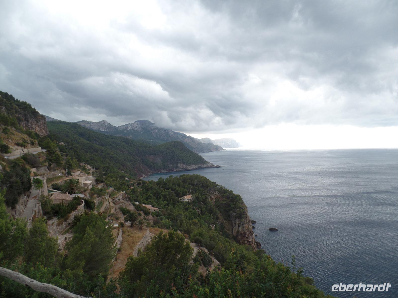 Nach einem ersten reichhaltigen Frühstück trafen wir unsere Wanderreiseliterin Isabel im Hotel, die uns erste wichtige Informationen gab. Fix noch Flaschen mit Wasser ausgeteilt, ging die Fahrt zu unserer ersten Wanderung los. Das Wetter schien uns einen sonnigen Tag bereiten zu wollen. In Esporles angekommen schlenderten wir auf einem mit Platanen gesäumten Weg zum Startpunkt des "Cami des Correu". Gleich zu Anfang ging es doch recht steil bergauf aber die Anstrengungen lohnten sich bald. Traumhafte Ausblicke auf das umliegende Tramuntana Gebirge warteten hinter jeder Kurve. Wir hielten ab und zu an um durchzuschnaufen oder uralte Trockenmauern zu bewundern. Isabel erklärte uns viel Interessantes zu dieser Gegend, wie die Trockenmauern erbaut wurden oder welch großartigen Schutz Sie den Bauern bot. Zwischendurch passierten wir alte Holzgatter, die der letzte der Wandergruppe nicht vergessen dufte zu schliessen. Man sah der alten Poststraße an, dass sie schon einiges erlebt hat. Bei einer Pause auf einem kleinen Plateau verzehrten wir unsere von Isabel selbstgemachten Baguettes und wanderten anschließend vorbei an terrassenartig angebauten Weinhängen weiter, bis wir das hübsche Banyalbufar erreichten. Affenbrot-, Feigen- sowie Erdbeerbäume säumten unseren Weg, deren Früchte natürlich auch von uns getestet wurden. Auf einer Terrasse eines alten Hotels genossen wir die fantastische Aussicht auf das Meer aber bemerkten auch die herannahenden dunklen Wolken eines Unwetters. Isabel erzählte uns, dass es schon den ganzen Tag auf der Insel geregnet hat, nur wir hatten den ganzen Tag Glück. Während unserer verregneten Rückfahrt entlang der Westküste und durch Palma de Mallorca konnten wir dennoch die Umgebung bewundern.