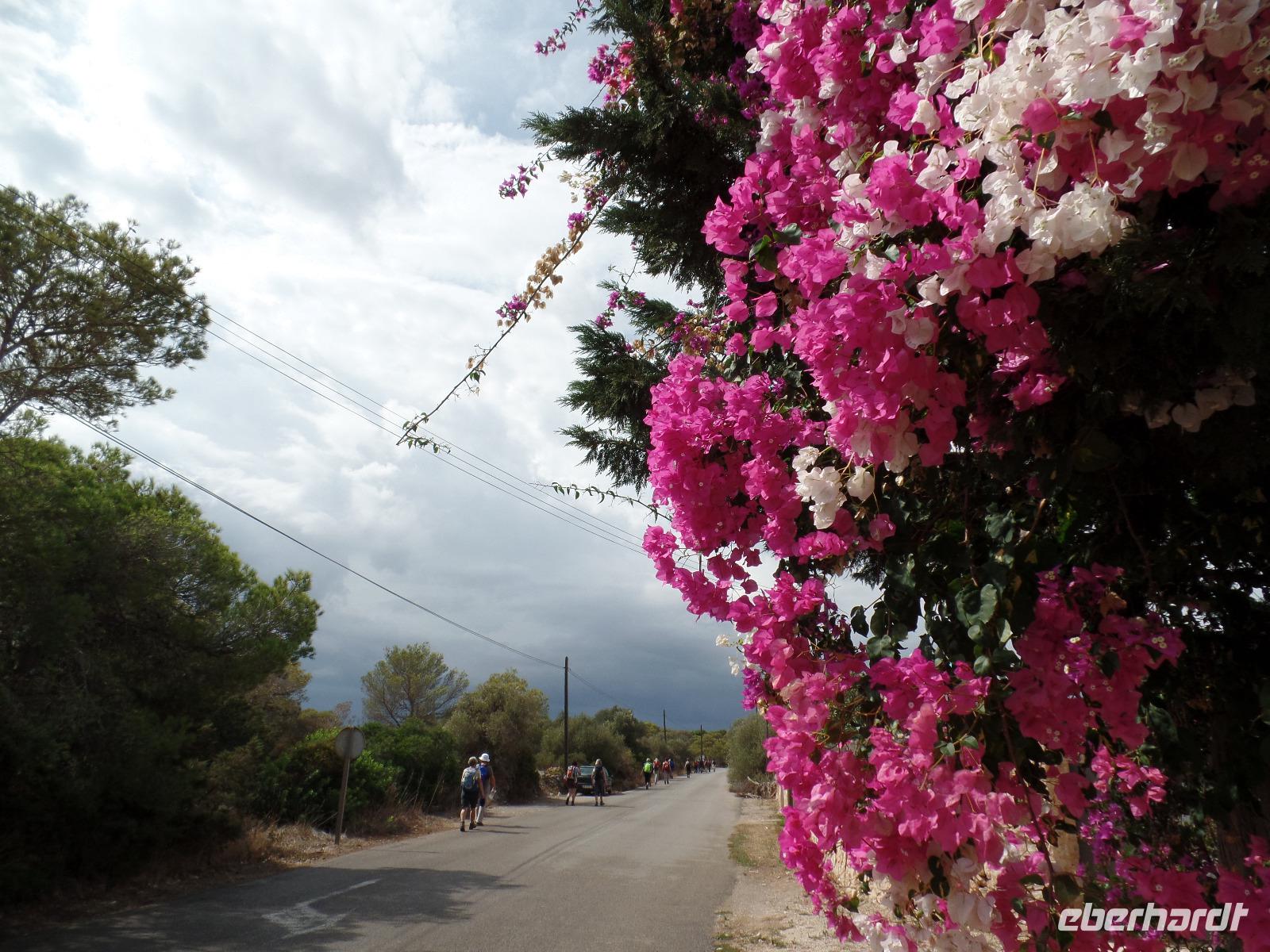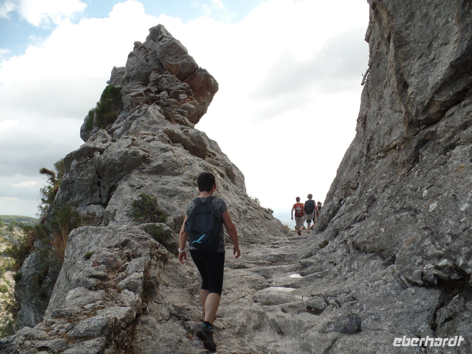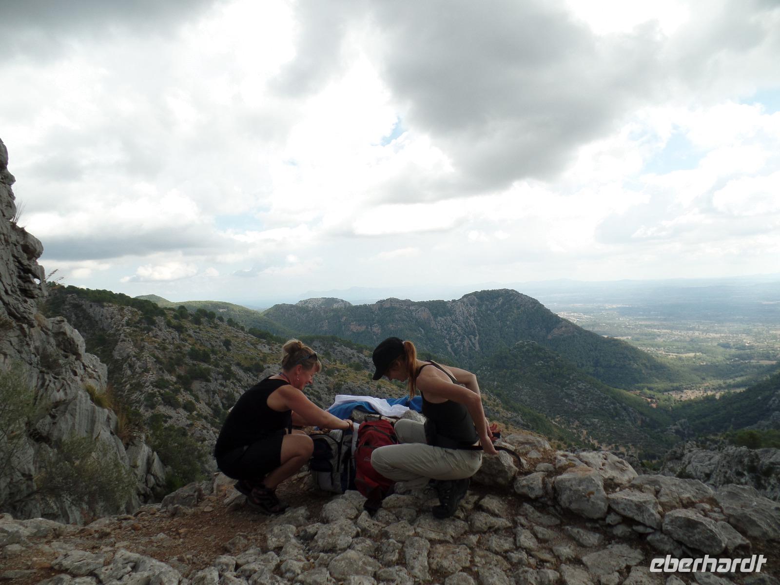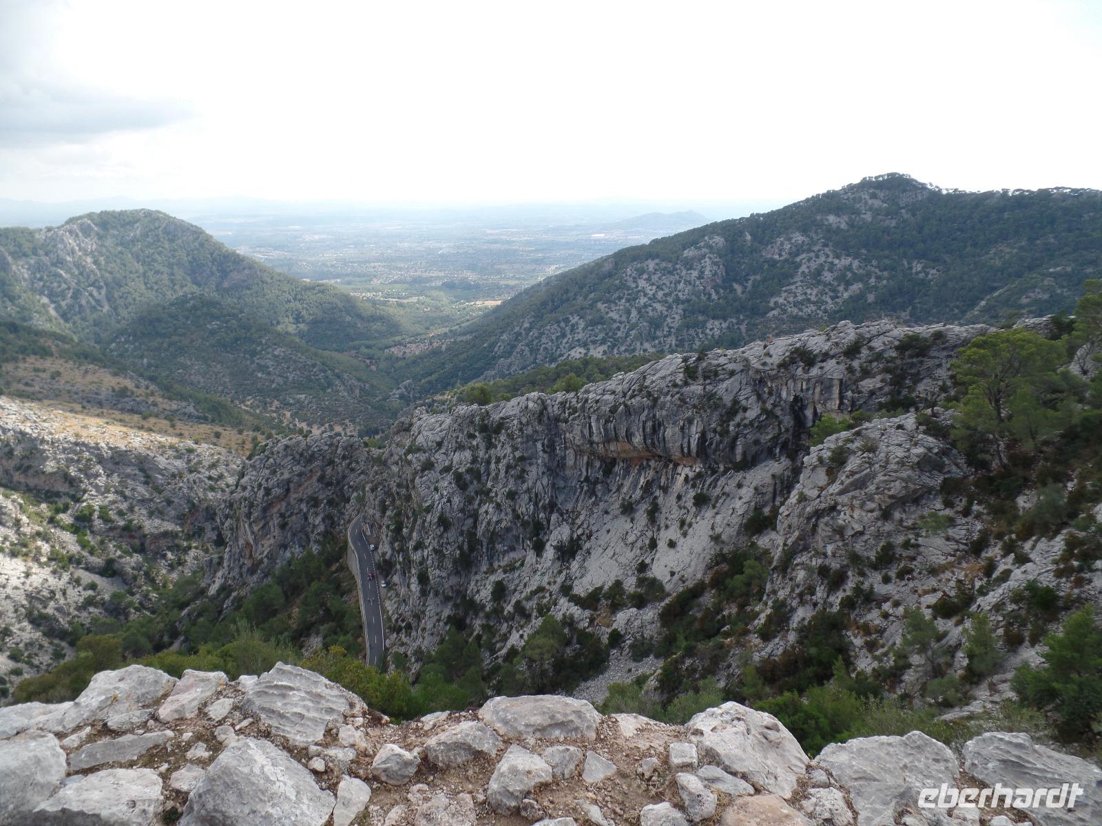 Nach einem ersten reichhaltigen Frühstück trafen wir unsere Wanderreiseliterin Isabel im Hotel, die uns erste wichtige Informationen gab. Fix noch Flaschen mit Wasser ausgeteilt, ging die Fahrt zu unserer ersten Wanderung los. Das Wetter schien uns einen sonnigen Tag bereiten zu wollen. In Esporles angekommen schlenderten wir auf einem mit Platanen gesäumten Weg zum Startpunkt des "Cami des Correu". Gleich zu Anfang ging es doch recht steil bergauf aber die Anstrengungen lohnten sich bald. Traumhafte Ausblicke auf das umliegende Tramuntana Gebirge warteten hinter jeder Kurve. Wir hielten ab und zu an um durchzuschnaufen oder uralte Trockenmauern zu bewundern. Isabel erklärte uns viel Interessantes zu dieser Gegend, wie die Trockenmauern erbaut wurden oder welch großartigen Schutz Sie den Bauern bot. Zwischendurch passierten wir alte Holzgatter, die der letzte der Wandergruppe nicht vergessen dufte zu schliessen. Man sah der alten Poststraße an, dass sie schon einiges erlebt hat. Bei einer Pause auf einem kleinen Plateau verzehrten wir unsere von Isabel selbstgemachten Baguettes und wanderten anschließend vorbei an terrassenartig angebauten Weinhängen weiter, bis wir das hübsche Banyalbufar erreichten. Affenbrot-, Feigen- sowie Erdbeerbäume säumten unseren Weg, deren Früchte natürlich auch von uns getestet wurden. Auf einer Terrasse eines alten Hotels genossen wir die fantastische Aussicht auf das Meer aber bemerkten auch die herannahenden dunklen Wolken eines Unwetters. Isabel erzählte uns, dass es schon den ganzen Tag auf der Insel geregnet hat, nur wir hatten den ganzen Tag Glück. Während unserer verregneten Rückfahrt entlang der Westküste und durch Palma de Mallorca konnten wir dennoch die Umgebung bewundern.