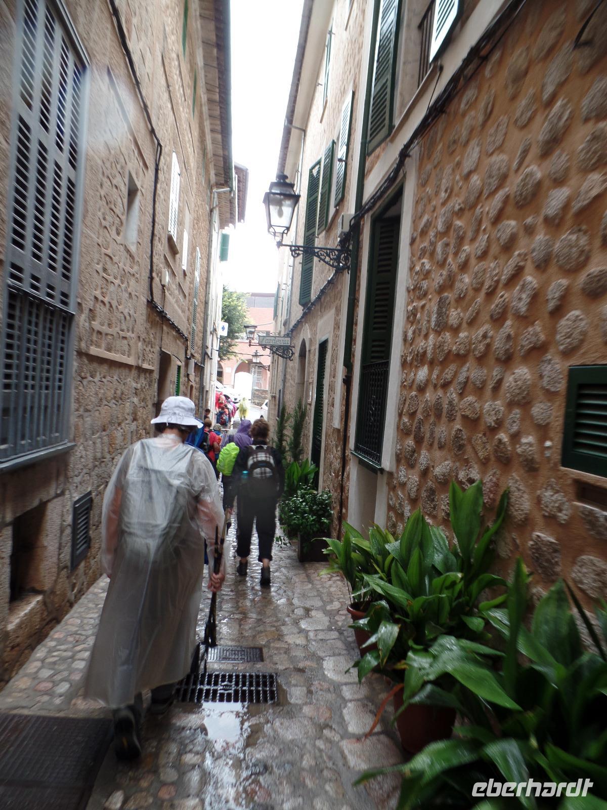 Isabell holte uns wieder gut gelaunt in der Hotellobby ab und die Fahrt ging los in Richtung Nordwestküste Mallorcas. Unser Startpunkt der heutigen Wanderung war das Künstlerdorf Deia, welches durch viele namenhafte Einwohner, wie Sir Peter Ustinov, Ava Gardner oder Pablo Picasso bekannt wurde. Das Wetter war uns mit einem Sonne-Wolken-Mix und angenehmen Temepraturen gut gesonnen. Wir wanderten durch durch uraltes Kulturland vorbei an alten Olivenbäumen bis zu einem kleinen Plateau, an dem wir unsere Mittagspause einlegten. Dieser Platz bot uns eine raumhafte Aussicht auf die höchsten Berge der Tramuntana mit dem Puig Major und ein etwas abseits stehender Esel schaute uns neidisch beim vernaschen der Baguettes zu. Anschließend kamen wir an der Finca Son Mico vorbei, bei der wir leckeren frisch gepressten Orangensaft und selbst gebackenen Kuchen zum Nachtisch genießen konnten. Gut gestärkt ging unsere Wanderung weiter. Über einige kurvenreiche Wege erreichten wir das Minidorf Llucalcari, wanderten entlang schmaler Pfade und steiniger Waldhänge bis wir die Bucht von Port de Soller erblickten. Unterwegs erblickten wir immer wieder einige Ziegen mit ihren Lämmern. In Port de Soller angekommen bemerkten wir, dass uns eine große dunkle Wolkenfront zu verfolgen schien. Wir hatten Glück, denn gerade als wir in die historische Straßenbahn stiegen fing es an, wie aus Kannen zu schütten. Leider hörte es auch nicht auf, als wir nach einer gemütlichen Fahrt durch Orangenhaine in Soller angekommen waren. Mit einer kleinen Kaffeepause verkürzten wir uns die Wartezeit, schließlich konnten wir doch durch die kleinen, eigentlich gemütlichen Gassen laufen und einige Souvenirs erstehen. Geschafft von dem langen Tag kamen wir am späten Nachmittag im Hotel an und verbrachten den Abend in geselliger Runde.