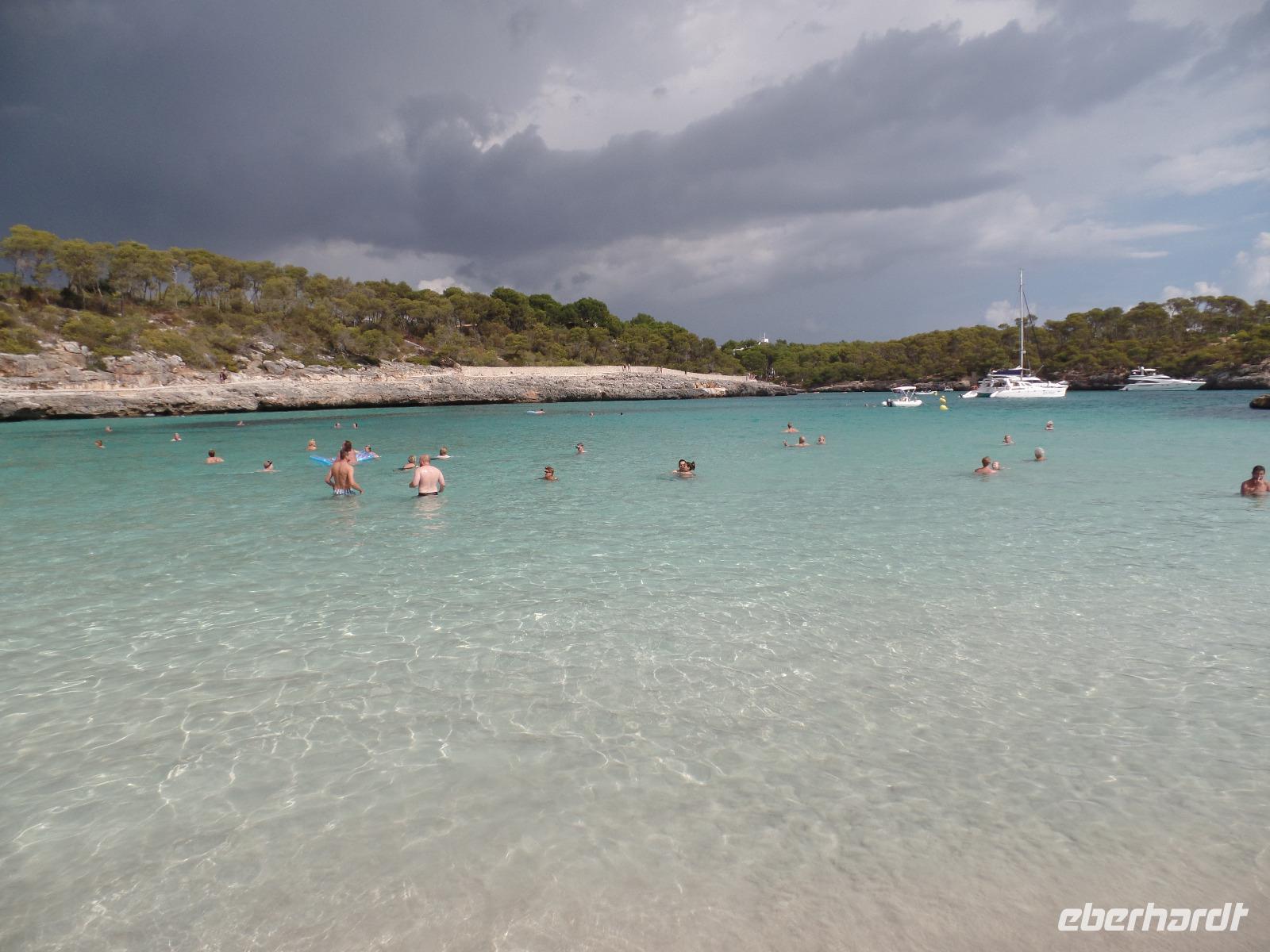 Strahlender Sonnenschein empfing uns am Morgen und eine ebenso strahlende Isabell, die voll gepackt war mit vielen kleinen Leckereien. Die Sachen wurden auf die Rücksäcke verteilt und so trug ein Jeder zum Gelingen des Picknicks bei. Bei Porto Pedro begann unsere Küstenwanderung, vorbei an steilen Abbrüchen entlang des türkis bis dunkelblau gefärbten Meeres. Zahlreiche Segelschiffe und Yachten fuhren an der Küste entlang und die Aussicht auf das Mittelmeer war einfach traumhaft. Nicht umsonst gehörte diese Wanderung zu den optisch schönsten Touren der Insel. Wir umliefen jede Bucht und hätten gern auch gebadet, so verlockend sahen die kleinen Strände aus. Das Wetter war zuerst traumhaft, Sonne, Wind und milde Temperaturen begleiteten unsere Wanderung. Als wir unseren Picknickplatz erreichten, wurden wir aber von einer großen Regenwolke überrascht, bei der wir alle glaubten, dass unser tolles Picknick buchstäblich ins Wasser fallen würde. Wie die begossenen Pudel saßen wir da und warteten ab, dass der Schauer endlich vorbei ziehen würde. Petrus meinte es gut mit uns. Nach zehn Minuten war der ganze Spuk vorbei und die Sonne kam wieder zum Vorschein. Jetzt konnten wir frisches Brot, Käse, Wurst, Salami, Oliven, Knobibrot, Antipasti und Olivenöl endlich auspacken und in vollen Zügen genießen. Dazu wieder einen typischen Rotwein und zum Abschluss einen Herbas, den typischen mallorquinischen Kräuterschnaps. Nachdem wir uns gestärkt hatten und unsere Regenjacken wieder trocken waren, konnten wir die Wanderung bis nach Cala Figuera fortsetzen. Der kleine Hafenort in der Feigenbucht war voll mit kleinen Fischerei- und Ausflugsbooten. Wir genossen die Ruhe und beschaulichkeit des kleinen Ortes in einem Café und schlenderten anschließend zum Bus, der uns wieder wohlbehalten ins Hotel zurück brachte. Dort verabschiedeten wir uns von unserer Reiseleiterin Isabell, die uns während der Tage sehr ans Herz gewachsen ist, denn den nächsten Tag konnten wir für uns individuell gestalten.