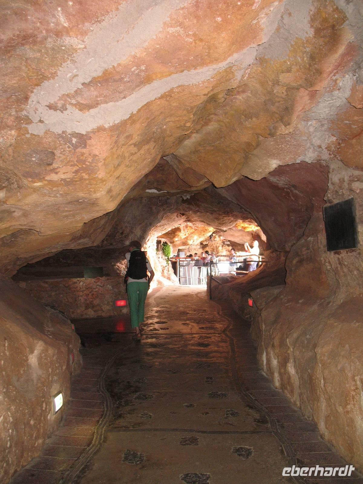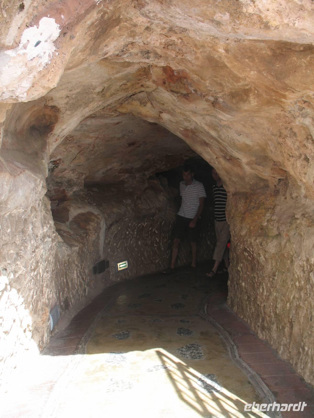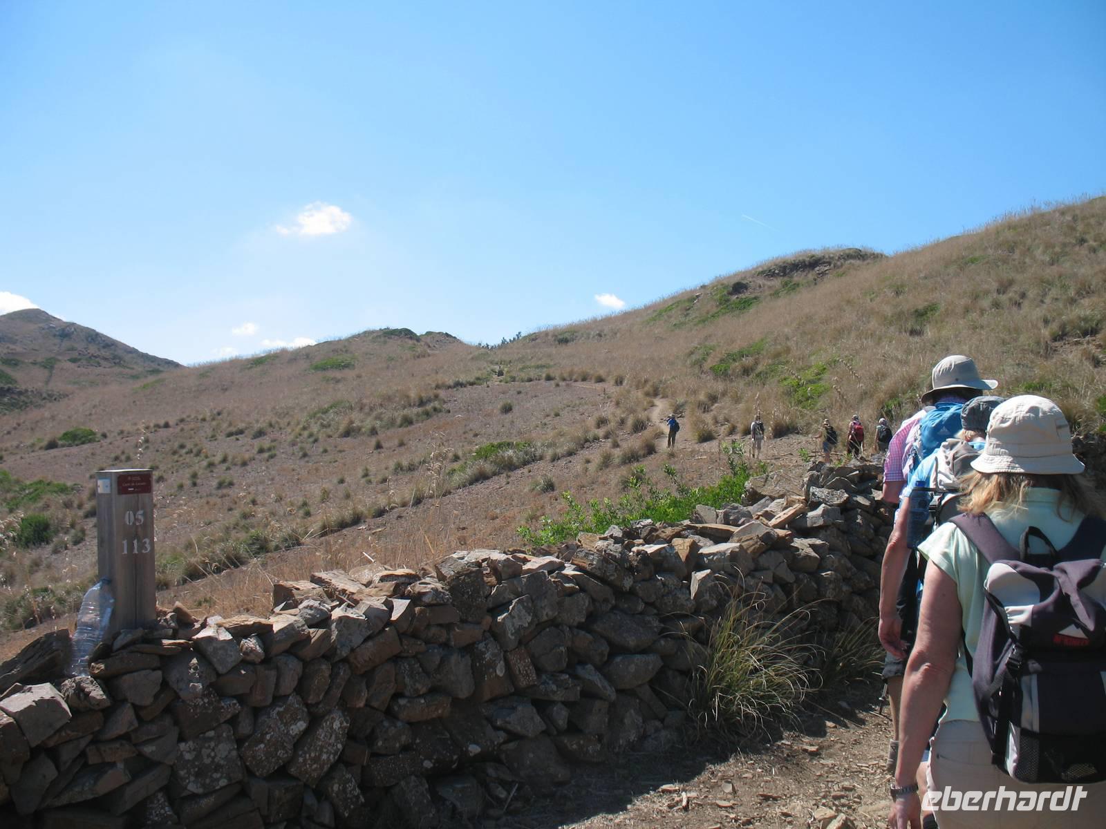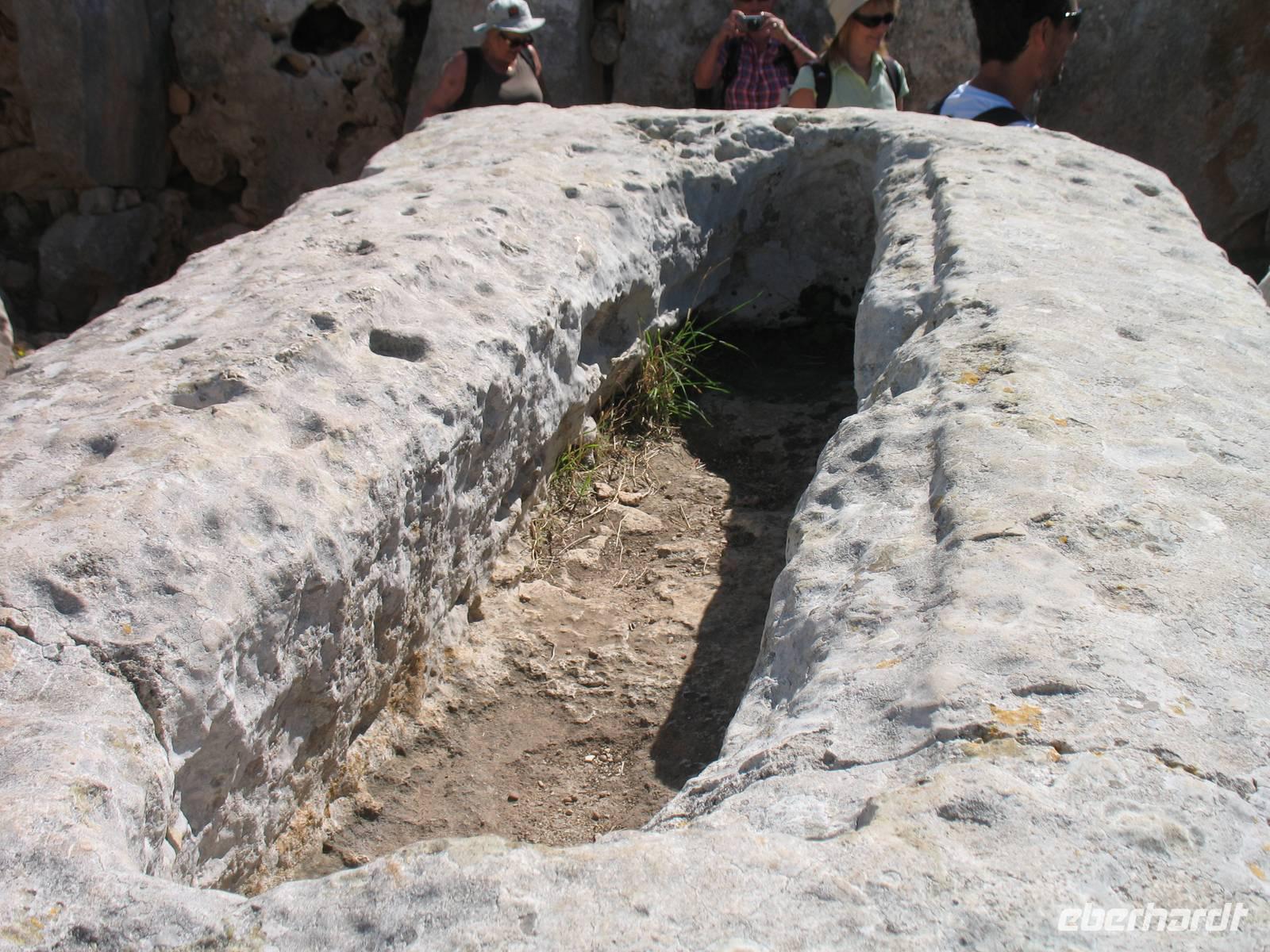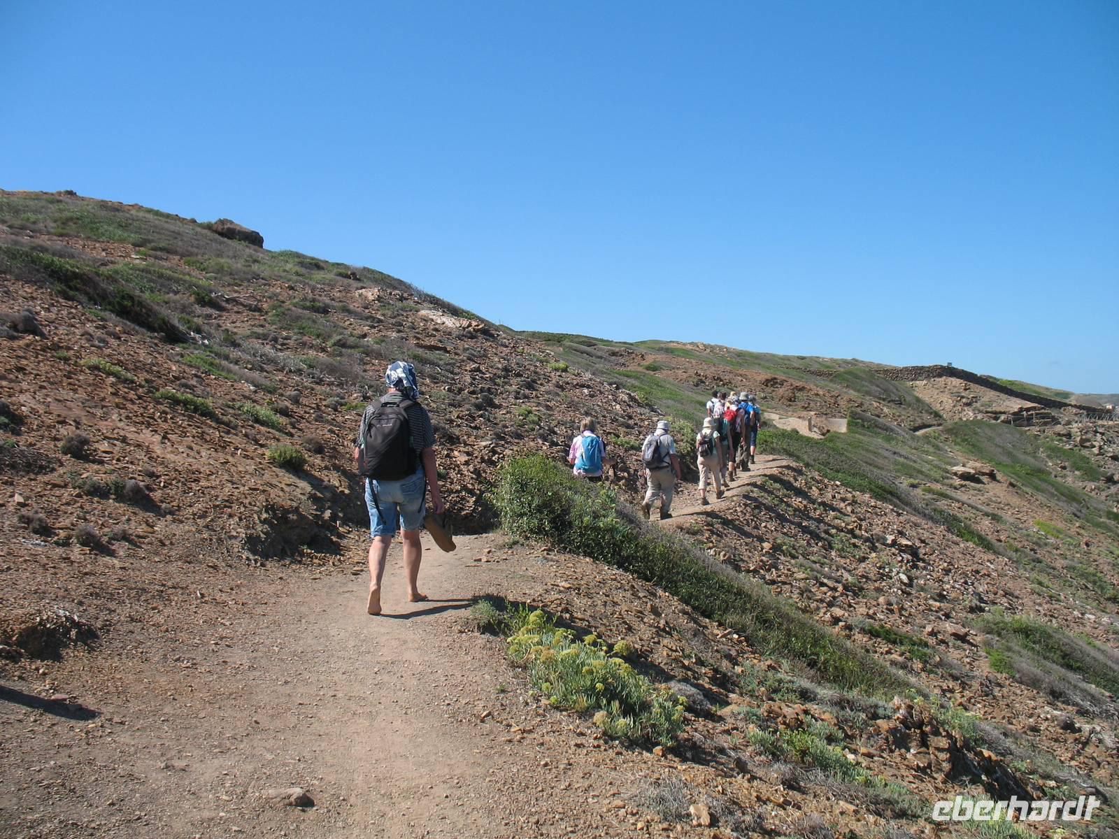 Bei strahlendem Sonnenschein starten wir in einen spannenden Tag :-) Das Frühstück ist sehr lecker und wir finden uns frisch gestärkt zu unserem heutigen Ausflug oder Wanderung in der Hotellobby ein. Während sich die Wanderer noch ihr Lunchpaket abholen, starten unsere Gäste mit kulturellem Programm mit ihrem Reiseführer Otto zum Naveta des Tudons, welche die berühmteste prähistorische Grabanlage Menorcas ist. Das Bauwerk in Form eines umgedrehten Schiffes wurde aus Trockenmauerwerk in der Bauweise der Megalithkultur in der Bronzezeit vor über 3.000 Jahren errichtet. Nächste Etappe ist ein nicht geplanter, aber überraschend schöner Besuch im Steinbruchmuseum - Pedreres de S'Hostal. Die Stiftung für die Steinbrüche des Marés aus Menorca, die Líthica - Pedreres De S'Hostal, ist für die Wahrung, Sanierung und Wiederherstellung der Steinbrüche seit 1994 verantwortlich. Im Gartenlabyrinth, dem "Jardins De S'Hostal - El Laberint Dels Vergers", können die verschiedenen Steinbrüche zum Beispiel der Orangenbäume, der Ölbäume, der Mandelbäume, der Olivenbäume, der Hartlaubgewächse, des Wäldchen, der Dornen, der Zitronenbäume oder der Granatäpfel bestaunt werden. Zudem gibt es noch einen mittelalterlichen Garten mit von Essig-Rose (Rosa gallica), Bauernrose (Alba maxima) oder Heckenrose (Rosa canina) eingebetteten Brunnen oder auch den medizinischen Kräutergarten. Den Vormittag verbringen unsere Gäste dann in Ciutadella. Am westlichsten Punkt der Insel gelegen, wurde die zweitgrößte Stadt Menorcas einst von Karthagern gegründet und war lange Zeit die Insel-Hauptstadt. Mehr als die Hälfte der rund 70.000 Einwohner der Inseln leben in der Hauptstadt Maó - Mahón und auch Ciutadella. Bei einem Stadtrundgang lernen sie die malerischen Altstadtgassen kennen und haben auch Zeit für eine individuelle Erkundung. Gegen späten Nachmittag sind unsere Rundreise-Gäste wieder im Hotel zurück. Während das kulturelle Programm sehr entspannt ist, haben die Wanderer heute eine zwar abwechslungsreiche geführte Wanderung im Süden Menorcas, welche aber auch sehr anstrengend werden wird. Wilde und liebliche Schluchten, mauergesäumtes Bauernland, weiße Sandbuchten und prähistorische Grabhöhlen in der Felsküste zeichnen diese Wanderung auf dem Camí de Cavalls, dem Pferdeweg, aus. Dieser Pferdeweg diente früher militärischen Zwecken und er folgt der Küstenlinie einmal rund um die gesamte Insel Menorcas, circa 220 Kilometer. Von Son Bou aus, dem längsten Strand Menorcas, passieren wir die abrupte wilde Schlucht von Llucalari, queren das Hochplateau mit seinem endlos scheinenden Netz von Steinmauern und den im Frühling bunt blühenden Feldern, folgen dem Verlauf des Barranc des Rellotge, wo heute noch windgeschützt die größten Obstbaumplantagen der Insel zu finden sind. Diese Schlucht stößt am Strand von Cala en Porter wieder aufs Meer. Die Wanderung ist eigentlich ganz angenehm, nur bei 27 Grad Hitze wirklich anstrengend. Aber zum Glück haben wir alle unsere zwei Liter Wasser dabei :-) Unterwegs sehen wir immer wieder die Trockensteinmauern und auch Durchgänge, welche die Tanques, also die Koppeln, mit dem Vieh vieler Landstücke miteinander verbindet. Auf unserem Weg begegnen wir auch ein paar ganz niedlichen Eseln :-) Die Durchgänge, auch Portells genannt, sind meist mit einem Gattertor aus Holz verschlossen. Wir legen unter anderem einen Stopp beim Torre d'en Galmés ein, wo wir auch unsere Mittagspause verbringen. Nach Durchqueren der Feriensiedlung von Cala en Porter geleitet uns der "Camí de Cavalls" direkt nach Cales Coves, eine Doppelbucht, in deren Felsabsätzen sich zahlreiche Grabhöhlen aus der talayotischen Epoche finden, die größte Nekropole dieser Art auf den Balearen. Noch einmal geht es das Plateau hinauf weiter nach Osten, bis wir mit der kleinen Cala Es Canutells unser heutiges Ziel erreichen. Dann werden wir wieder zum Hotel zurück gefahren. Um 19.30 Uhr treffen wir uns alle gemeinsam zum Abendessen. Wanderer und Rundreise-Gäste tauschen sich über ihren tollen Tag bei leckerem Essen und guten Drinks aus. Anschließend geht es weiter auf die Terrasse, wo um 21.30 Uhr abermals eine tolle Show mit musikalischem Gesang stattfindet. Wir sind ganz begeistert von den zwei Tenören. Wirklich ein gelungener Abschluss :-)