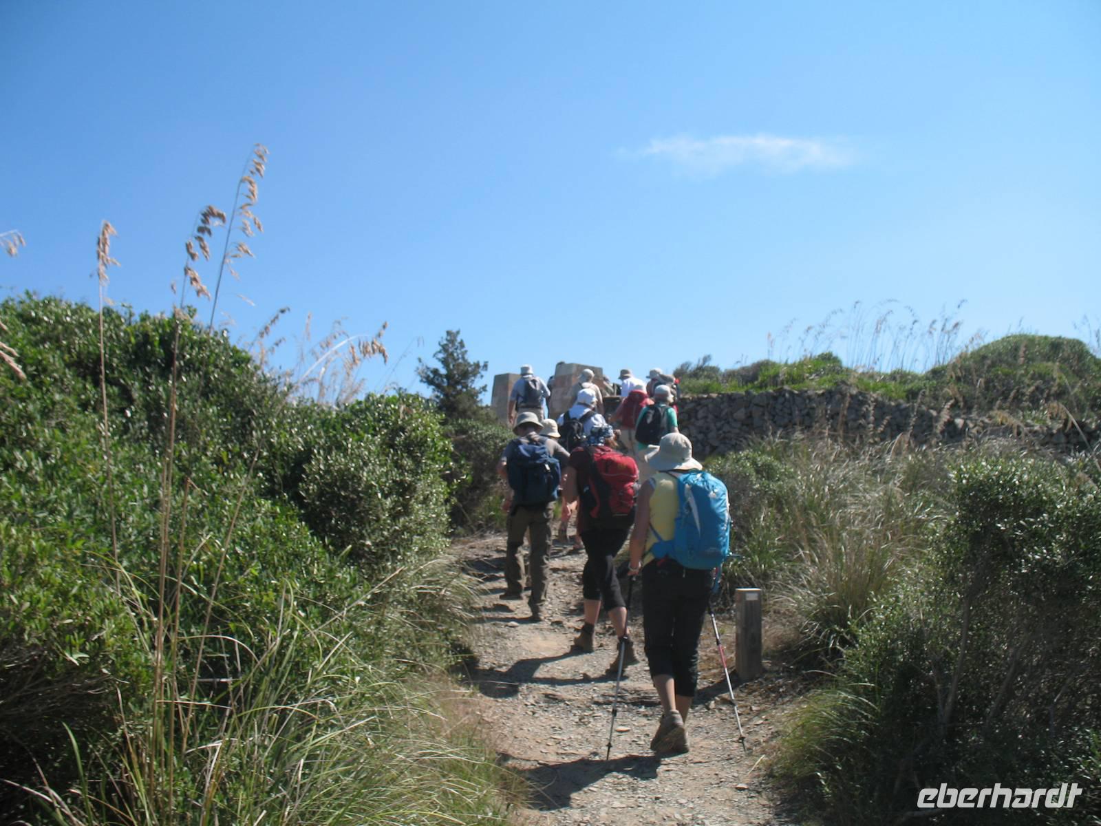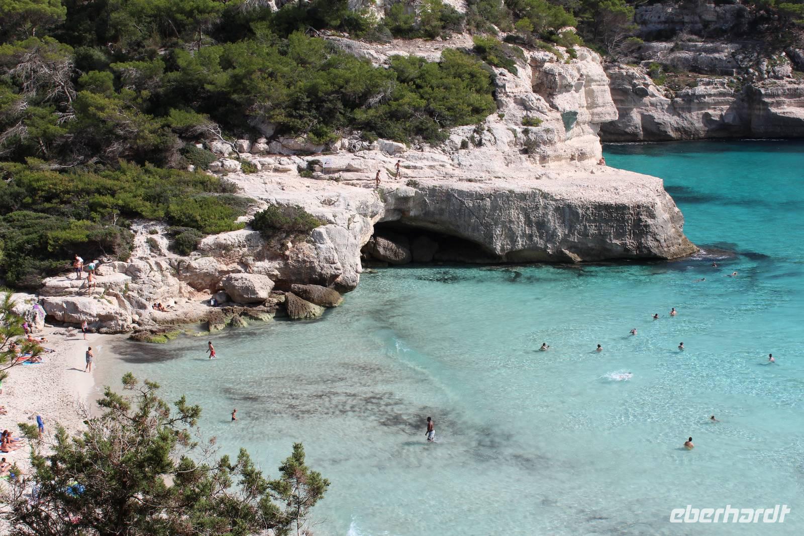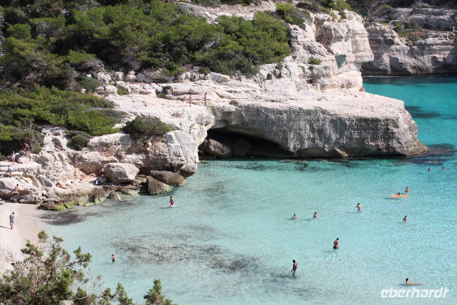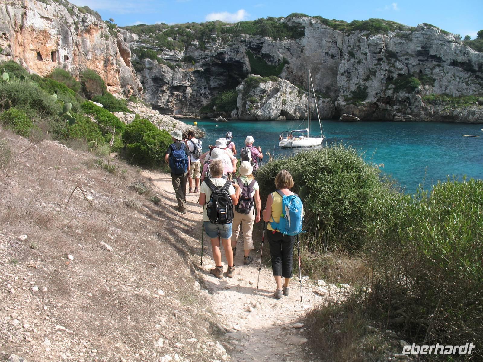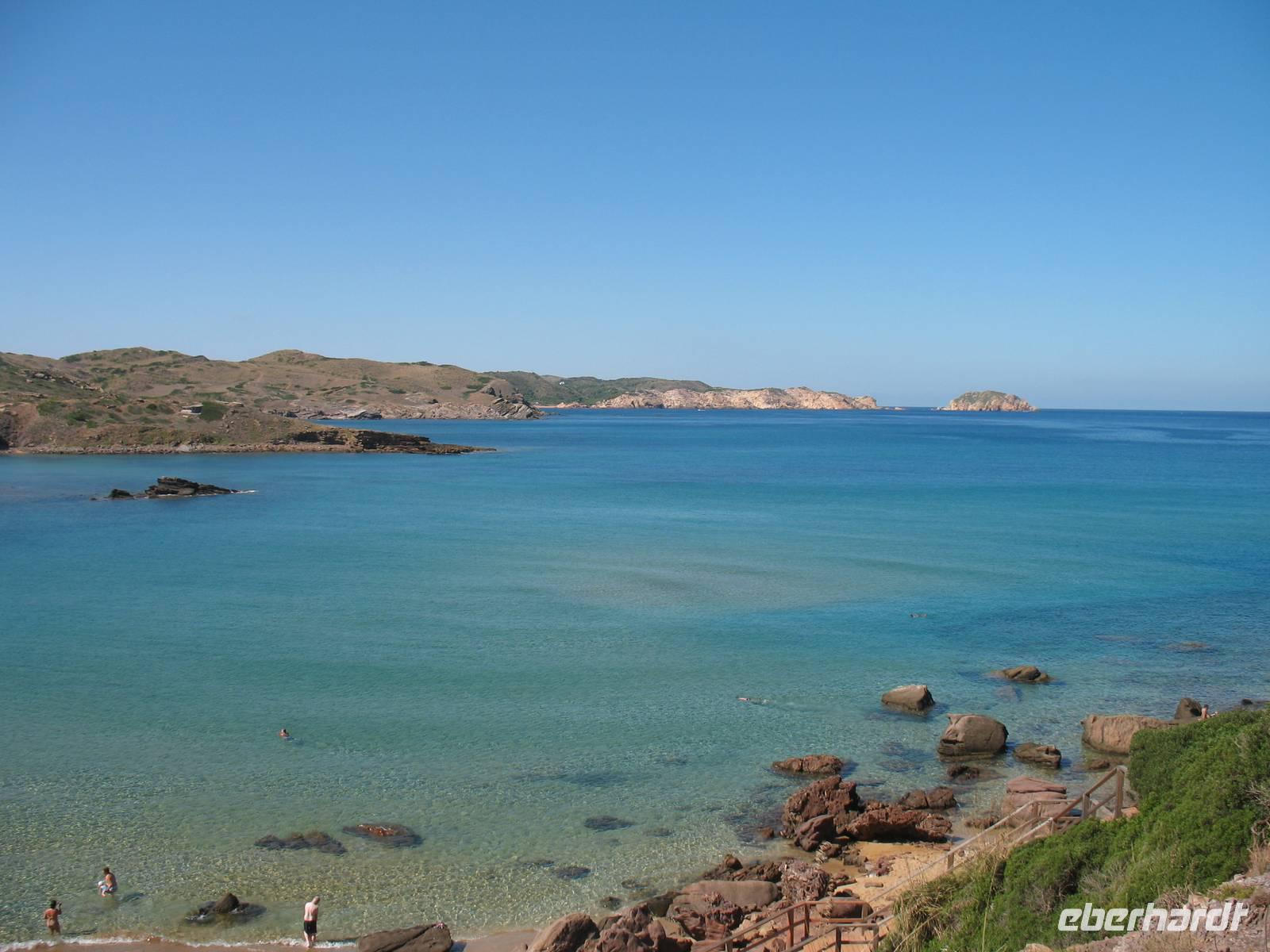 Unser dritter Reisetag beginnt wieder mit strahlendem Sonnenschein :-) Nach einem leckeren Frühstück teilt sich unsere Reisegruppe abermals. Die Gäste mit kulturellem Programm entdecken heute die schönsten Gegenden Menorcas. Erstes Ziel ist die prähistorische Dorfanlage Torralba d'en Salort, wo sie von Otto mehr über die Geschichte der Insel erfahren. Der Talayot ist ein runder, kegelstumpfförmiger Turm mit einem Durchmesser von bis zu 20 Metern. Hier, in der bekannten Ausgrabungsstätte der Talayot-Kultur, ist die besterhaltene, schönste und höchste Taula zu bestaunen. Diese Art von Großstein-Bauwerk ist nur auf der Baleareninsel Menorca anzutreffen: Ein T-förmiges Monument, welches aus mindestens zwei riesigen Steinen besteht. Danach führt ihre Fahrt sie weiter auf den höchsten Berg der Insel, den El Toro (357 Meter), wo die Wallfahrtskirche Mare de Déu bezaubert und von dem aus sie eine herrliche Aussicht über Menorca genießen können. Anschließend schauen sie sich noch das Fischerdorf Fornell an, bevor sie am Nachmittag wieder zum Hotel fahren. Für die Wanderer wird es heute viel entspannter als am vorherigen Tag. Besonders den Badeaufenthalt genießen wir in vollen Zügen. Diese Wanderung an der Nordküste Menorcas zeigt besonders anschaulich die farbenprächtige Vielgestalt seiner ständig wechselnden Landschaften und auch die interessante Flora und Fauna. Auf Menorca sind rund 280 verschiedene Vogelarten zu finden, Greifvögel wie der Fischadler (Pandion haliaetus) oder Wanderfalke (Falco peregrinus). Aber es gibt auch Kormorane, Möwen, Kiebitze und Rebhühner. Weitere Tiere der Insel sind Kaninchen, Fledermäuse, Igel oder die Balearen-Eidechse und die Mittelmeerschildkröte. Neben dichten Kiefern- und Steineichenwäldern gibt es auch den Oleaster (Olea europaea sylvestris), den für die Insel typischen Wilden Olivenbaum. Auf dem Pferdeweg wandern wir über einige Hügel von Cala Tirant an der traumhaften Küste entlang bis zur einsamen Bucht Cala Mica, wo wir im Schatten unser Lunchpaket verspeisen. Rund eine halbe Stunde später erreichen wir dann den Strand von Binimel•là, unseren heutigen Zielpunkt. Wir gönnen uns ein erfrischendes Bad im kühlen Meer und genießen das sonnige Wetter bei bis zu 27 Grad. Bevor wir zum Hotel zurückfahren, gibt es natürlich noch ein leckeres Eis ;-) Im Hotel verabreden wir uns wieder um 19.30 Uhr zum Abendessen, wo wir unsere anderen Reisegäste wiedersehen. Nach dem leckerem Abendessen ist heute BINGO im Hotel angesagt, es soll auch sehr lustig werden, was besonders an unseren großartigen Kellnern Gabriel und Juan liegt. Sie sind pures Entertainment :-D Unsere Gruppe gewinnt sogar die meisten Preise! Gegen 23.00 Uhr verspüren wir langsam Müdigkeit, so dass wir uns bis zum nächsten Morgen verabschieden.