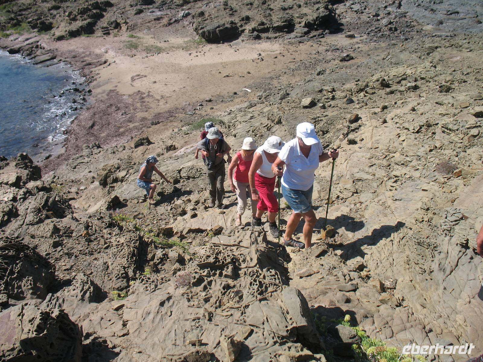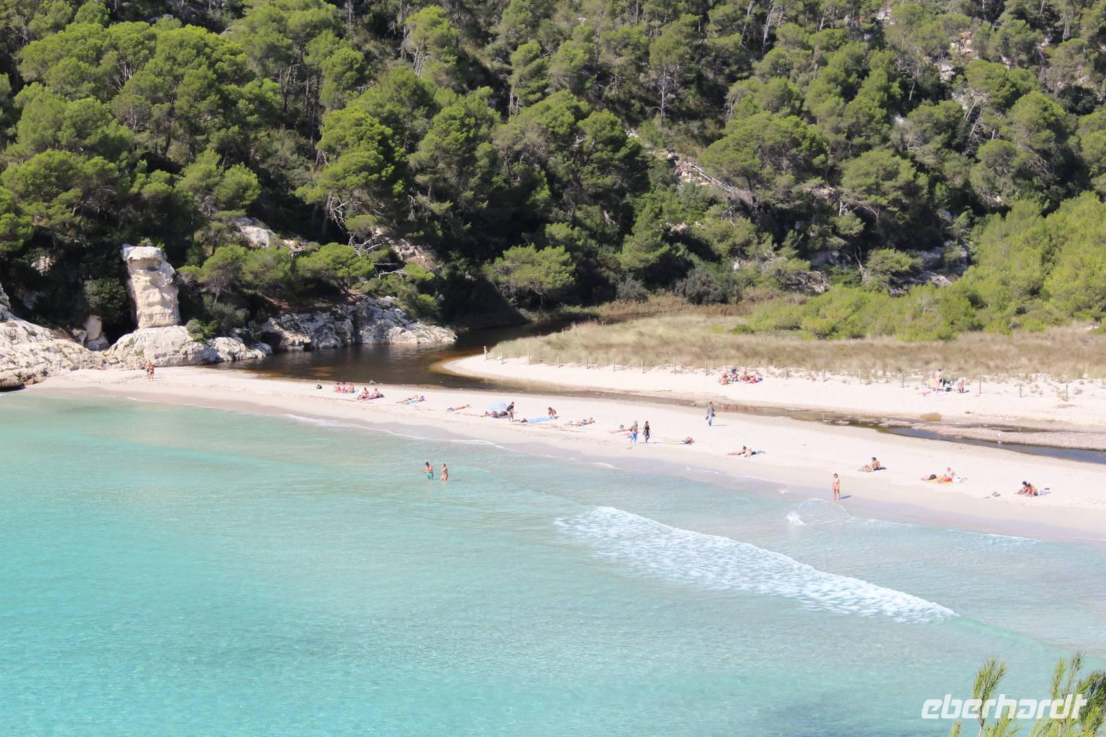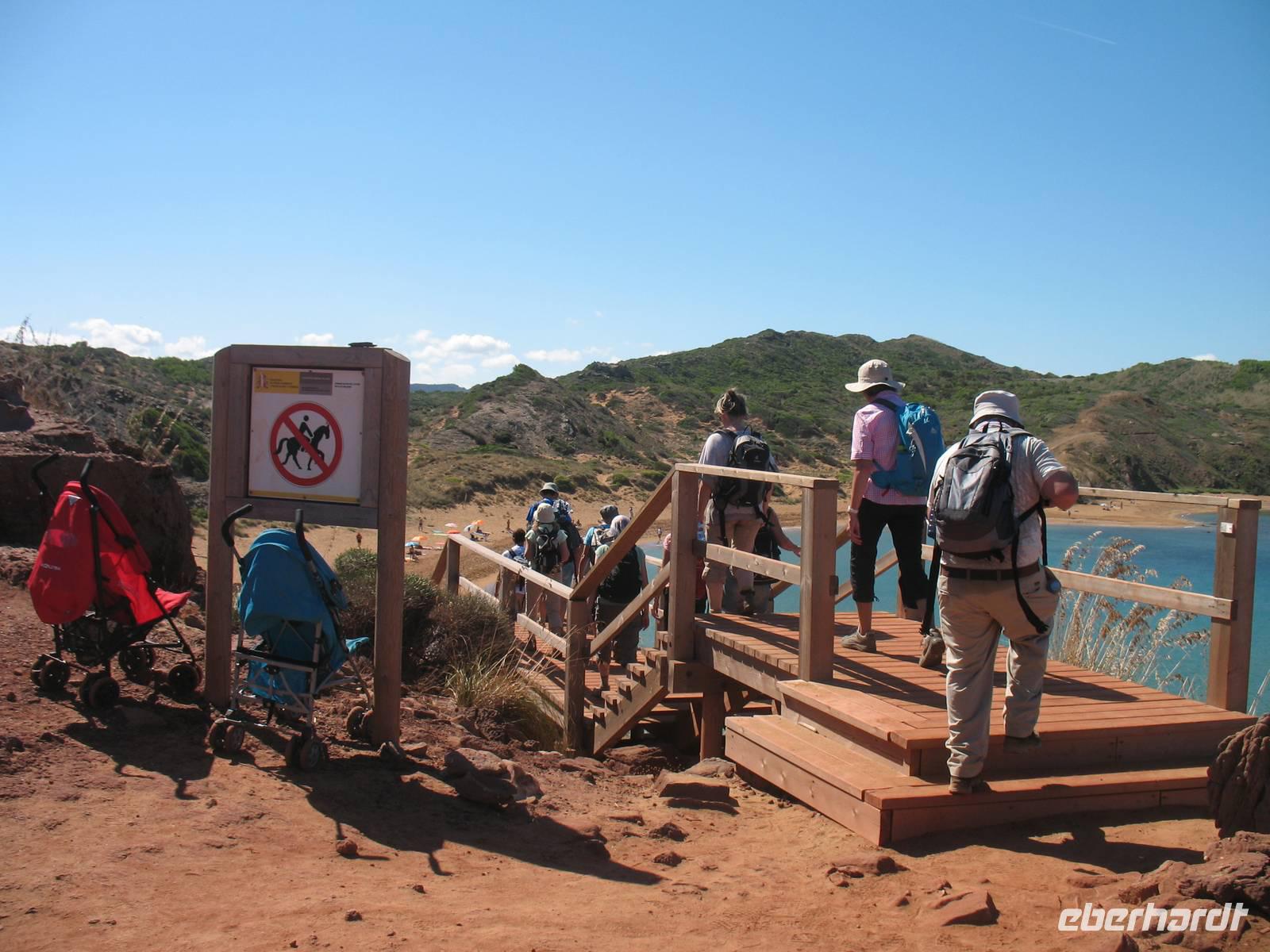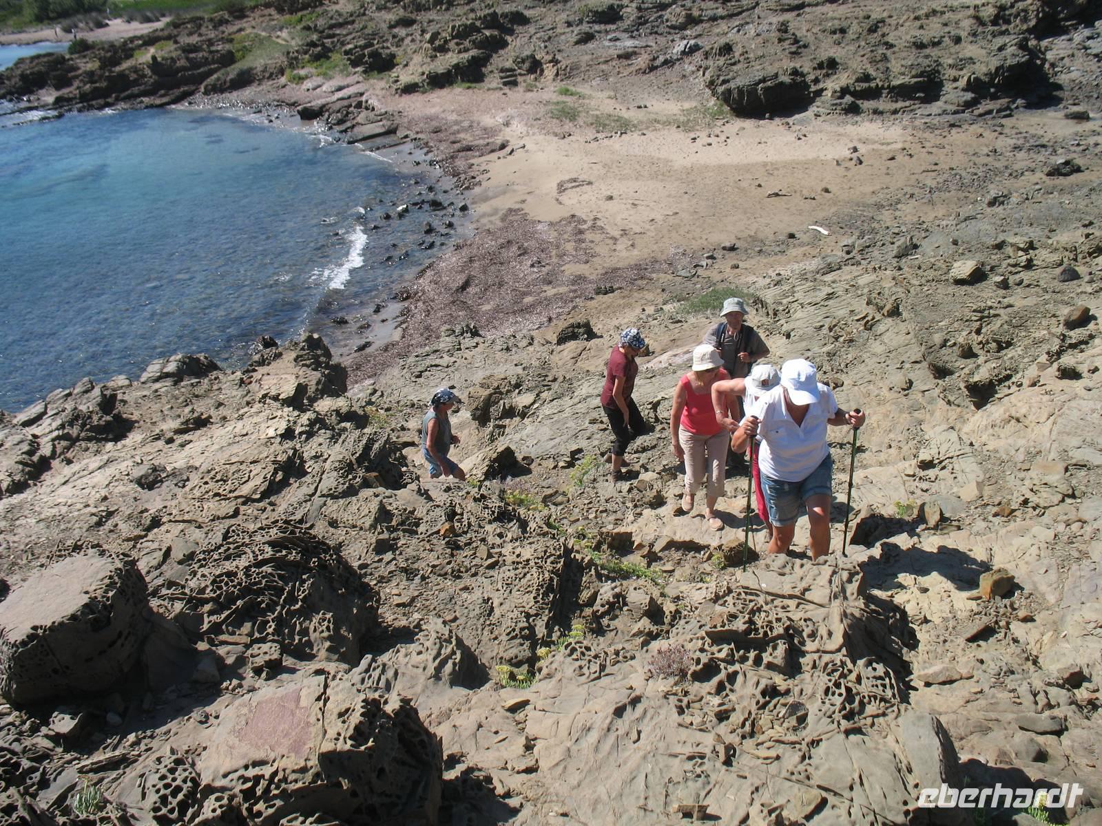Unser dritter Reisetag beginnt wieder mit strahlendem Sonnenschein :-) Nach einem leckeren Frühstück teilt sich unsere Reisegruppe abermals. Die Gäste mit kulturellem Programm entdecken heute die schönsten Gegenden Menorcas. Erstes Ziel ist die prähistorische Dorfanlage Torralba d'en Salort, wo sie von Otto mehr über die Geschichte der Insel erfahren. Der Talayot ist ein runder, kegelstumpfförmiger Turm mit einem Durchmesser von bis zu 20 Metern. Hier, in der bekannten Ausgrabungsstätte der Talayot-Kultur, ist die besterhaltene, schönste und höchste Taula zu bestaunen. Diese Art von Großstein-Bauwerk ist nur auf der Baleareninsel Menorca anzutreffen: Ein T-förmiges Monument, welches aus mindestens zwei riesigen Steinen besteht. Danach führt ihre Fahrt sie weiter auf den höchsten Berg der Insel, den El Toro (357 Meter), wo die Wallfahrtskirche Mare de Déu bezaubert und von dem aus sie eine herrliche Aussicht über Menorca genießen können. Anschließend schauen sie sich noch das Fischerdorf Fornell an, bevor sie am Nachmittag wieder zum Hotel fahren. Für die Wanderer wird es heute viel entspannter als am vorherigen Tag. Besonders den Badeaufenthalt genießen wir in vollen Zügen. Diese Wanderung an der Nordküste Menorcas zeigt besonders anschaulich die farbenprächtige Vielgestalt seiner ständig wechselnden Landschaften und auch die interessante Flora und Fauna. Auf Menorca sind rund 280 verschiedene Vogelarten zu finden, Greifvögel wie der Fischadler (Pandion haliaetus) oder Wanderfalke (Falco peregrinus). Aber es gibt auch Kormorane, Möwen, Kiebitze und Rebhühner. Weitere Tiere der Insel sind Kaninchen, Fledermäuse, Igel oder die Balearen-Eidechse und die Mittelmeerschildkröte. Neben dichten Kiefern- und Steineichenwäldern gibt es auch den Oleaster (Olea europaea sylvestris), den für die Insel typischen Wilden Olivenbaum. Auf dem Pferdeweg wandern wir über einige Hügel von Cala Tirant an der traumhaften Küste entlang bis zur einsamen Bucht Cala Mica, wo wir im Schatten unser Lunchpaket verspeisen. Rund eine halbe Stunde später erreichen wir dann den Strand von Binimel•là, unseren heutigen Zielpunkt. Wir gönnen uns ein erfrischendes Bad im kühlen Meer und genießen das sonnige Wetter bei bis zu 27 Grad. Bevor wir zum Hotel zurückfahren, gibt es natürlich noch ein leckeres Eis ;-) Im Hotel verabreden wir uns wieder um 19.30 Uhr zum Abendessen, wo wir unsere anderen Reisegäste wiedersehen. Nach dem leckerem Abendessen ist heute BINGO im Hotel angesagt, es soll auch sehr lustig werden, was besonders an unseren großartigen Kellnern Gabriel und Juan liegt. Sie sind pures Entertainment :-D Unsere Gruppe gewinnt sogar die meisten Preise! Gegen 23.00 Uhr verspüren wir langsam Müdigkeit, so dass wir uns bis zum nächsten Morgen verabschieden.