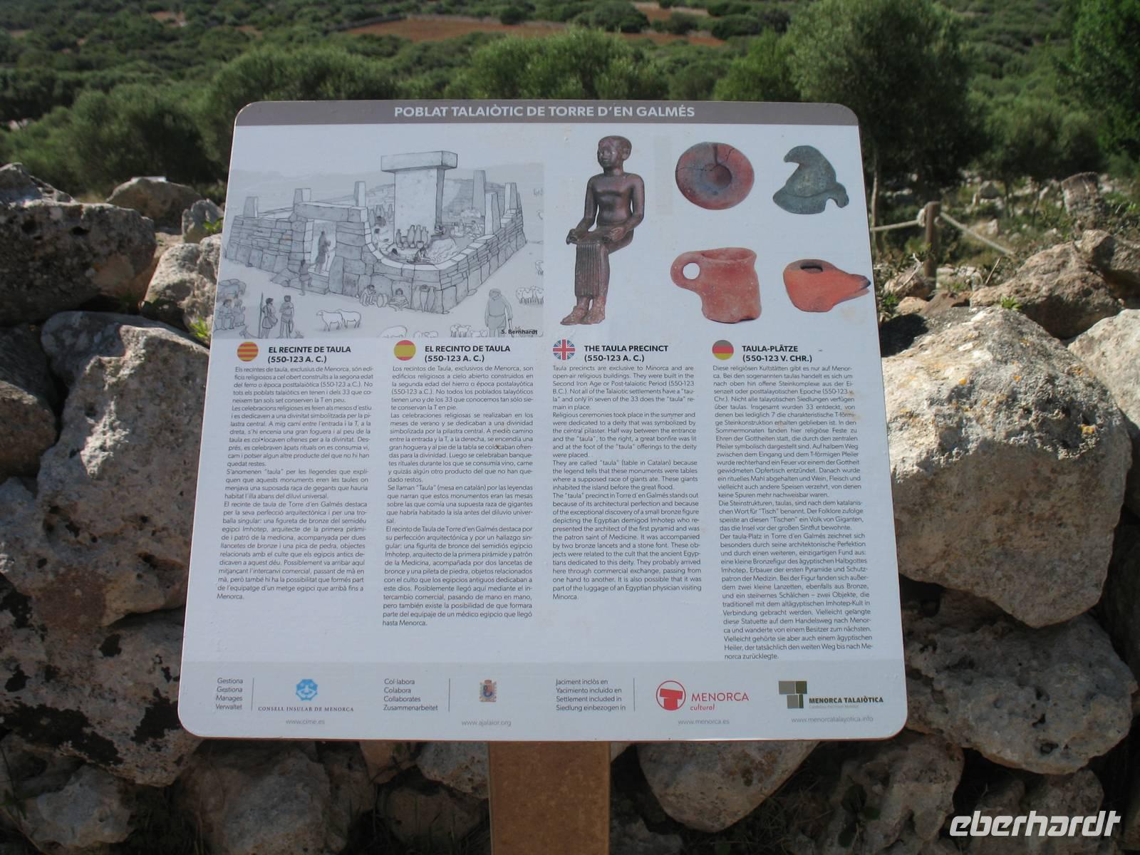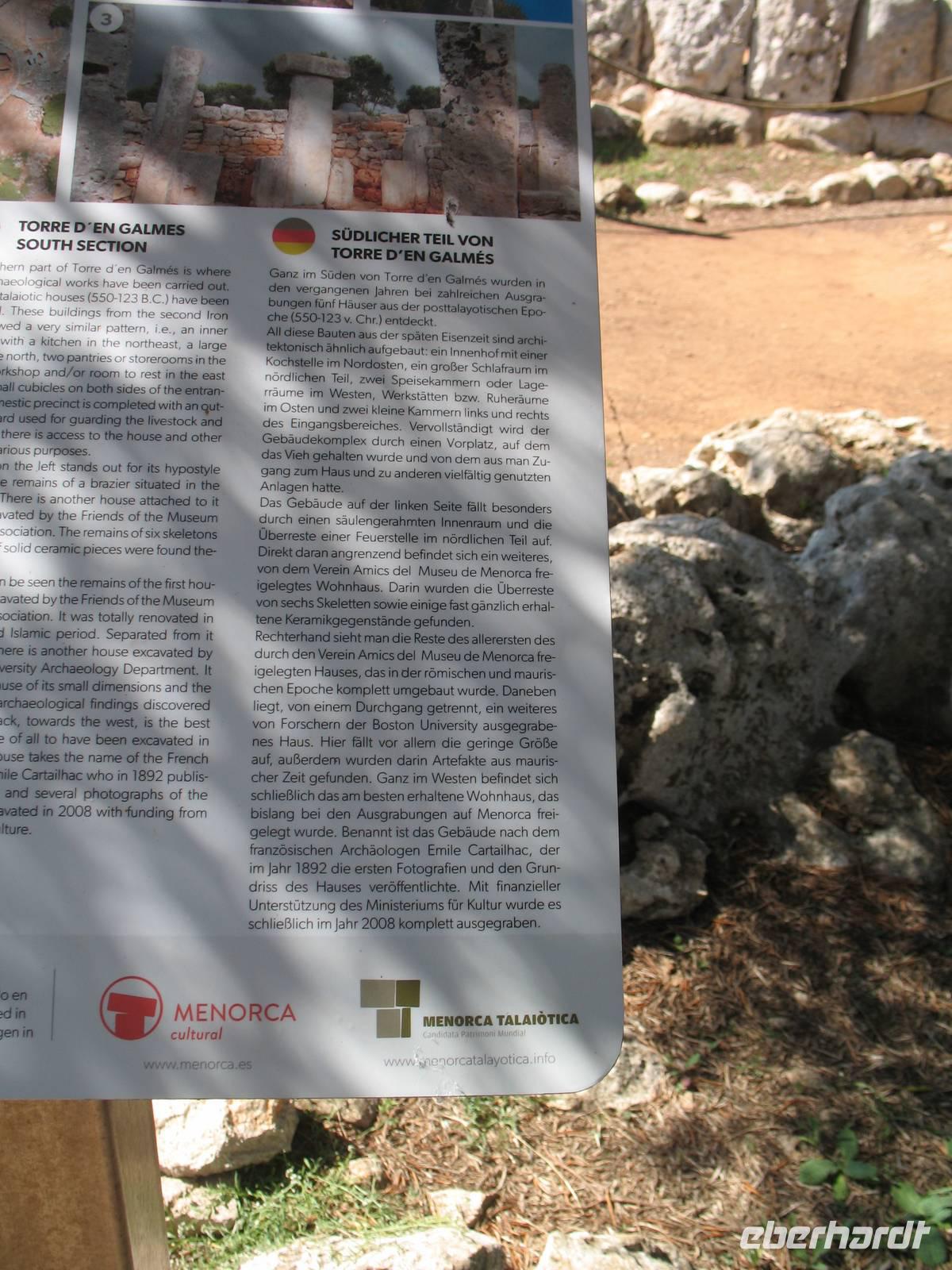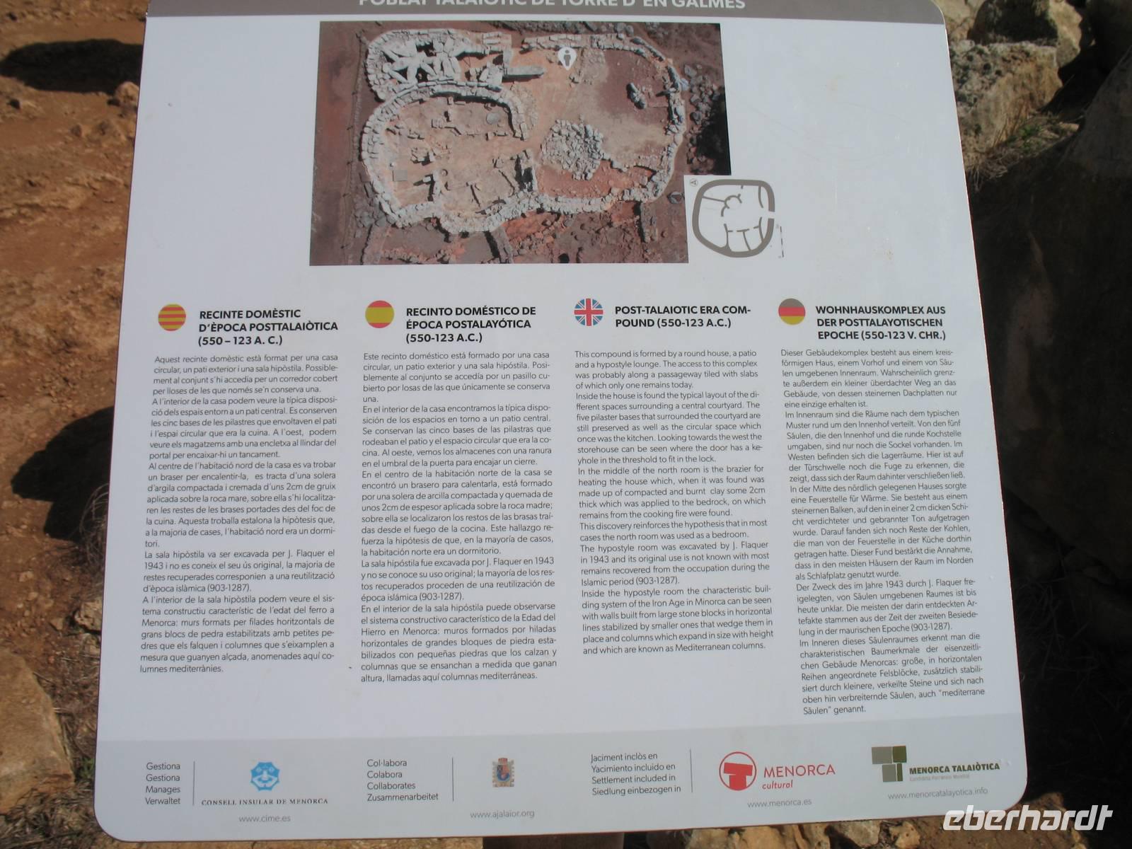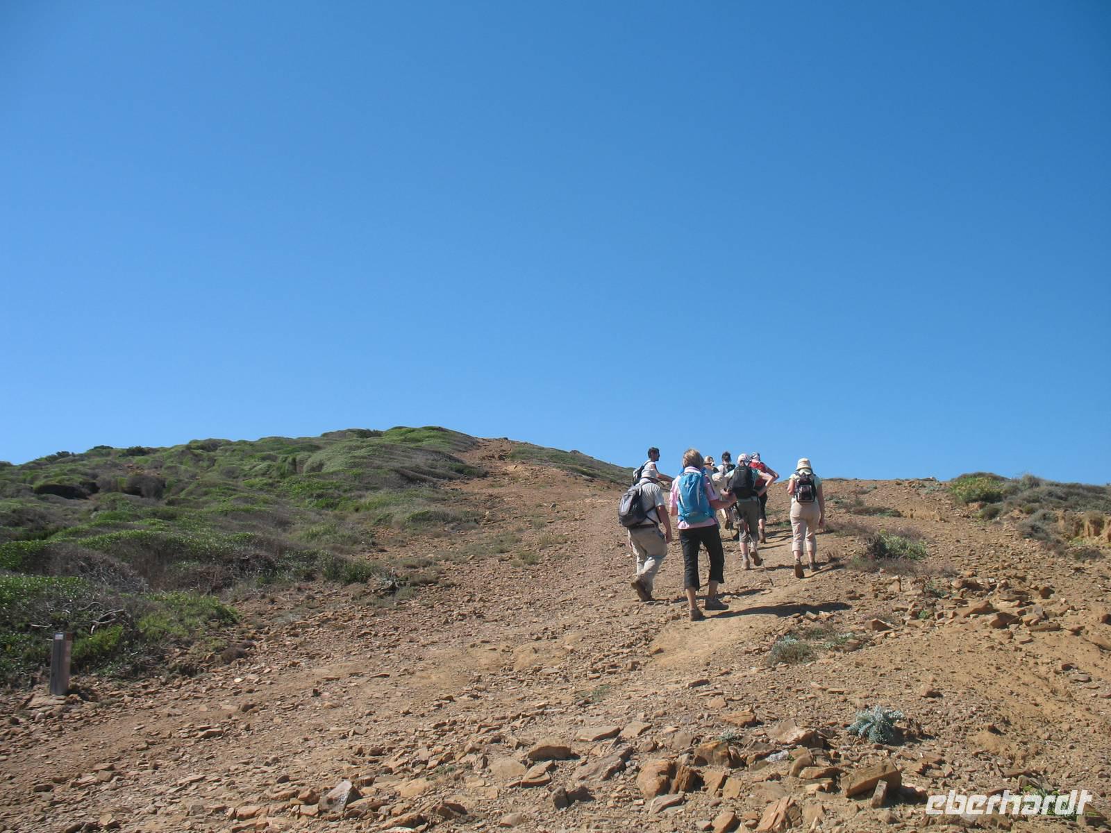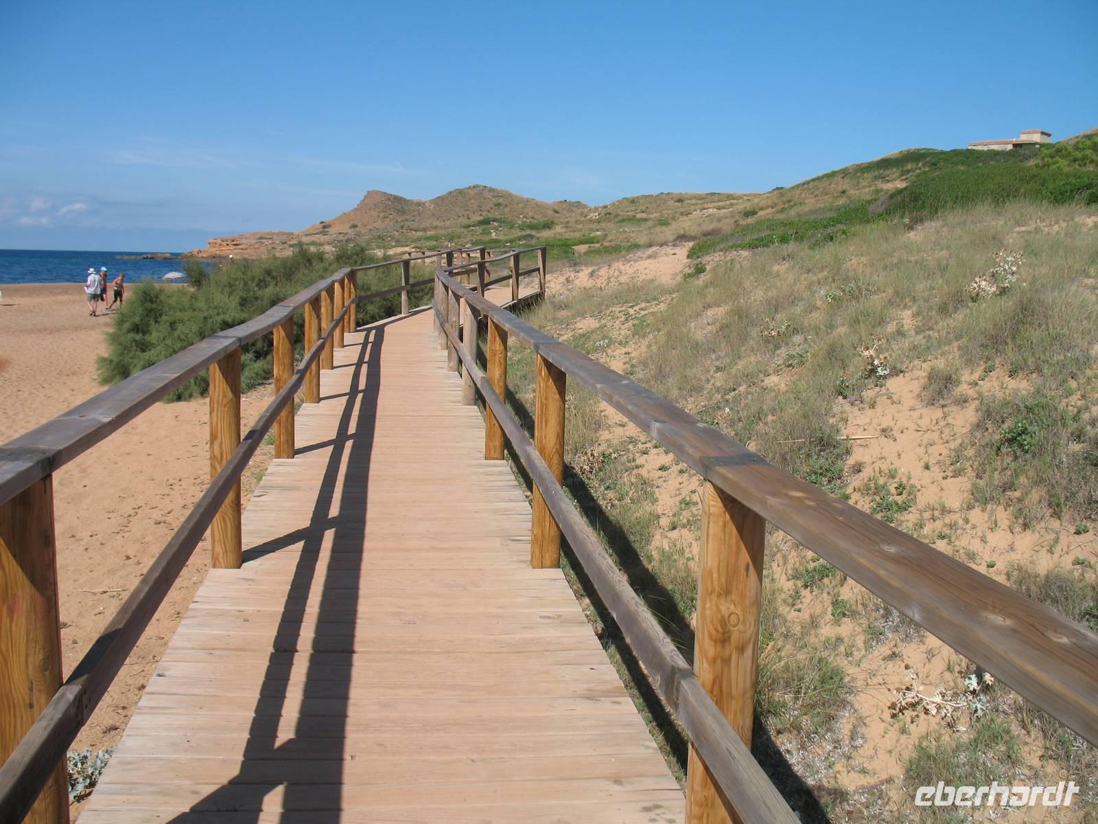 Unser dritter Reisetag beginnt wieder mit strahlendem Sonnenschein :-) Nach einem leckeren Frühstück teilt sich unsere Reisegruppe abermals. Die Gäste mit kulturellem Programm entdecken heute die schönsten Gegenden Menorcas. Erstes Ziel ist die prähistorische Dorfanlage Torralba d'en Salort, wo sie von Otto mehr über die Geschichte der Insel erfahren. Der Talayot ist ein runder, kegelstumpfförmiger Turm mit einem Durchmesser von bis zu 20 Metern. Hier, in der bekannten Ausgrabungsstätte der Talayot-Kultur, ist die besterhaltene, schönste und höchste Taula zu bestaunen. Diese Art von Großstein-Bauwerk ist nur auf der Baleareninsel Menorca anzutreffen: Ein T-förmiges Monument, welches aus mindestens zwei riesigen Steinen besteht. Danach führt ihre Fahrt sie weiter auf den höchsten Berg der Insel, den El Toro (357 Meter), wo die Wallfahrtskirche Mare de Déu bezaubert und von dem aus sie eine herrliche Aussicht über Menorca genießen können. Anschließend schauen sie sich noch das Fischerdorf Fornell an, bevor sie am Nachmittag wieder zum Hotel fahren. Für die Wanderer wird es heute viel entspannter als am vorherigen Tag. Besonders den Badeaufenthalt genießen wir in vollen Zügen. Diese Wanderung an der Nordküste Menorcas zeigt besonders anschaulich die farbenprächtige Vielgestalt seiner ständig wechselnden Landschaften und auch die interessante Flora und Fauna. Auf Menorca sind rund 280 verschiedene Vogelarten zu finden, Greifvögel wie der Fischadler (Pandion haliaetus) oder Wanderfalke (Falco peregrinus). Aber es gibt auch Kormorane, Möwen, Kiebitze und Rebhühner. Weitere Tiere der Insel sind Kaninchen, Fledermäuse, Igel oder die Balearen-Eidechse und die Mittelmeerschildkröte. Neben dichten Kiefern- und Steineichenwäldern gibt es auch den Oleaster (Olea europaea sylvestris), den für die Insel typischen Wilden Olivenbaum. Auf dem Pferdeweg wandern wir über einige Hügel von Cala Tirant an der traumhaften Küste entlang bis zur einsamen Bucht Cala Mica, wo wir im Schatten unser Lunchpaket verspeisen. Rund eine halbe Stunde später erreichen wir dann den Strand von Binimel•là, unseren heutigen Zielpunkt. Wir gönnen uns ein erfrischendes Bad im kühlen Meer und genießen das sonnige Wetter bei bis zu 27 Grad. Bevor wir zum Hotel zurückfahren, gibt es natürlich noch ein leckeres Eis ;-) Im Hotel verabreden wir uns wieder um 19.30 Uhr zum Abendessen, wo wir unsere anderen Reisegäste wiedersehen. Nach dem leckerem Abendessen ist heute BINGO im Hotel angesagt, es soll auch sehr lustig werden, was besonders an unseren großartigen Kellnern Gabriel und Juan liegt. Sie sind pures Entertainment :-D Unsere Gruppe gewinnt sogar die meisten Preise! Gegen 23.00 Uhr verspüren wir langsam Müdigkeit, so dass wir uns bis zum nächsten Morgen verabschieden.