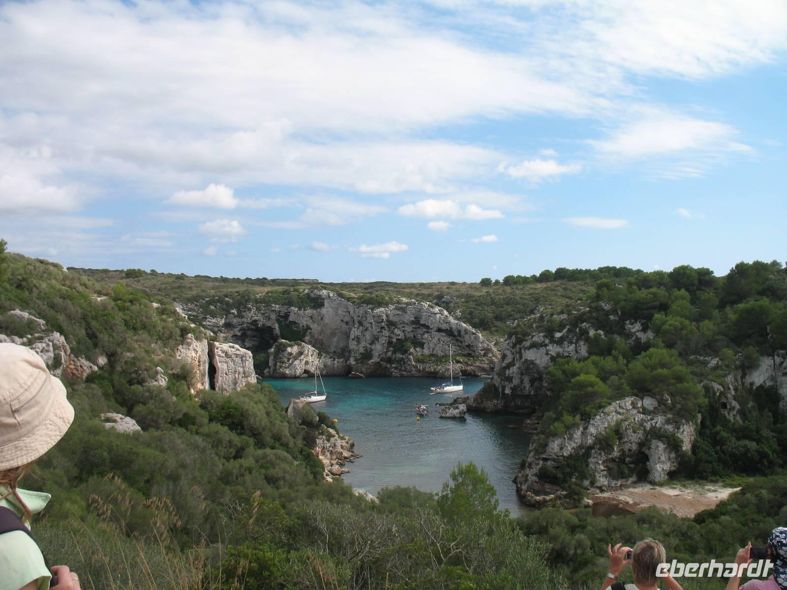 Ein weiterer spannender Tag auf der Balearischen Insel erwartet uns :-) Die Wandergruppe erlebt heute mit George eine tolle Wanderung von Sant Tomàs an den Strand von Cala Galdana. Diese Tour ist eine der vielseitigsten Wanderungen, welche im Süden Menorcas unternommen werden kann. Sie präsentiert verschiedene inseltypische Landschaften: Eine schattige, grüne Schlucht, welche am Meer endet und sechs unbebaute Buchten, welche mit ihren weißen Sandstränden und türkisfarbenem, kristallklarem Wasser locken. Beginnend in Sant Tomàs folgen die Gäste dem Sendero Litoral, dem Küstenpfad, wie er über weite Strecken fast unmittelbar der Küstenlinie folgt. Zuweilen geht es direkt über die holprigen Felsen oberhalb des Meeres zur weißsandigen Cala Escorxada, kurz darauf zur kleinen Cala Fustam und noch einmal über die Küstenfelsen weiter bis zur malerischen Cala Trebalúger. Als letzte Bucht queren die Gäste die Cala Mitjana, um schließlich das Etappenziel, den Ferienort Cala Galdana mit seinem großen sichelförmigen Strand zu erreichen. Unterwegs erfahren die Gäste allerhand Informationen zu Land, Leute und der Geschichte Menorcas. Natürlich beinhaltet diese Wanderung auch wieder tolle Badestopps an traumhaften Stränden und im herrlichen Meer. Den Abschluss dieses schönen Tages bildet der Besuch des Ferreries Factory Shop mit den landestypischen Schuhen "Pretty Ballerinas Mascaró" direkt an der Landesstraße ME1 in Ferreries. Ein Paar Schuhe als Erinnerung werden natürlich auch gekauft, ein wahrer Erfolg also :-) Während die Wanderer den Tag im Süden Menorcas genießen, lernen die Rundreise-Gäste die Inselhauptstadt Mahón bei einem Stadtrundgang kennen. Ein charakteristisches Getränk der Insel Menorca ist der Gin, welcher aus Traubensaft hergestellt und mit Wacholderbeeren aromatisiert wird. Noch heute wird er traditionell von der Destillerie Xoriguer in Mahón nach "Geheimrezept" produziert. Natürlich dürfen wir das "Nationalgetränk" der Menorquiner und deren verschiedenen Arten auch probieren. Den grandiosen Naturhafen von Mahón bestaunen wir bei einer tollen einstündigen Bootsfahrt. Der Fjord mit einer Länge von fünf Kilometern und einer Breite bis zu 300 Metern ist wohl der schönste Naturhafen des Mittelmeeres. Wir fahren an der Base Naval, der Golden Farm, den Mejilloneras, S'Altra Banda, dem Cementerio Anglo-Americano, der Illa Plana, dem Canal de Sant Jordi, die Cala Teulera, den Torres de Defensa und der Fortalesa de la Mola vorbei. Weiter geht es zum Fort de Sant Felip, der Illa de Llatzeret, die Hafenbucht Cales Fonts, die britische Garnisonsstadt Es Castell, der Illa del Rei (Königsinsel) und zum rotem Collingwood House. Das prachtvolle rosafarbene Villenhaus Golden Farm ist unter anderem dafür bekannt, dass in dieser Villa Ende des 18. Jahrhunderts Lord Nelson und Lady Hamilton ein geheimes Tête-à-Tête gehabt haben sollen. Wieder im Hafen werden wir zum Stadtzentrum gefahren, wo Otto uns den Fisch- und Gemüsemarkt in Mahón zeigt, bevor wir Zeit für eigene Entdeckungen in der größten Stadt der Insel und zum Mittagsessen haben. Es folgt die an der Südküste gelegene malerische weiße Siedlung Binibeca. Nicht weit entfernt, an der Steilküste, versteckt sich die Naturhöhle Cova d'en Xoroi, eine der bekanntesten Sehenswürdigkeiten der Insel mit Aussichtsterrassen, Tunnel und verschwiegenen Nischen, welche uns zum Erforschen und Verweilen einladen. Von hier aus genießen wir den fantastischen Ausblick über die Steilküste, einfach traumhaft!!!!! Hier würden wir auch gern länger verweilen :-) Nach rund einer Stunde geht es aber schon wieder zurück zu unserem Hotel. Wie gewohnt sehen wir uns alle zum leckerem Abendessen um 19.30 Uhr wieder. Um 21.30 Uhr findet heute Abend eine Art Glücksrad im Hotel statt, an welchem auch wieder einige Gäste teilnehmen und viele Preise gewinnen :-) Ein paar andere Gäste zieht es heute auf die Promenade und wir gönnen uns noch einen Drink im irischen Pub "Blarney Stone". Auf dem Rückweg lauschen wir abermals dem großartigem Gesang der zwei Tenöre, welche uns bereits in unserem Hotel begeistert haben. Ein wirklich tolle Tagesausklang!!!!