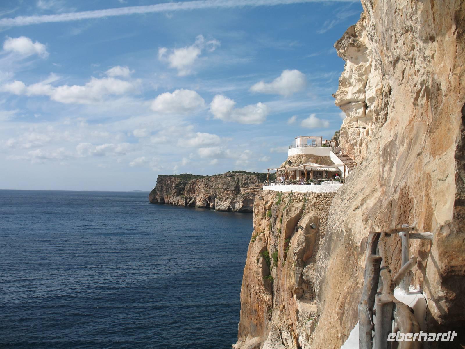 Tag 5 – Donnerstag, der 24.09.2015: Von Cala Blanca über Maó–Mahón, Binibeca zur Cova d'en Xoroi (129 Kilometer) oder Wanderung von Sant Tomàs nach Cala Galdana (10 Kilometer, Gehzeit: 3,5 Stunden, 100 Meter Auf– und Abstieg, Schwierigkeitsgrad: moderat)