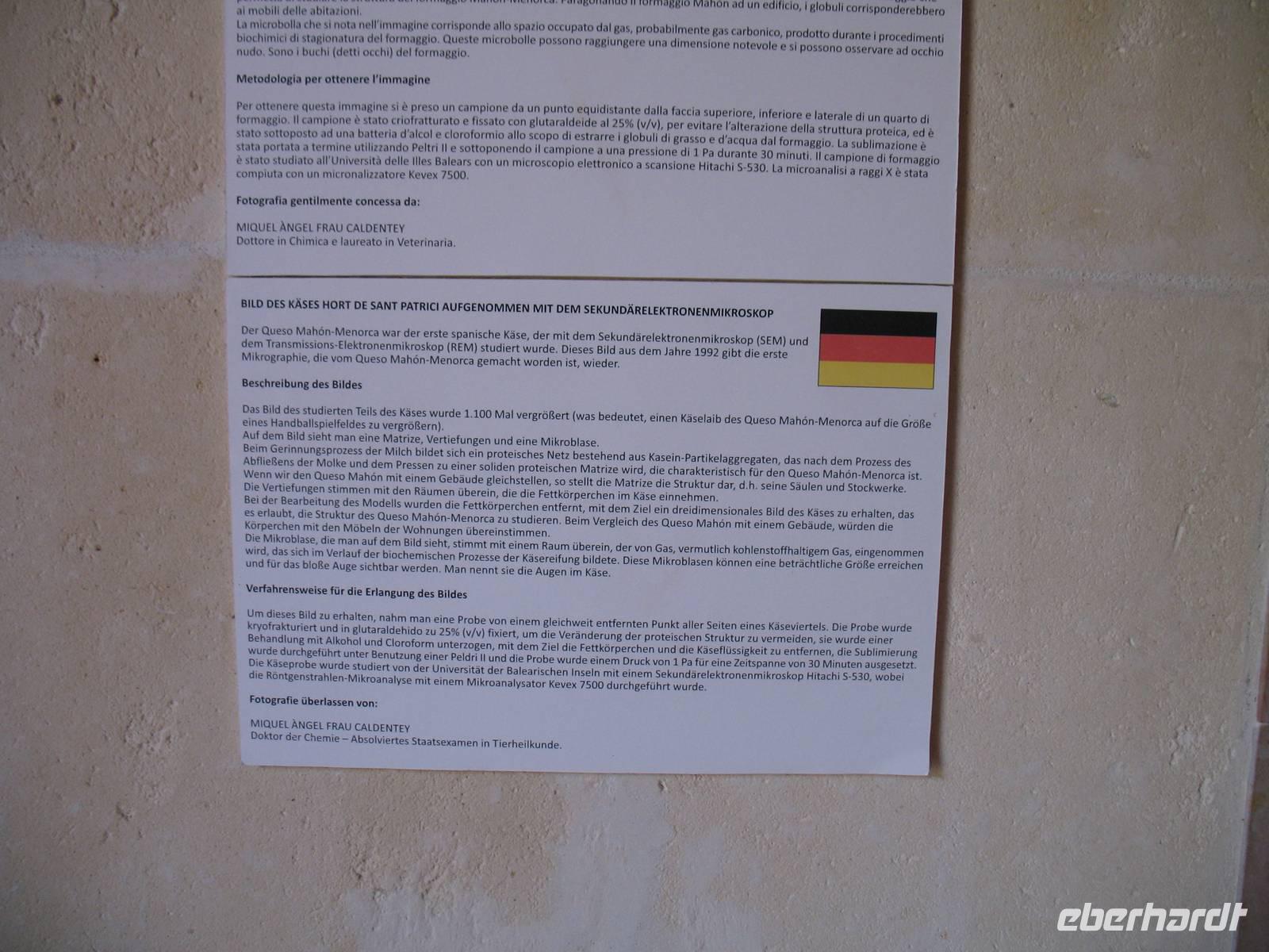 Kaum zu glauben, aber wir sind schon seit fünf Tagen auf dieser wunderschönen Insel unterwegs und haben bereits viele Highlights erlebt. Heute lernen wir auf eine sehr persönliche Art Menorcas versteckte Winkel kennen! Wir besuchen die Menorquiner in ihren Dörfern und erfahren einige Details über die traditionelle Käseproduktion beim Besuch des Museums auf der Finca S'Hort de Sant Patrici. Im kleinem Käsemuseum probieren wir bei einem Gläschen vom hauseigenen Wein den jungen und alten "Queso Mahón", welcher zu 100 Prozent aus Weidemilch hergestellt wird und dadurch seinen würzigen Geschmack erhält. Etwa 2.000 Tonnen Käse werden jährlich aus Kuhmilch hergestellt. Besonders lecker schmeckt der Käse mit der hausgemachten Marmelade: Der junge milde Käse (Reifezeit 21 bis 60 Tage), auch "Tierno" genannt, mit Feigenmarmelade "Figat" und der ältere herzhaftere Käse "Curado" (Reifezeit 5 bis 12 Monaten) mit Tomatenmarmelade. Wir können uns gar nicht entscheiden, welcher Käse besser schmeckt ;-) Natürlich kaufen wir auch ein wenig Käse für unsere geliebten Daheimgebliebenen. Anschließend geht unsere Fahrt auch schon weiter und wir besuchen die landschaftlich einmaligen schwarzen Schieferklippen von Favàritx, den erdgeschichtlich ältesten Teil der Insel. Die Straße ist hier so eng für den Bus, dass die entgegenkommenden Autos mehrmals rückwärtsfahren müssen. Anschließend geht es ein weiteres Mal in die Inselhauptstadt Maó - Mahón. Heute lauschen wir unter anderem einem großartigem halbstündigem Orgelkonzert in der Kirche Santa María, der Eintritt von fünf Euro für das Konzert hat sich allemal für den tollen Klang gelohnt ;-) Oder auch ein Besuch der Museen "Museo de Bellas Artes" oder "Museo Arqueológico" mit geschichtlichen Errungenschaften aus der Frühzeit der Insel wäre denkbar. Zuletzt besichtigen wir den Naturpark S´Albufera Es Grau mit seiner traumhaften Lagune. Für einige Gäste gibt es auch noch das typische Getränk der Insel, die Pomada, bestehend aus Gin Xoriguer und Zitronenlimonade. Dann fahren wir zum Hotel zurück und genießen die freie Zeit und das sonnige Wetter bis zum Abendessen an der Strandbucht bei unserem Hotel in Cala Blanca. Das Abendessen ist abermals sehr lecker. Der Großteil der Reisegruppe trifft sich zur Abendveranstaltung im Hotelsaal. Der Gesang der heutigen Veranstaltung überzeugt uns zwar nicht so sehr wie die Tage zuvor, aber dennoch schwingen wir das Tanzbein :-D oder wir entspannen bei einer Runde Skip-Bo. Nach diesem tollen Tag sind wir vollkommen relaxed, aber doch ein wenig müde, so dass wir uns gegen 23.00 Uhr auf unsere Zimmer zurückziehen. Wir wünschen uns eine gute Nacht und freuen uns schon auf morgen und weitere einzigartige Ereignisse :-)