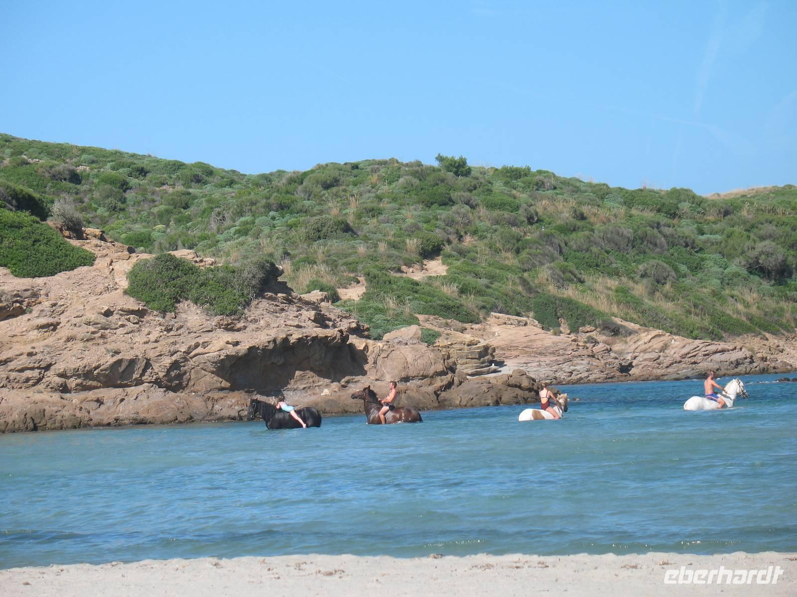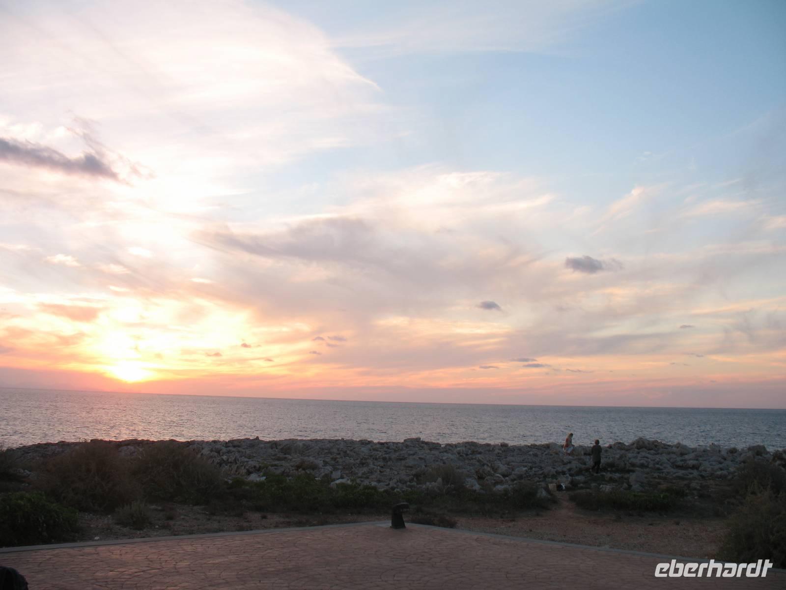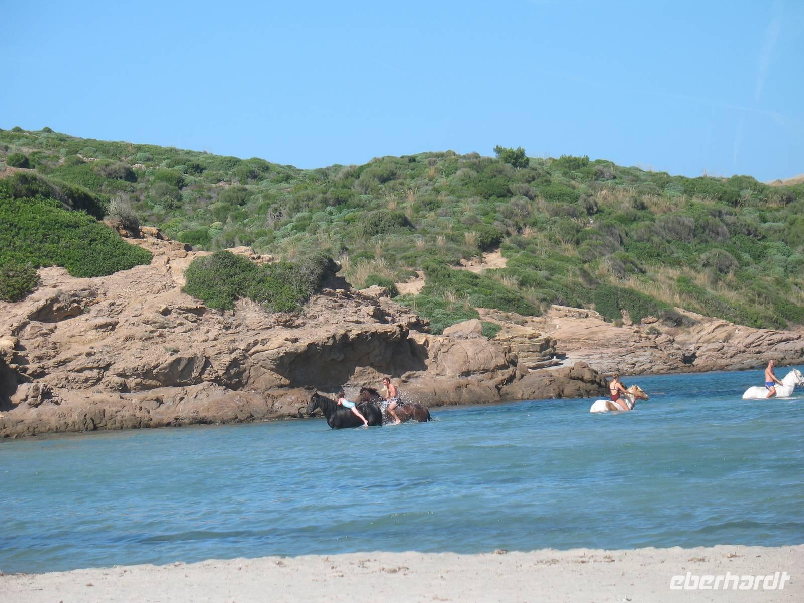 Während einige Gäste den letzten Tag zur Entspannung am Hotelpool oder am Strand von Cala Blanca nutzen, geht es für unsere Wanderer in den Naturpark Parc Natural de S'Albufera des Grau. Auch unsere Rundreise-Gäste können fakultativ an dieser Wanderung teilnehmen, einige können wir auch dafür begeistern :-) Der Landesnaturpark S'Albufera Es Grau mit dem größten Feuchtgebiet der Insel ist die am strengsten geschützte Landschaft der Insel und bildet deshalb die Kernzone des gesamten seit 1993 von der UNESCO zum Biosphärenreservat erklärten Menorca. Die Gesamtfläche des S'Albufera des Grau umfasst mehr als 5.000 Hektar mit einer 70 Hektar großen und bis zu drei Metern tiefen Lagune. Unsere Wanderung beginnt am Cap de Favàritx, welches mit seinem kargen, dunklen Schiefergestein eine der extremsten und eindrucksvollsten Landschaften der Insel bildet. Wir folgen dem Camí in Richtung Süden, passieren die Bucht Platja Tortuga, wandern über weitere Anhöhen und ziehen über Felder bis zur Cala Torreta. Des Weiteren genießen einige Gäste auch von der Ruine eines britischen Verteidigungsturms Sa Torreta einen wunderbaren Panoramablick auf die vorgelagerte Insel Illa d'en Colom. Kleinere Strände und einige Hügel trennen uns von der weit geschwungenen Bucht von Es Grau. Über einen schattigen Weg hinter den Dünen erreichen wir abschließend die Strandbucht der kleinen Küstensiedlung Es Grau. Während einige Reisegäste bereits am Strand entspannen und sich in das wirklich nicht sehr tiefe Wasser begeben, wandern die anderen Gäste noch zum Aussichtspunkt Mirador mit Blick über die gesamte Lagune S'Albufera. Die Lagune wird über den Kanal Sa Gola mit Meerwasser "gefüllt". Rund eine halbe Stunde später sind wir alle im Wasser, aber wir sind nicht allein :-) Eine Gruppe Reiter ist mit ihren Pferden ebenfalls am Strand unterwegs, auch die Tiere gönnen sich ein kühles Bad!!!! Die Fischerkolonie Es Grau bietet mit ihren Bars und dem Strand einen erholsamen Abschluss einer der schönsten Etappen des Camí de Cavalls unserer Reise. Wir gönnen uns noch ein leckeres Eis und fahren am späten Nachmittag zum Hotel zurück. Heute ist unser letzter gemeinsamer Abend in Menorca, so dass wir zusammen einen tollen Sonnenuntergang bei leckerem Pomada-Schnaps, Nüssen und Mandelplätzchen genießen. Nach unserem Abendessen begeben wir uns abermals auf die Terrasse, um uns zu unserer letzten Abendveranstaltung im Hotel zu treffen und die vergangenen Tage gemeinsam bei Cocktails und Bier Revue passieren zu lassen :-) Da wir aber wieder eine sehr kurze Nacht vor uns haben werden, verabschieden wir uns relativ früh und wünschen eine gute Nacht!