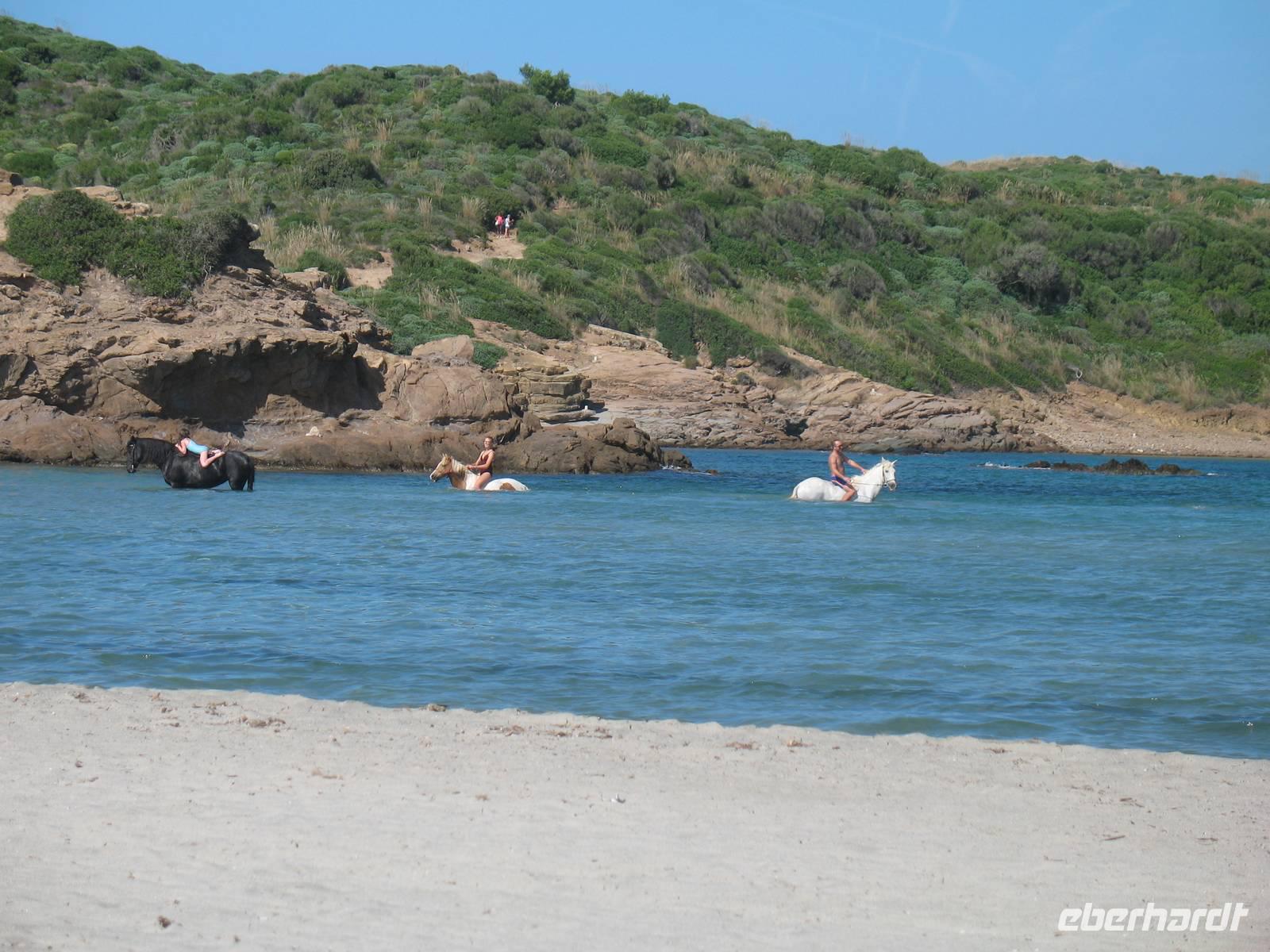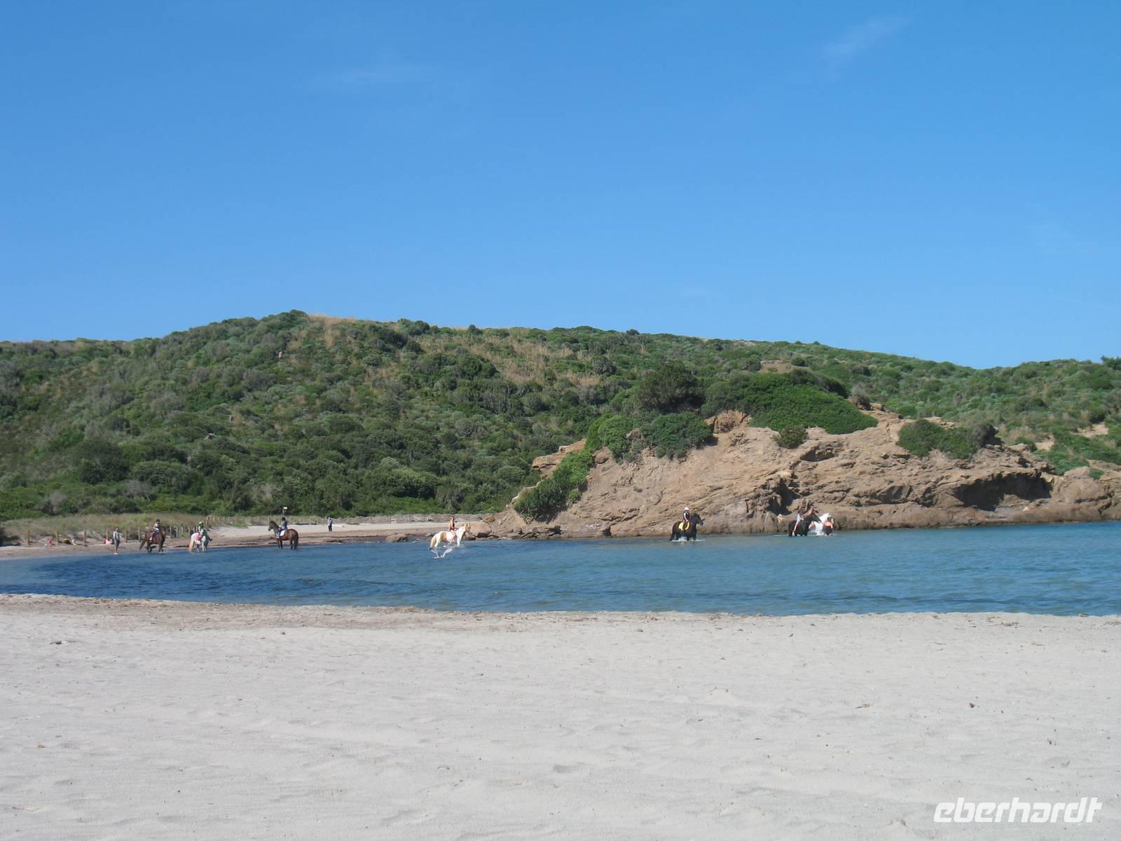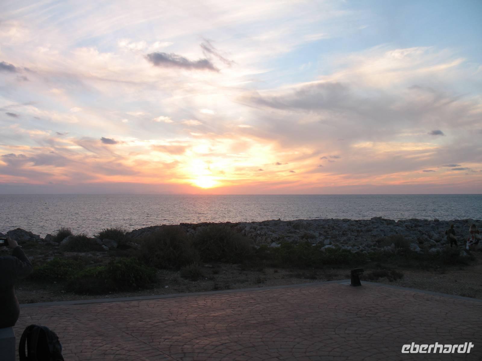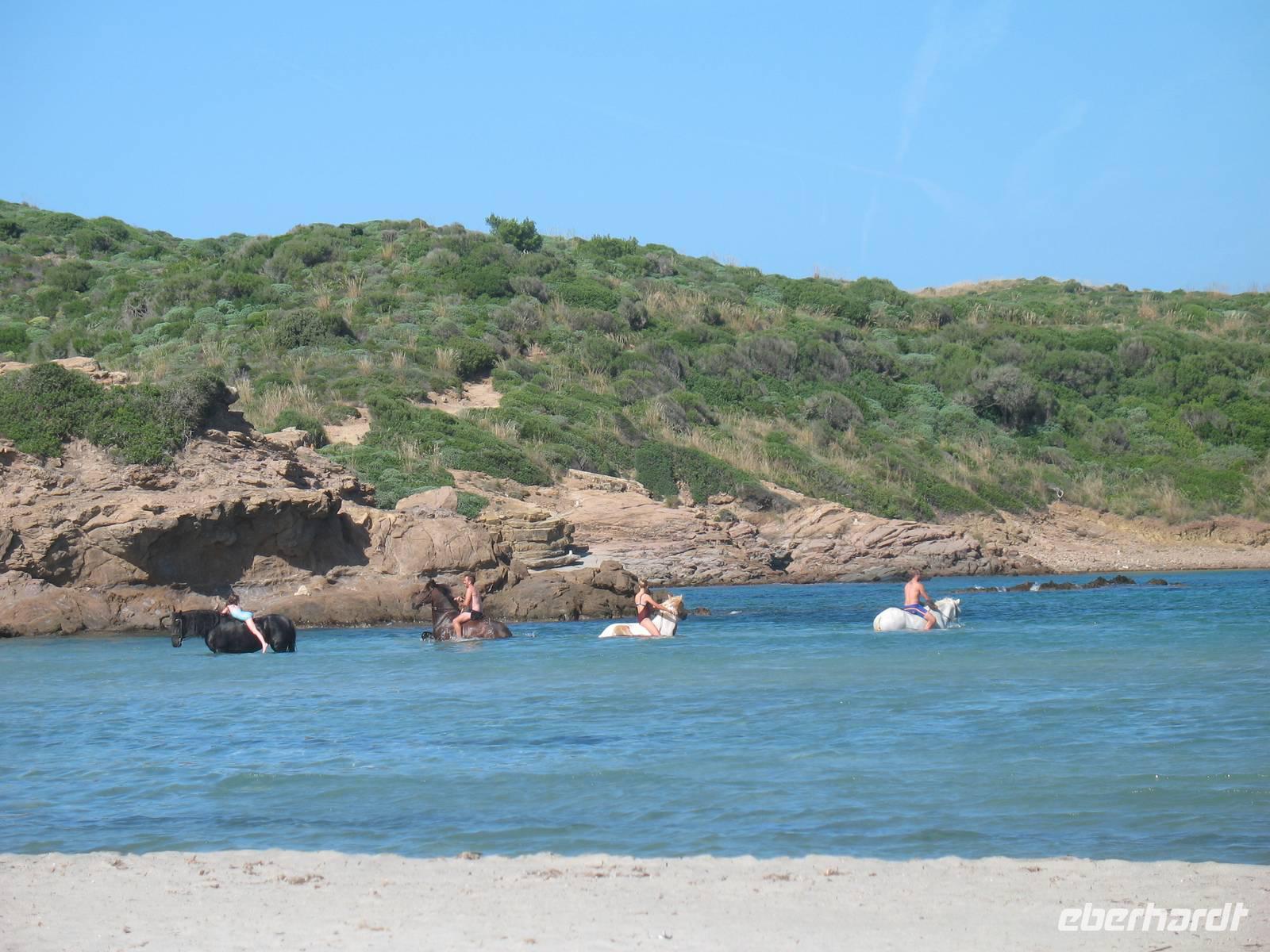 Während einige Gäste den letzten Tag zur Entspannung am Hotelpool oder am Strand von Cala Blanca nutzen, geht es für unsere Wanderer in den Naturpark Parc Natural de S'Albufera des Grau. Auch unsere Rundreise-Gäste können fakultativ an dieser Wanderung teilnehmen, einige können wir auch dafür begeistern :-) Der Landesnaturpark S'Albufera Es Grau mit dem größten Feuchtgebiet der Insel ist die am strengsten geschützte Landschaft der Insel und bildet deshalb die Kernzone des gesamten seit 1993 von der UNESCO zum Biosphärenreservat erklärten Menorca. Die Gesamtfläche des S'Albufera des Grau umfasst mehr als 5.000 Hektar mit einer 70 Hektar großen und bis zu drei Metern tiefen Lagune. Unsere Wanderung beginnt am Cap de Favàritx, welches mit seinem kargen, dunklen Schiefergestein eine der extremsten und eindrucksvollsten Landschaften der Insel bildet. Wir folgen dem Camí in Richtung Süden, passieren die Bucht Platja Tortuga, wandern über weitere Anhöhen und ziehen über Felder bis zur Cala Torreta. Des Weiteren genießen einige Gäste auch von der Ruine eines britischen Verteidigungsturms Sa Torreta einen wunderbaren Panoramablick auf die vorgelagerte Insel Illa d'en Colom. Kleinere Strände und einige Hügel trennen uns von der weit geschwungenen Bucht von Es Grau. Über einen schattigen Weg hinter den Dünen erreichen wir abschließend die Strandbucht der kleinen Küstensiedlung Es Grau. Während einige Reisegäste bereits am Strand entspannen und sich in das wirklich nicht sehr tiefe Wasser begeben, wandern die anderen Gäste noch zum Aussichtspunkt Mirador mit Blick über die gesamte Lagune S'Albufera. Die Lagune wird über den Kanal Sa Gola mit Meerwasser "gefüllt". Rund eine halbe Stunde später sind wir alle im Wasser, aber wir sind nicht allein :-) Eine Gruppe Reiter ist mit ihren Pferden ebenfalls am Strand unterwegs, auch die Tiere gönnen sich ein kühles Bad!!!! Die Fischerkolonie Es Grau bietet mit ihren Bars und dem Strand einen erholsamen Abschluss einer der schönsten Etappen des Camí de Cavalls unserer Reise. Wir gönnen uns noch ein leckeres Eis und fahren am späten Nachmittag zum Hotel zurück. Heute ist unser letzter gemeinsamer Abend in Menorca, so dass wir zusammen einen tollen Sonnenuntergang bei leckerem Pomada-Schnaps, Nüssen und Mandelplätzchen genießen. Nach unserem Abendessen begeben wir uns abermals auf die Terrasse, um uns zu unserer letzten Abendveranstaltung im Hotel zu treffen und die vergangenen Tage gemeinsam bei Cocktails und Bier Revue passieren zu lassen :-) Da wir aber wieder eine sehr kurze Nacht vor uns haben werden, verabschieden wir uns relativ früh und wünschen eine gute Nacht!