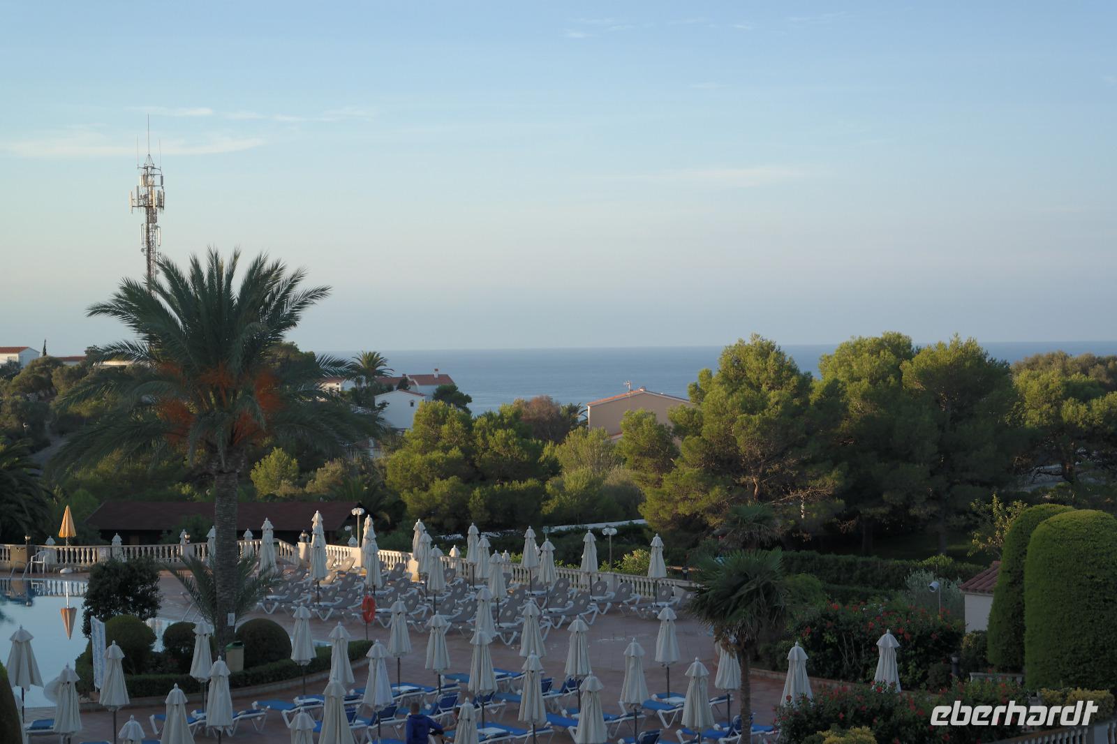 Zuvor wird die Gruppe aus Berlin auf eine ziemliche Geduldsprobe gestellt. Der geplante Abflug um 06.00 Uhr von Tegel gerät in Gefahr, denn 15 Minuten vor Abflug stehen einige Gäste noch mit dem Koffer am Check-In. Irgendwie schaffen wir es doch und sitzen endlich im Flieger und freuen uns auf die bevorstehenden Tage. Auf Menorca angekommen empfängt uns unser gutgelaunter George - er wird uns in den nächsten Tagen führen und das Wandern so richtig beibringen. Im Hotel wartet die erste Überraschung: müde und hungrig von der Anreise (im Flieger gibt es ja selbst Snacks und Getränke nur gegen Bares) dürfen wir es uns beim Frühstücksbuffet so richtig gut gehen lassen. George stellt uns das Programm der nächsten Tage vor - dann dürfen wir unsere Zimmer, das Hotel mit seiner herrlichen Pool-Anlage sowie den kleinen Ort und den Supermarkt erkunden. Wir erholen uns schnell und sind gespannt auf unsere erste Wanderung.