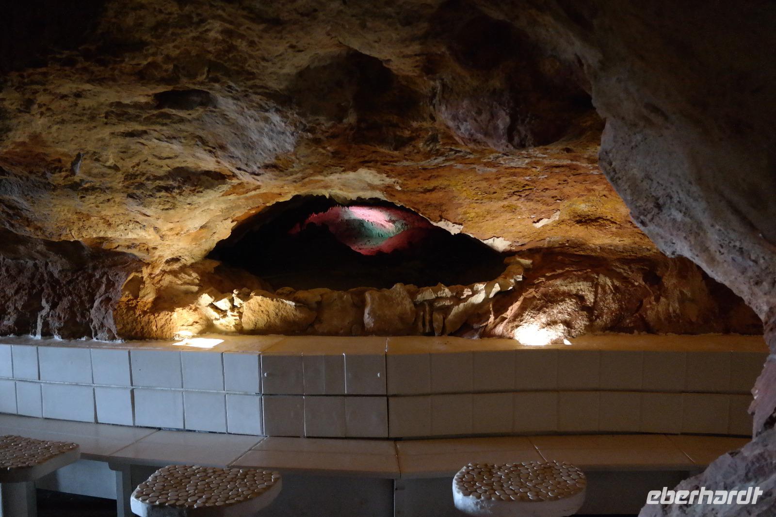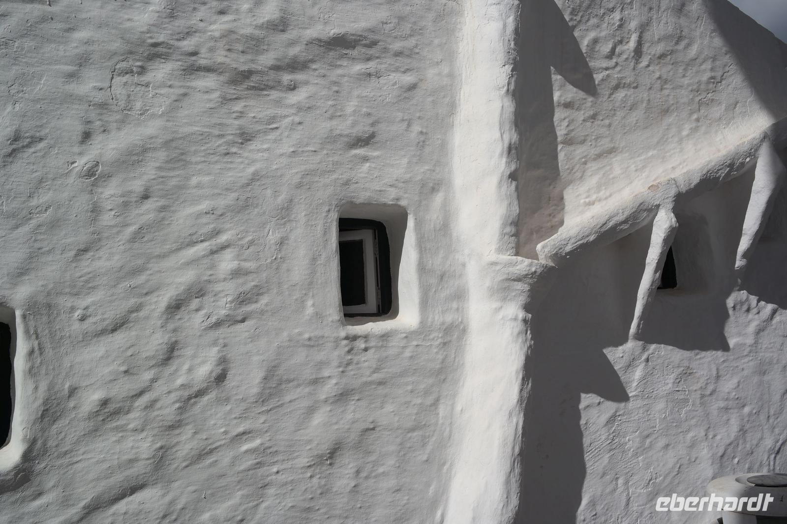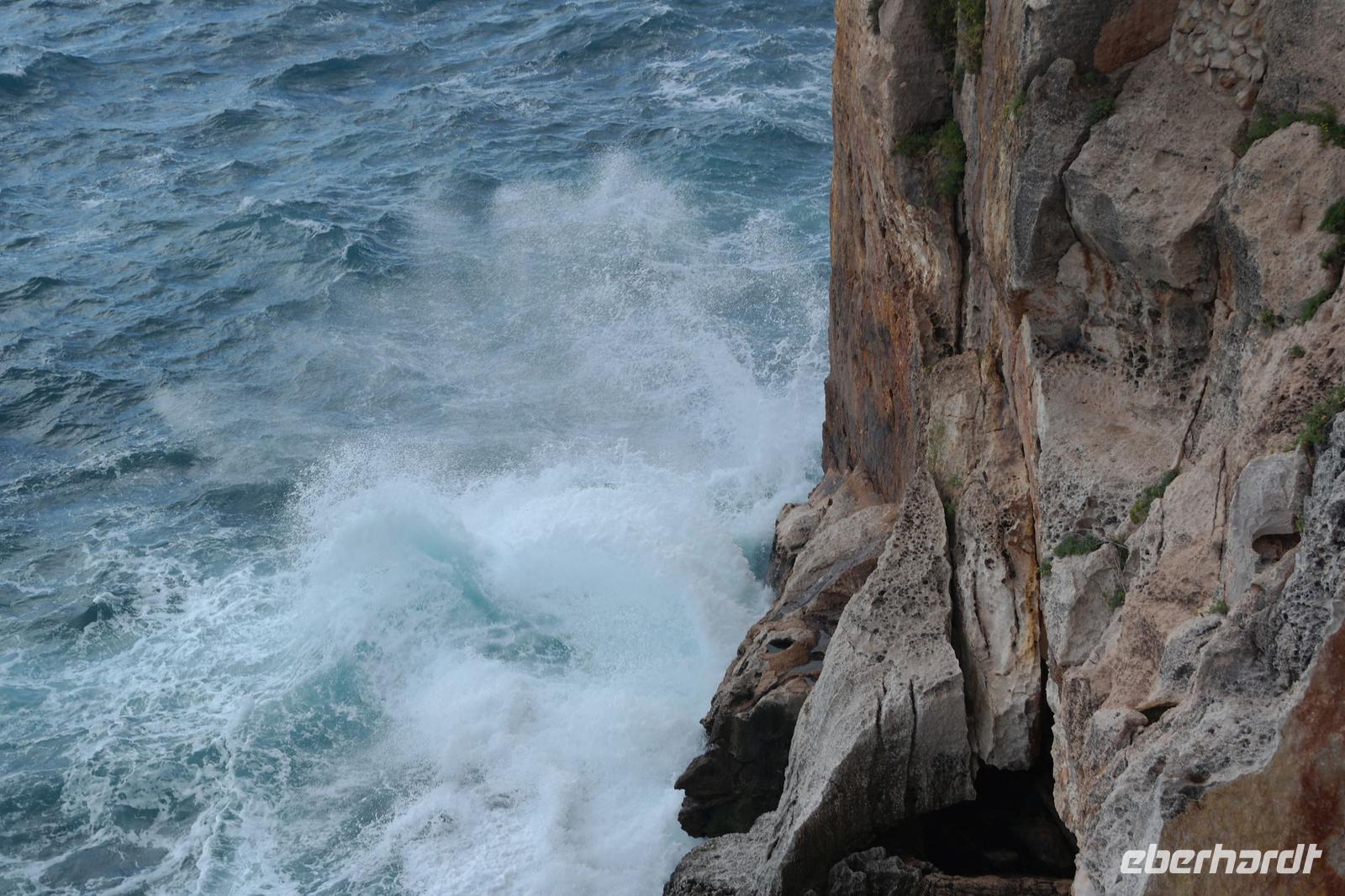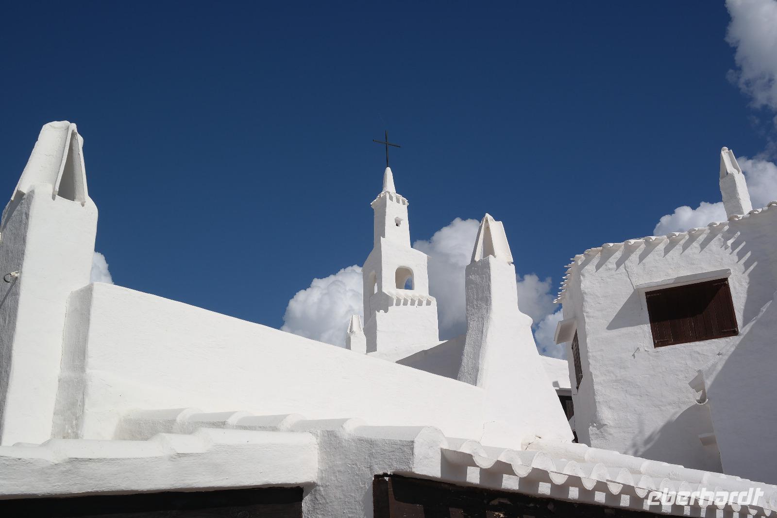 Die Wanderschuhe dürfen heute auslüften - wir nehmen den Bus. Es geht zum höchsten Berg der Insel - „El Toro" - zugleich wichtiger Wallfahrtsort (Kloster Santa Maria) - von hier können wir die kleine Insel in alle Himmelsrichtungen überblicken und in der kleinen Kirche unsere Wünsche und Gebete zurücklassen. Danach geht es in die Hauptstadt Mahon (katalan.: Mao) - berühmt für den größten Naturhafen Europas, thront die Stadt auf einem Felsplateau über der 5 km langen Bucht, die eine ganze Flotte beherbergen kann. Wir schlendern über die Plazzas, durch enge Gassen und genießen um die Mittagszeit ein Orgelkonzert in der Kirche der Heiligen Maria. Von Plakaten erfahren wir, dass selbst auf Menorca das „Oktoberfest" gefeiert wird - kein Wunder also, wenn auf der Wies'n die Leute ausbleiben. Wir fahren weiter über Sant Lluis, sehen den Leuchtturm auf der „Luftinsel" und drehen ab in Richtung Südwest in das kleine Fischerörtchen Binibèquer. Die kleinen Häuser - komplett weiß angestrichen (auch Dächer, Kamine und Antennen sind weiß) bilden mit den engen Gäßchen ein einzigartiges Labyrinth - wir finden trotzdem den Weg in eine kleine Bar und lassen uns Eiscafè und Anderes schmecken. Unsere letzte Station für heute sind die Naturhöhlen von Xoroi. Diese Höhlen sind nur vom Meer aus zu sehen - in den Felsen wurde eine Treppe eingebaut und von hier bietet sich uns ein spektakulärer Blick auf die tosende Brandung. In den Höhlen finden sich heute kleine Bars - wir können uns gut vorstellen, dass hier das Nachtleben pulsiert - deshalb sind wir am Nachmittag gekommen .