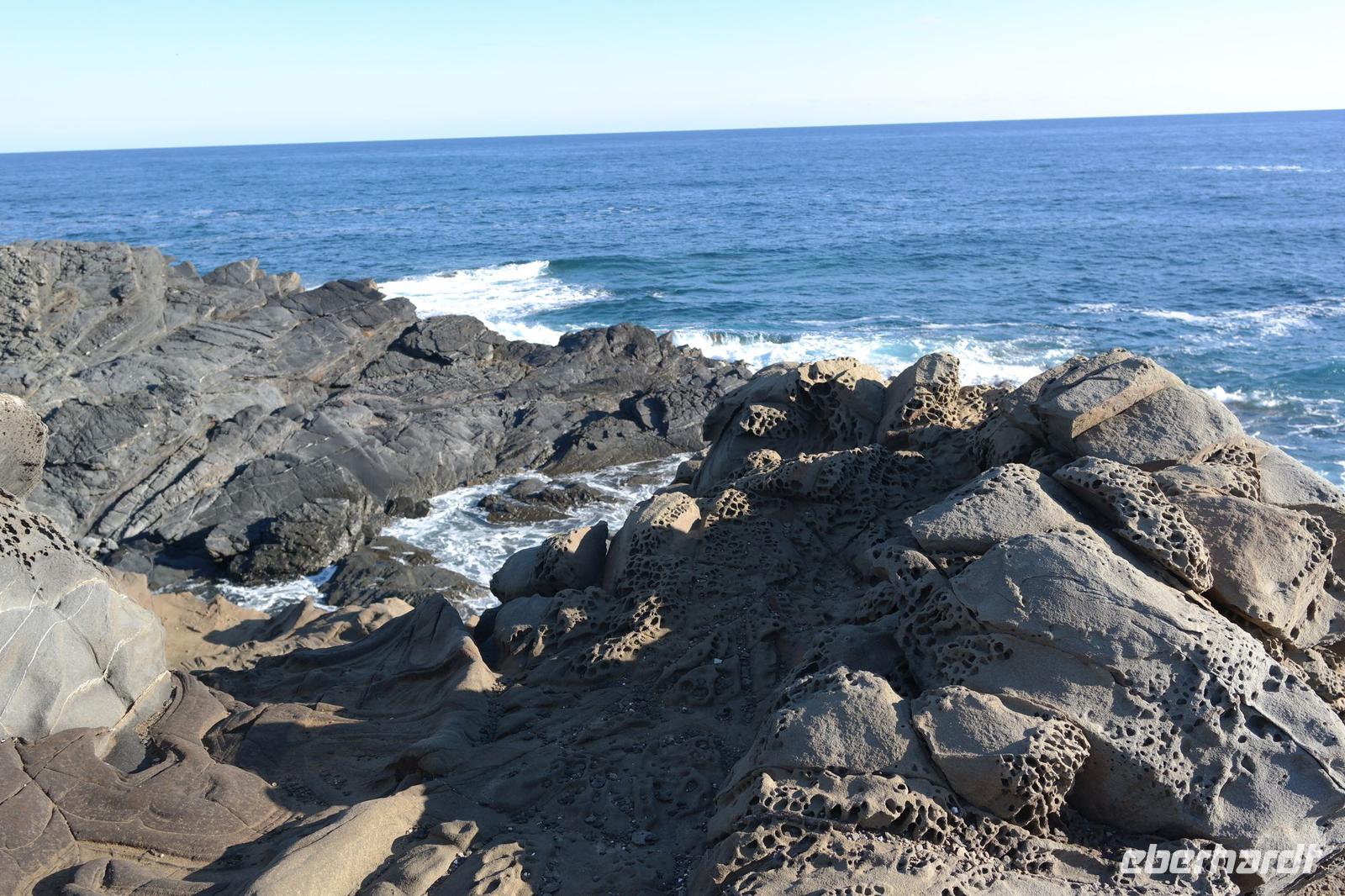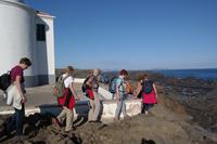 Ausgangspunkt unserer heutigen Wanderung ist „das Ende der Welt" - zumindest zwängt sich dieser Vergleich auf. Ohne jegliche Vegetation glänzt schwarzes Gestein in der Sonne - das Nordost-Kap ist der wohl raueste Ort der Insel. Doch nach ein paar Kilometer landeinwärts wird es uns richtig warm - die Sonne scheint erbarmungslos und wir suchen für die Pause ein schattiges Wäldchen auf. Im Vogelschutzgebiet des Naturparks S'Albufera in Es Grau angekommen halten wir Ausschau nach den Zugvögeln, die hier unzählig Rast machen sollen - wir sind wohl am verkehrten Tag da, außer ein paar Enten ist keiner dort . Wir beschließen unsere Reise mit einer letzten Rast. Auf den Geschmack von Eiscafè gekommen, wird Kaffee schwarz mit Eiswürfeln oder Eis am Stiel angeboten - bis Es Grau hat sich diese Spezialität dann wohl doch noch nicht rum gesprochen .