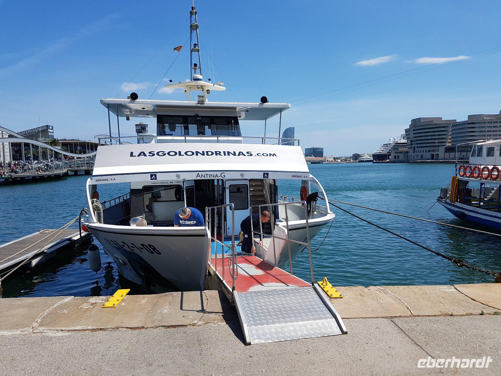 Am Nachmittag dann ein Schiffsausflug; wir bestaunen die katalanische Hauptstadt vom Wasser aus. Bei herrlichstem Wetter sitzen wir auf Deck.