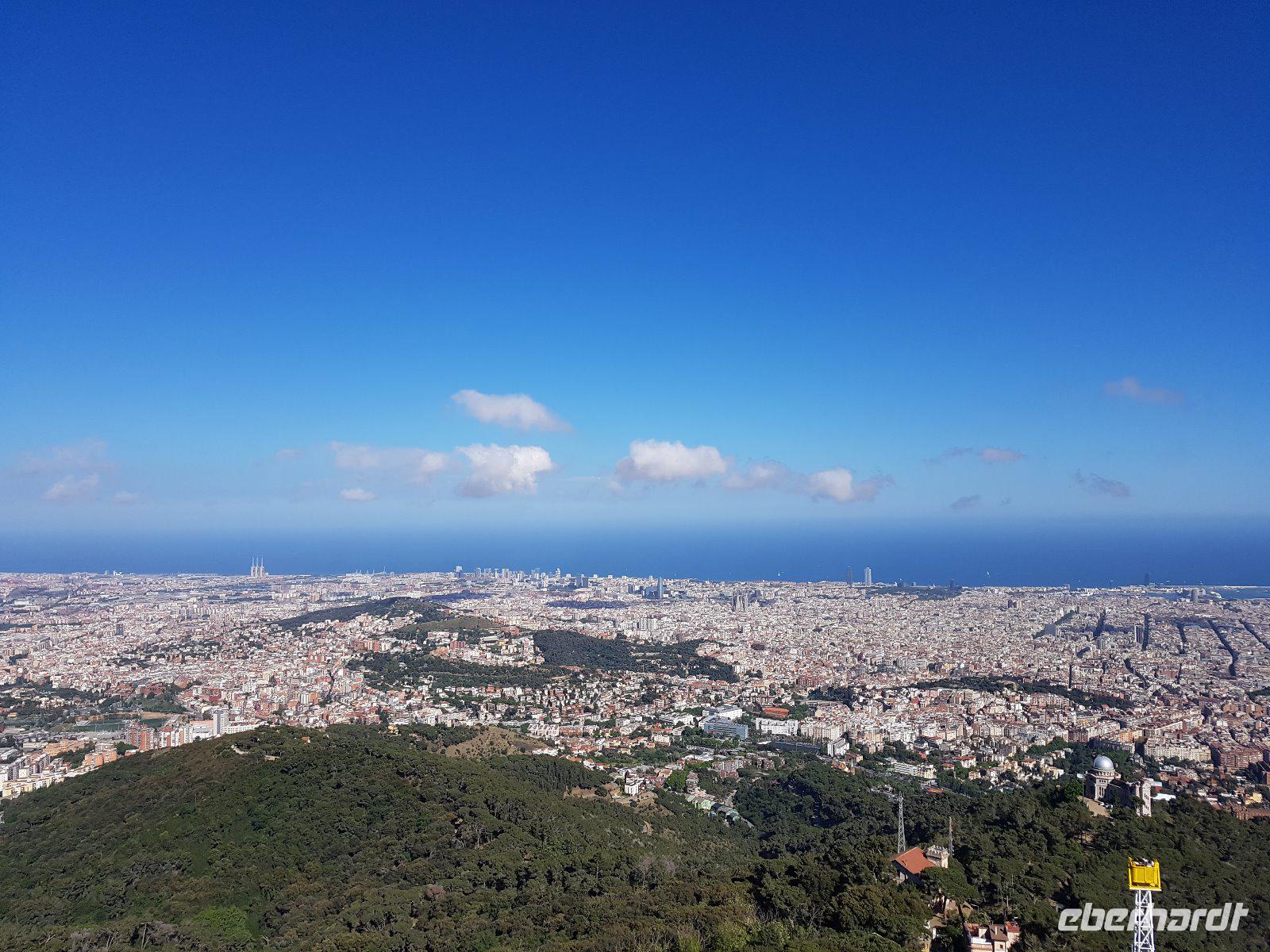 Den Nachmittag verbringen wir dann auf dem Tibidabo; dem neben dem Montjuic zweiten Hausberg Barcelonas. Allein die Auffahrt ist schon ein Erlebnis, wird aber noch vom Blick der Aussichtsterrasse der Kirche Sagrat Cor getoppt; in die eine Richtung liegt uns ganz Barcelona zu Füßen, in die andere schweift der Blick weit nach Norden Richtung Pyrenäen.
