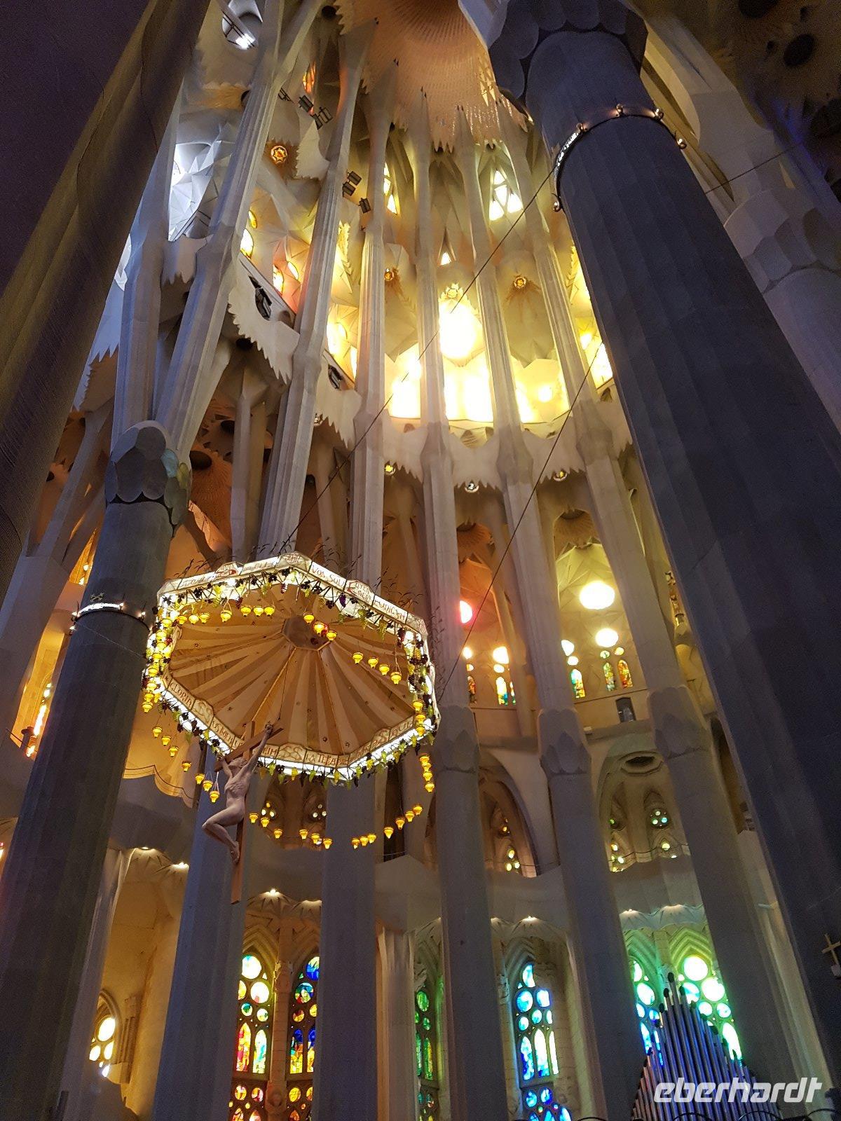 Bereits von außen sind die komplexen Verzierungen und dekorativen Elemente erkennbar. Auch im Inneren des Kirchenhauses geraden wir ins Staunen. Überall hat Gaudi etwas Spezielles hinterlassen und besonders der Altar hebt sich von allem anderen ab, was wir bisher im Kirchenbau gesehen haben.