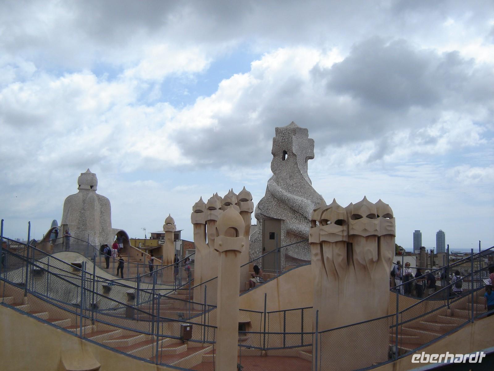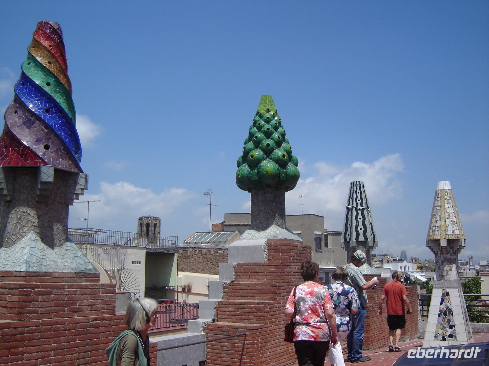 Der heutige Tag ist ganz dem Jugendstil, auf Spanisch Modernisme, gewidmet. Erster Stopp war das Hospital de la Santa Creu i Santa Pau (UNESCO-Kulturwelterbe). Das Krankenhaus wurde vom berühmten Jugendstilarchitekten Lluis Domènech i Montaner entworfen. Die gesamte Anlage besteht aus 18 Häusern, die unter anderem durch unterirdische Gänge miteinander verbunden sind. Es wirkte wie eine kleine Stadt inmitten einer großen Stadt. Diese wundervolle, idyllische Umgebung trug sicher seinen Teil zu einer schnellen Genesung bei. Der nächste Höhepunkt war Casa Milà, erbaut von Antonio Gaudí. Das Haus wird auch „La Pedrera“ (Steinbruchhaus) bezeichnet und liegt auf der edlen Passeig de Gracia, der Goldmeile von Barcelona. Den Beinamen Steinbruchhaus bekam Casa Milà wegen der ungewöhnlichen Bauweise und der steinernen Fassade, welches das Haus zu einem massiven Felsen mit weichen Wellen und Formen wirken lässt. Beeindruckend sind die Belüftungsanlagen, die eine Klimaanlage überflüssig machen und die verschiebbaren Innenwände, was durch eine Beton-Stahl-Konstruktion ermöglicht wurde, die ohne tragende Wände auskommt. Nicht minder beeindruckt waren wir vom Parc Güell mit den von bunter Bruchkeramik geschmückten Bänken, Wänden, Dächern und Figuren. Gaudís ehemaliges Wohnhaus auf dem Parkgelände wurde seit 1963 als Museum eröffnet. Am Nachmittag besichtigten wir das größte Projekt des großartigen Architekten und berühmteste Wahrzeichen von Barcelona, die Sagrada Familia. Der Bau der Basilika begann bereits im Jahre 1882 und bis zu seinem Tod im Jahre 1926 hatte Gaudí eine aktive Rolle bei den Konstruktionsarbeiten gespielt. Eine Vollendung des Bauwerks durch zeitgenössische Architekten ist eine besondere Herausforderung, weil jegliche Pläne dazu fehlen und da die tragenden Steine nach den Modellen Gauís alle eine unregelmäßige Form besitzen. Für die Fertigstellung der Sagrada Familia wird der 100. Todestag von Antonio Gaudí im Jahre 2026 angestrebt. Für diejenigen, die immernoch nicht genug von spanischer Kunst und Architektur hatten, bot ich das Poble Espanyol an. Das kleine „Spanische Dorf“ ist ein Freilichtmuseum, welches verschiedene Nachbildungen charakteristischer Häuser aus allen Regionen Spaniens darstellt.