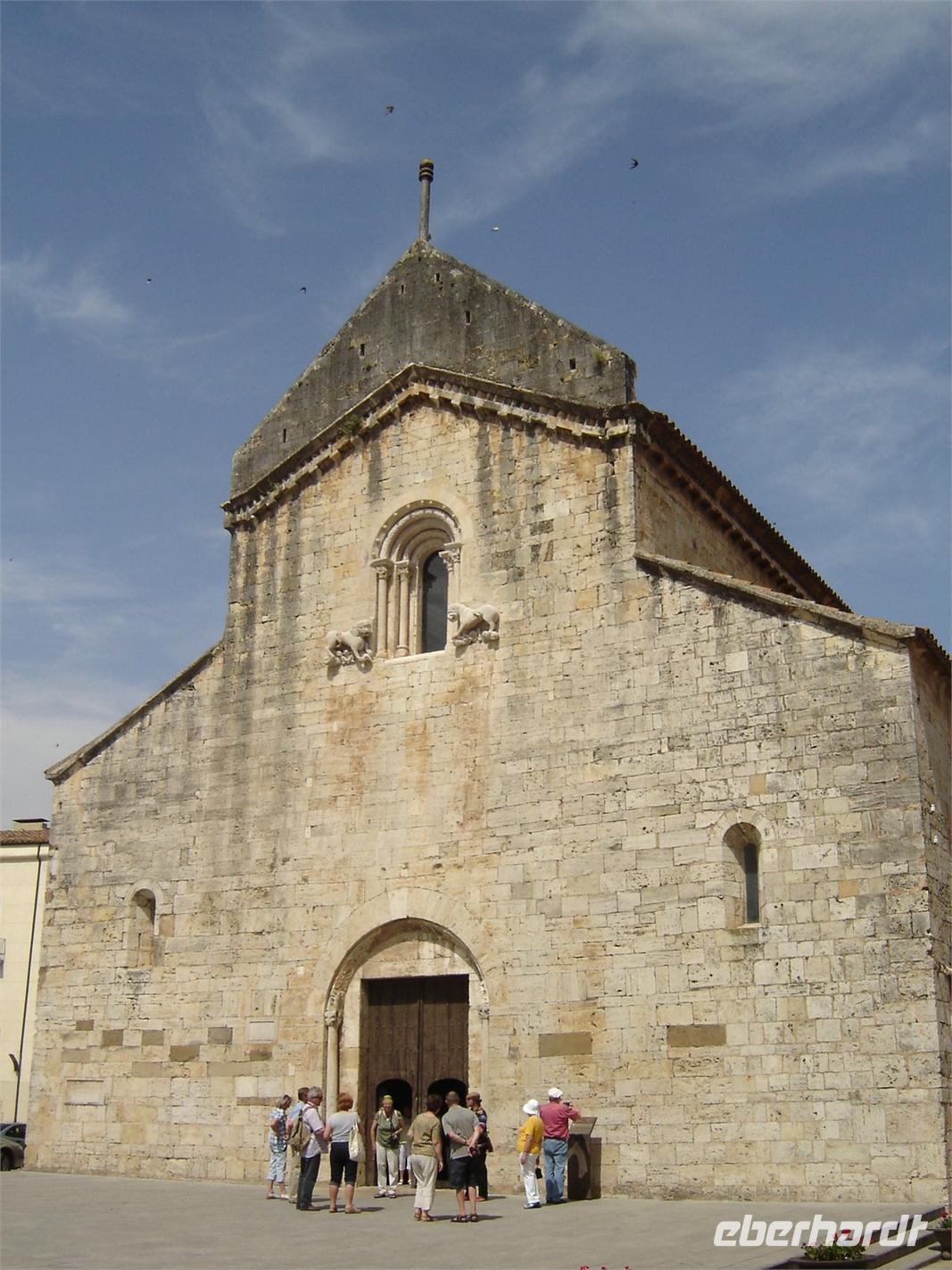 Wo am vorherigen Tag noch eine klare Sicht auf das katalanische Hinterland zu sehen war, war am nächsten Morgen bereits mit dichtem Nebel verdeckt. Doch der Nebelschleier hielt uns nicht auf, das wichtige Heiligtum der Benediktiner auf dem „heiligen Berg“ Montserrat. Beeindruckend ist die Kulisse, in welche die Gemäuer hineingebaut wurden. Bereits 888 n. Chr. Wurde der Bau eines Klosters urkundlich erwähnt. Einsiedlermönche errichteten die verschiedensten Einsiedeleien auf dem Montserrat. Das heutige Kloster wurde dann durch die Erweiterung der Einsiedelei Santa Maria 1025 gegründet. Aufgrund des umfassenden Programmes hat sich die Gruppe entschlossen, Rupit und die kleine Stadt Vic nicht zu besichtigen, sondern dafür mehr Zeit in Girona und Besalú im Norden Kataloniens zu verbringen. In der romantischen Stadt Girona am Fluss Rio Onyar spazierten wir durch die beschaulich schöne Altstadt. Die Kathedrale Santa Maria de Girona gehört zu den schönsten Kathedralen Spaniens. Der Kreuzgang ist von 30 Kapellen umgeben, welche heute noch viele Kostbarkeiten präsentieren. Gemütlich schlenderten wir in unserer Freizeit durch die schmalen Gassen und genossen die angenehme Ruhe. Anschließend ging es weiter nach Besalú, ein hübsches mittelalterliches Städtchen am Fuße der spanischen Pyrenäen. Der Eingang nach Besalú bildet das Wahrzeichen der Stadt, die nur für Fußgänger begehbare mittelalterliche Brücke über den Fluss Fluvia. Diese Brücke wurde einst im spanischen Bürgerkrieg zerstört, aber danach wieder errichtet. Besalú war ein wichtiger Ort der Juden. Bis zum Zeitpunkt ihrer Vertreibung im Jahre 1492 lag der jüdische Bevölkerungsanteil Besalu bei ca. 20% der Gesamtbevölkerung. Die heute noch zu besichtigenden jüdischen Bäder Miqwe und die Überreste der Synagoge sind Zeugen dieser Zeit. Die Miqwe ist eins von nur zehn noch erhaltenen jüdischen Bädern Europas und das einzige Spaniens. Da die Bäder unterirdisch liegen, wurden Sie erste 1964 zufällig wiederentdeckt.