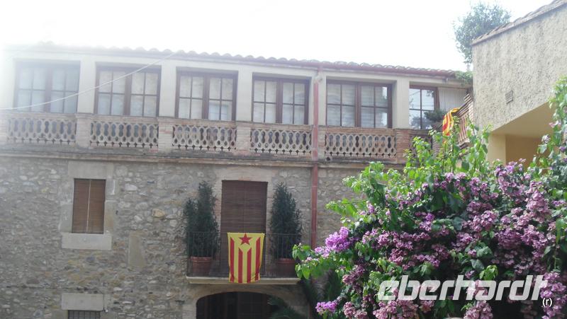 Um 7:30 Uhr ist im Kloster Montserrat die Messe, die einige Gäste auch gerne besuchten. Nach einem ausgiebigen Frühstück führte uns Stephanie durch das Kloster und über das Gelände und es war beeindruckend den Bau und die Umgebung bei Sonnenschein genießen zu dürfen. Das Kloster ,das einst von Einsiedlermönchen errichteten wurde, liegt ebenfalls auf dem Jakobsweg und ist mit der Muschel gekennzeichnet. Nach einem Abschlusskaffee im Café des Klosters holten wir noch unser Handgepäck und liefen durch den Markt zum Bus. Nun ging es weiter nach Vic. Zunächst hielten wir am Fuße des Klosters noch für einen letzten Blick zurück auf das Kloster und einem Fotostopp, wie es dort auf dem Berg oben thront. In Vic, der Hauptstadt der Comarca Osona in der Provinz Barcelona in Katalonien ist der Sitz des römisch-katholischen Bistums Vic und der Universität Vic. Wir liefen über den sandigen Stadt-Stadt-Hauptplatz und konnten an den vielen katalonischen Fahnen deren Nationalstolz erkennen. Nach einem Mittagessen und Spaziergang durch die pittoresken Gassen ging es weiter zu einem der malerischsten Dörfer der Pyrenäen, dem Felsendorf Rupit.