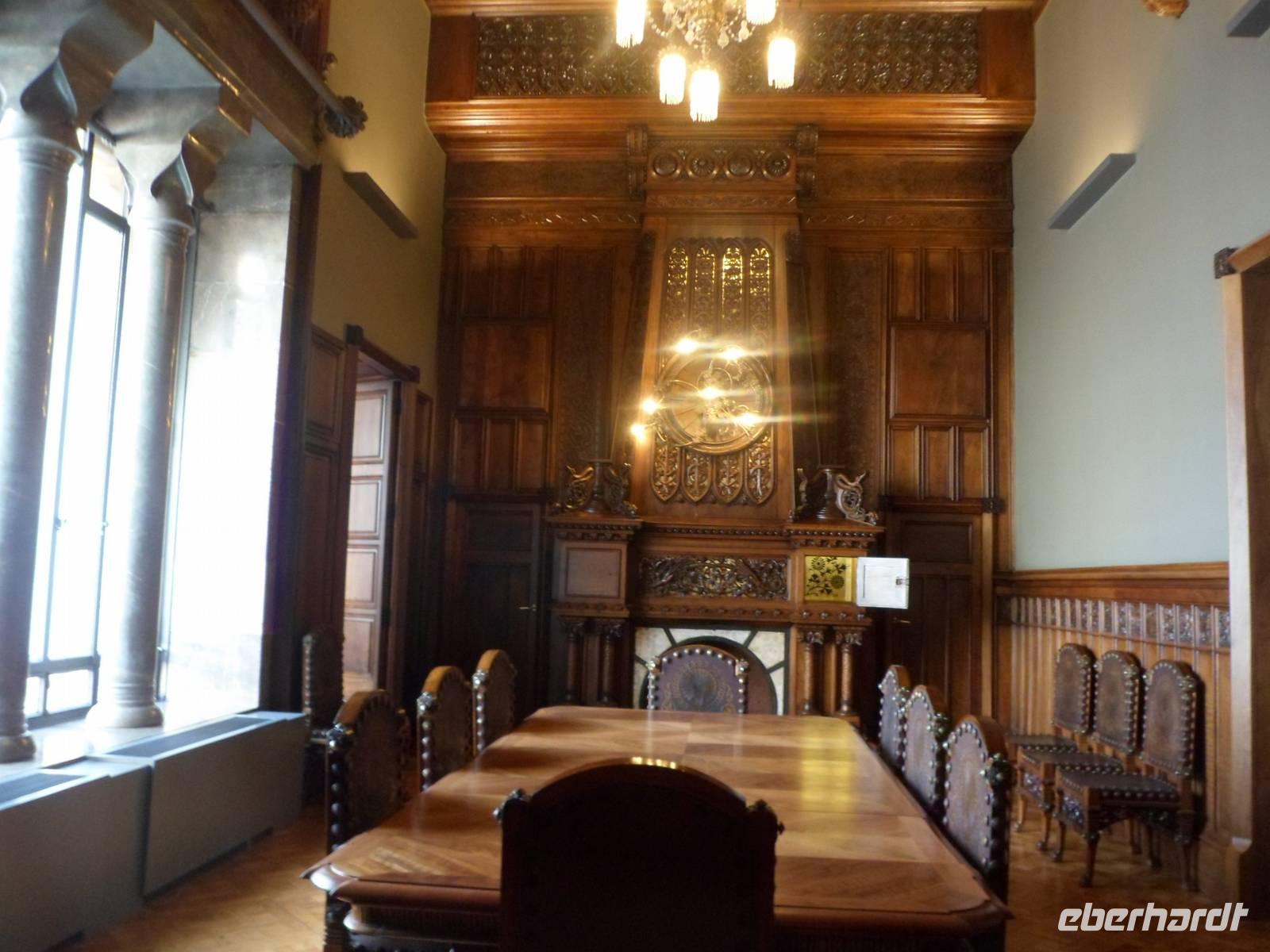 Weiter ging es, verbunden mit einem 10 minütigen Spaziergang auf der La Rambla, zum Haus der Familie Güel - Palau Güel, Gaudis erster Großbau in der Stadtmitte. Es diente nicht nur als Wohnhaus, sondern auch zu Repräsentationszwecken. Hier fanden zahlreiche Empfänge, politische Treffen und Kammerkonzerte statt. 1889 wude es fertiggestellt. Imposant!