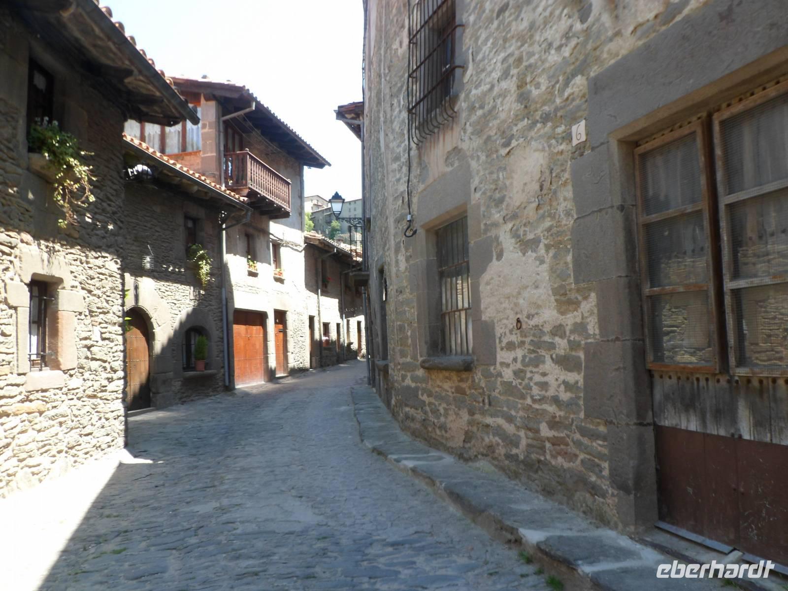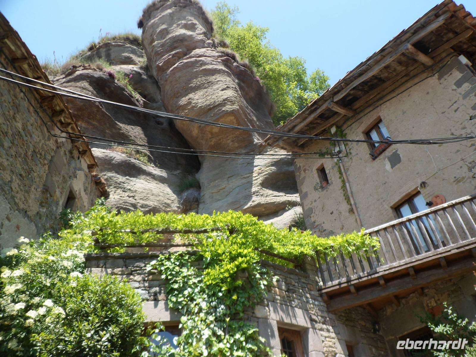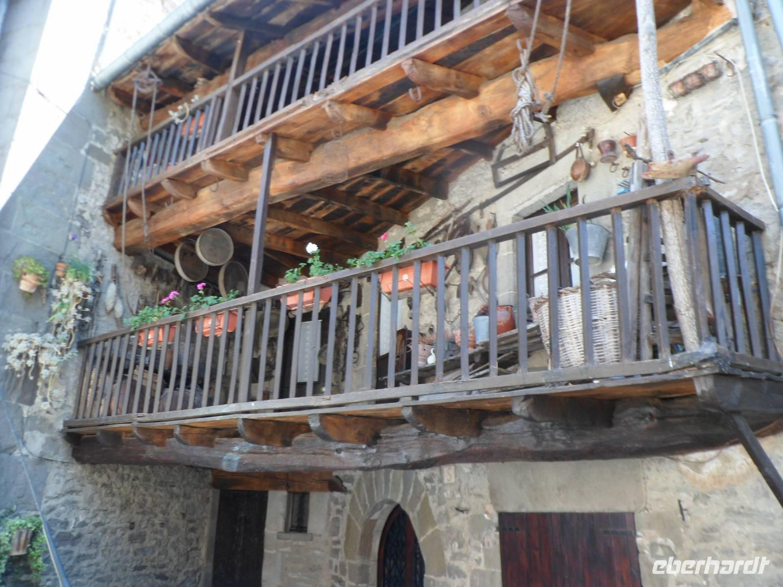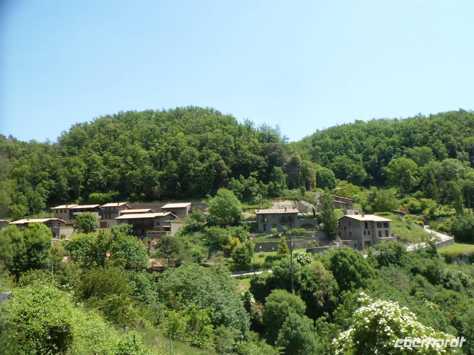 Vorbei an großen Feldern und Wäldern, blühenden Wiesen und die Pyränäen in der Ferne kamen wir 12.45 Uhr im Kleinen Ort Rupit an. Mit viel Spaß über die Hängebrücke erreichten wir das Örtchen mit den kleinen Steinhäusern in 1000m Höhe. Sehr beeindruckend und still liegt es inmitten einer Felsenlandschaft und ist heute ein Künstlerdorf. Es gibt eine Grundschule, eine Post, Kunstlädchen, Lebenmittelmarkt mit Fleischer und Bäcker und überall liebevoll dekorierte Fenster und Mauern. Einfach ein Ort zum verweilen und träumen, aber auch ein wunderschönes Wandergebiet. Etwa 14.00 Uhr fuhren wir über den Aussichtspunkt mit der kleinen Kapelle "Maria del Far", wo man von 1200m Höhe Girona, das Meer, die Berge der Pyränäen, zwei große Stauseen und eine traumhafte Landschaft sehen kann.