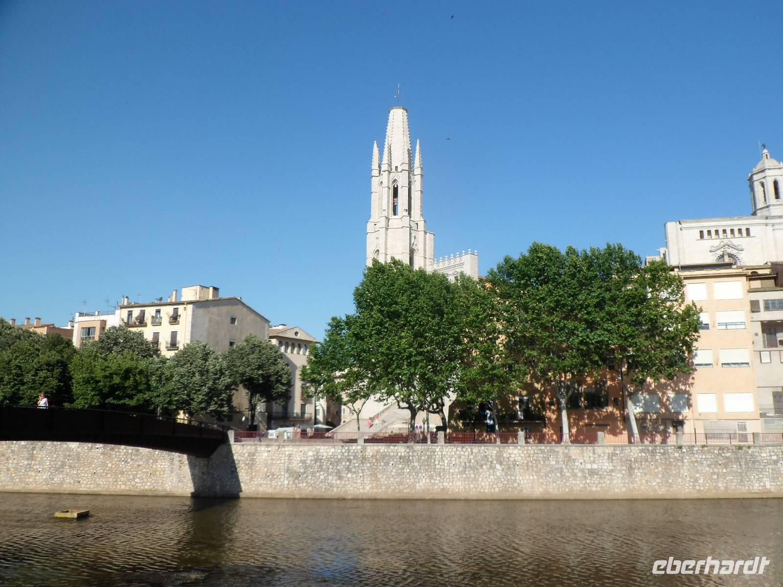 Nach kurzer Rast kamen wir in Besalu an. Inzwischen hatten wir 29° C und die ehemaligen jüdischen Bäder im Fluß Riu Fluvia lockten sehr. Das mittelalterliche Städtchen mit seinen Steinhäusern, der "Sieben Augenbrücke" und den beiden romanischen Kirchen ist bezaubernd. Aber wir wollten noch nach Girona und hatten leider etwas Zeitdruck.