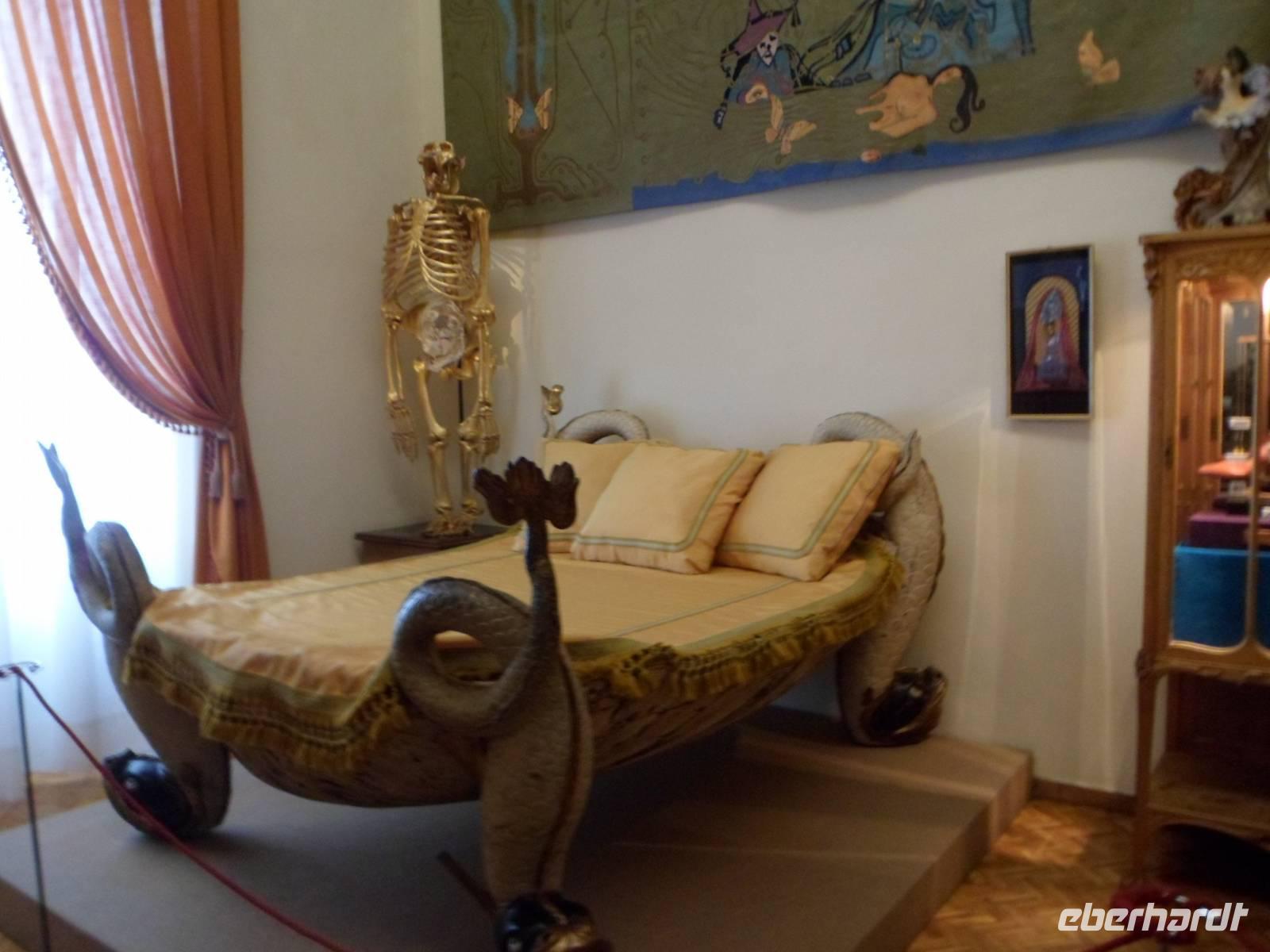 Der nächste Höhepunkt ist das Gala Museum in Pubol. Die Ehefrau von Dali hatte sich schon lange ein eigenes Haus gewünscht, aber erst 10 Jahre vor ihrem Tod schenkte ihr ihr Mann ein wunderschönes altes Castel aus dem 11.Jh.in Pubol. Als Refugium und Ort der Erholung war es ausgerichtet, wurde aber im Laufe der Zeit von 1982 - 1984 zum letzten Alelier von Dali und zum Mausoleum für seine Muse. Es ist überaus interresant, die Briefe, die Fotoalben, die Einrichtung, die Kleidung, der Garten und die vielen Wagnerköpfe am Brunnen, dessen Musik Gala sehr verehrte.