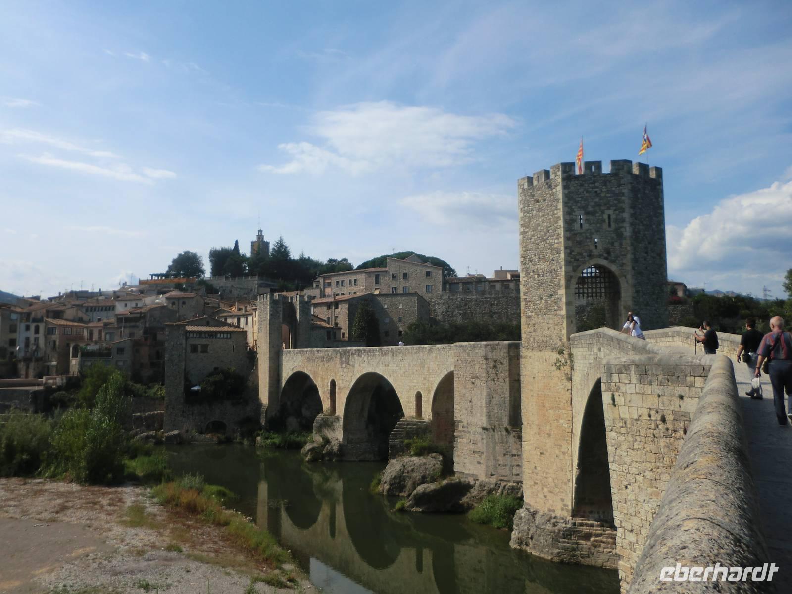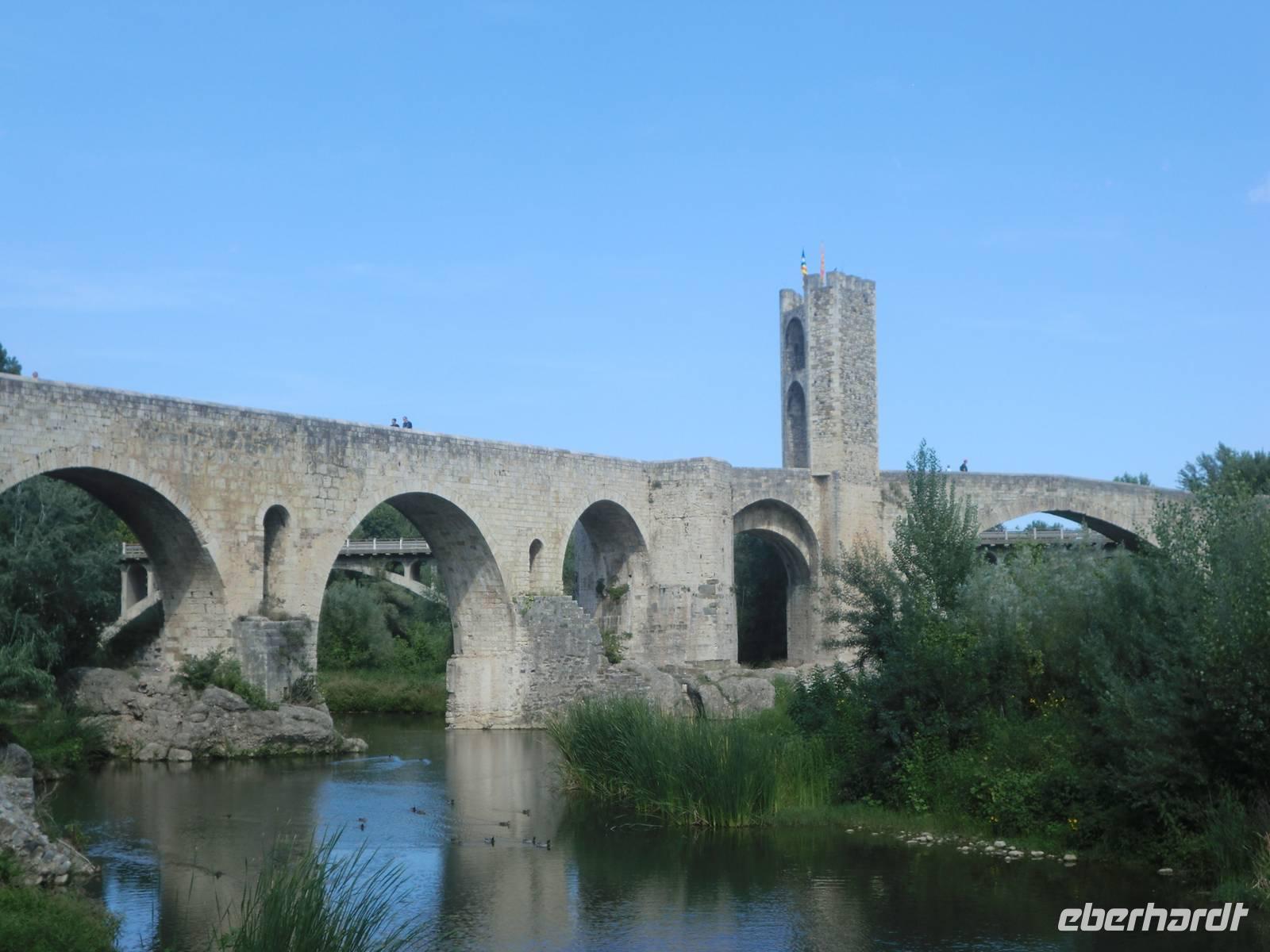 Montserrat bedeutet "zersägter Berg" und ist ein wirklich passender Name für dieses zerklüftete Bergmassiv. Auf fast 700 m liegt das Benediktiner - Kloster das damals wie heute eines der wichtigsten Wallfahrtsorte Spaniens darstellt. In der romanischen Basilika befindet sich die Madonnen-Statue der Santa Imatge. Aufgrund ihres über die Jahrhunderte dunkler gewordenen Gesichts und ihrer dunklen Hände wird sie von den Katalanen auch „la Moreneta", oder die schwarze Madonna genannt. Die meisten von uns nutzen den herrlichen kühlen und sonnigen Morgen um das Kloster leer von Touristen und ungestört zu erkunden und auf dem Kreuzweg zu einem Aussichtspunkt über dem Tal zu wandern. Was für eine wunderbare Art, den Tag zu beginnen! Am späten Vormittag machen wir uns auf den Weg und fahren zunächst nach Rupit, einem zauberhaften Bergdorf. Jedes der grauen Natursteinhäuser ist mit Blumen und der gelb-roten katalanischen Fahne geschmückt. Während einige eine kurze Wanderung entlang des Flusses unternehmen genießen andere ein kleines Mittagessen in der Sonne am Dorfplatz - mit Tapas und Wein natürlich! Weiter geht es durch herrliche Natur und auf kleinen Straßen zum mittelalterlichen Städtchen Besalu mit der Steinbrücke aus dem 11. Jahrhundert. Ein perfektes Motiv für ein Gruppenfoto! Nachmittags erkunden wir ausserdem noch den Ort Girona, am Fluß Onyar. Kanäle durchziehen die größte Stadt der gleichnamigen Provinz und eine Brücke ist sogar vom Erbauer des Eiffelturms, Gustav Eiffel gebaut. Das Wahrzeichen der charmanten Stadt ist ein Löwe aus Stein an einem Laternenmast - wer hinaufklettert und das Hinterteil des Löwen küßt wird immer wieder nach Girona zurückkehren, so heißt es. Simone lässt sich das natürlich nicht zweimal sagen und klettert sehr zur Freude der Gruppe nach oben. Auf Wiedersehen in Girona! Nach einem Tag voller Eindrücke kommen wir am Abend endlich am Strand an und beziehen unser Hotel Coral Platja direkt an der Strandpromenade von Roses. Die meisten unternehmen noch einen kleinen Abendspaziergang um zum ersten Mal die Zehen ins Meer zu stecken.