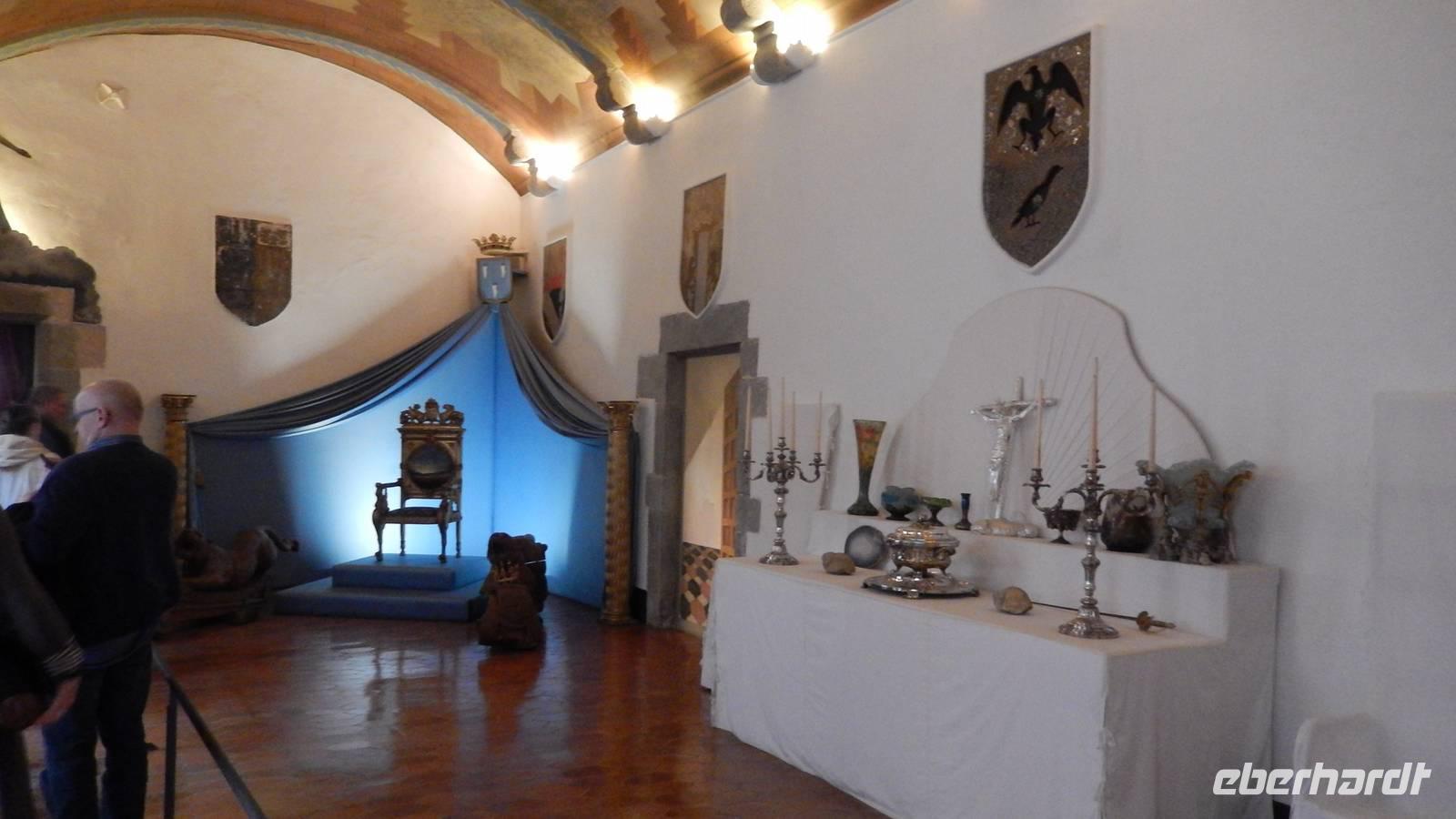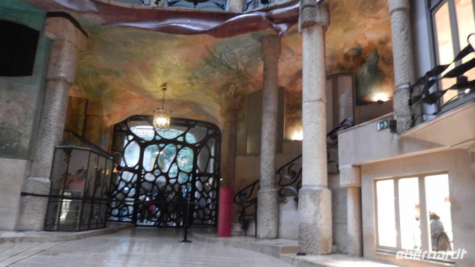 Heute können wir schon frühzeitig, nämlich ab 7 Uhr unser Frühstück genießen. Nach dem ausgiebigen, leckeren Frühstück treffen wir uns 9 Uhr in der Lobby und fahren mit der Metro in die Innenstadt. Lorenzo begleitet uns selbstverständlich. Gemeinsam erkunden wir heute - ohne Bus - und (fast) nur zu Fuß, wenn man die Metro weglässt, Barcelona zu Fuß. An das feste Schuhwerk und die Regenkleidung haben alle gedacht, was sich als hilfreich beweist, da heute der einzige Regentag unserer Reise ist - wie sich gegen Mittag herausstellen wird. Um 10 Uhr besichtigen wir das Paleau de la Musica, den Musikpalast, eine Wirkungsstätte vieler berühmter Musiker, wie beispielsweise Schubert. Zur Einstimmung auf die Besichtigung sehen wir einen liebevoll gedrehten Film mit der Geschichte des Paleau und besichtigen anschließend die beeindruckende Konzerthalle mit großer Bestuhlung und glitzerndem Schmuck an der Decke. Nicht nur ich bin beeindruckt.