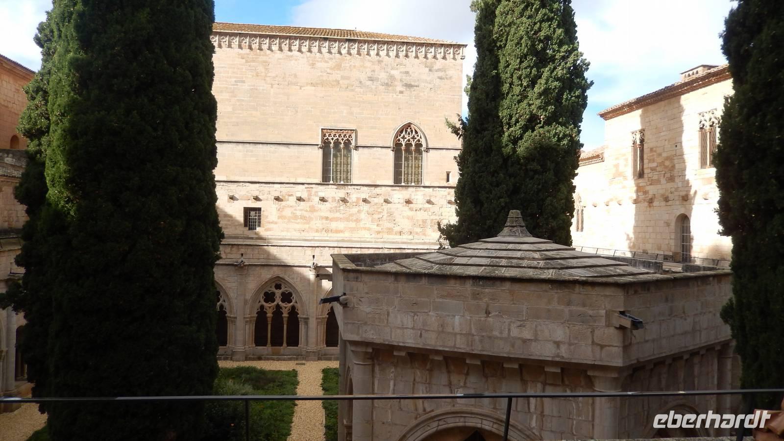 Heute dürfen wir zum letzten Mal das reichhaltige Frühstück des Hotels genießen. Halb 9 checken wir aus und fahren zum Kloster nach Poblet, das wir besichtigen. Das Kloster empfängt uns mit tollem Sonnenschein und einer schönen Magnolie, die wir bestaunen. Der Innenhof und die Kirche sowie die Schlafräume der Mönche, die Bibliothek und vieles mehr besichtigen wir und staunen. Um 13 Uhr kommen wir in Tarragona an und gehen zur Aussichtsterrasse am Meer. Hier haben wir Zeit zum Shoppen, Mittagessen, zur Besichtigung der Stadt oder einer ihrer Sehenswürdigkeiten, wie den alten Circus. Eine Stunde später treffen wir uns am Bus und fahren zur Kellerei Codorniu , die wir zu Fuß und mit einer kleinen Bahn erkunden. Wir erfahren viel über die Geschichte des Weingutes und verkosten unterirdisch gemeinsam den Rosé und den weißen, edlen Sekt. Außerdem machen wir eine „Riechprobe" - das Aroma der Weine ist fruchtig und macht Lust auf mehr. Danach haben wir Zeit, uns selbst einen dieser kostbaren Tropfen zu kaufen und fahren nach Montserrat, der Wahlfahrtstätte, um unser zweites Hotel, Abat Cisneros, hoch am Berg gelegen, zu beziehen. Die Straße führt über viele Serpentinen nach oben. In der Dämmerung besichtigen wir das Kloster und die Stadt. Vor dem Abendessen und Check-In im Hotel gehen wir in die eindrucksvolle Kirche des Ortes und sehen die schwarze Madonna. Beim Gottesdienst gegen 19 Uhr und dem Gesang des Knabenchors sind wir alle berührt und dankbar für die vielen schönen Erlebnisse, die wir bis jetzt schon erleben durften. Am Abend fallen wir müde in unser Bett in den Bergen.