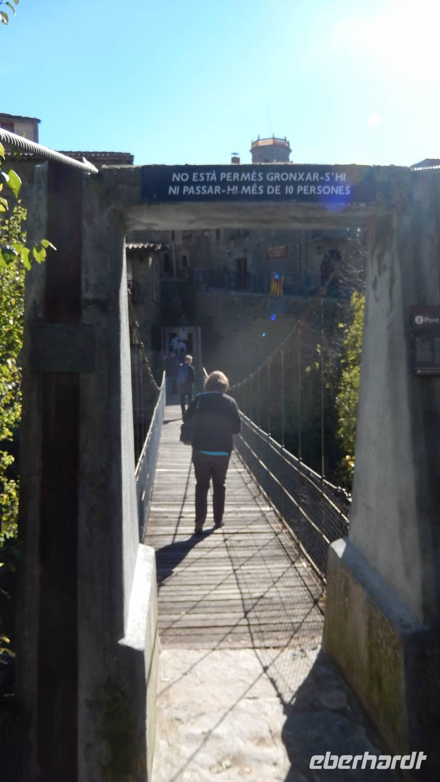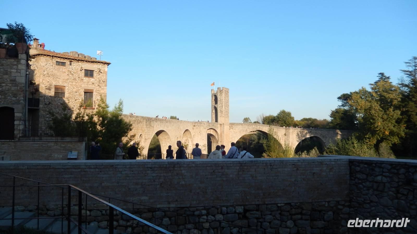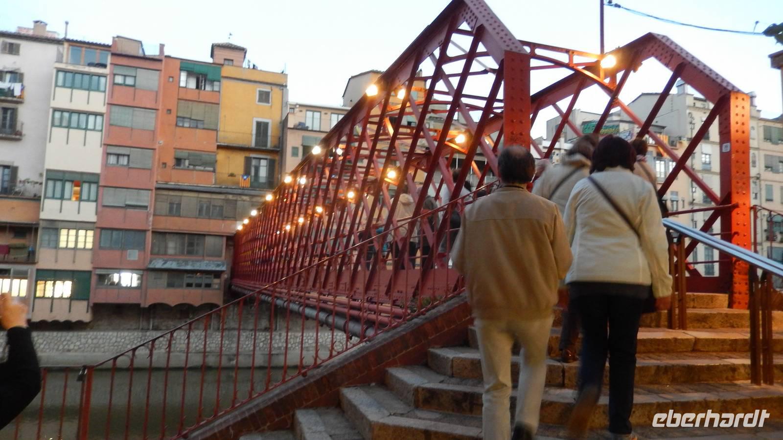 Schon ist der Mittwoch angebrochen und wir erwachen mit einer traumhaften Sicht auf die Berge. Ich werde vom Morgenrot geweckt und springe förmlich aus dem Bett, denn heute möchte ich vor der Abfahrt um 11 Uhr noch viel erleben. Beim Frühstück treffe ich meine Gäste und wir verabreden uns zum Aufstieg zum Kreuz, von dem uns Lorenzo erzählt hat - eines der Top-Ofs oder Must See´s - auf jeden Fall sehenswert! Gemeinsam laufen wir den Weg entlang der Berge hoch zum Kreuz und der Blick ist unglaublich. Für mich das absolute Highlight der Reise - obwohl man das eigentlich gar nicht sagen kann, denn die Reise bestand eigentlich nur aus Highlights. Gegen Mittag treffen wir in Rupit ein und laufen über eine Hängebrücke, die sehr schaukelt... oder geschaukelt wurde... !?! Wir besichtigen die Stadt, mit ihrer kleinen Kirche, einige Häuser stehen auf altem Schiefer. Danach laufen wir über einen „Geheimweg" mit Lorenzo zurück zum Bus, der uns entlang eines Flusses und Wasserfalls durch das Grüne zurückführt. Gegen 14 Uhr fahren wir nach El Far, einem Aussichtspunkt hoch in den Bergen und essen zu Mittag. Ein weiteres Top-Of!!! Am Nachmittag fahren wir nach Besalu, wo wir den Marktplatz, die Vinzenzkirche und vieles mehr sehen. Nach dem Überqueren der alten, bekannten, romanischen Brücke, die unter anderem im Film „das Parfüm" vorkommt, laufen wir zu einem kleinen Laden, in dem wir Cassis-Schnaps, Käse und Schinken verkosten. Lecker! Gegen 18 Uhr besichtigen wir heute die Stadt Girona und deren Altstadt bei der Dämmerung und überqueren eine Brücke, von Gustave Eiffel erbaut, sehen die Kirche der Stadt und schlendern durch die Gassen. Gegen 19 Uhr brechen wir auf zur Costa Brava und unserem letzten Hotel der Reise, dem Hotel Marsol. An der Küste angekommen, beziehen wir das Hotel und genießen das Buffet zu Abend. Ein weiterer schöner Tag neigt sich zu Ende.