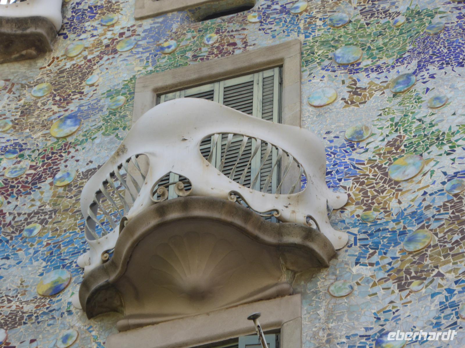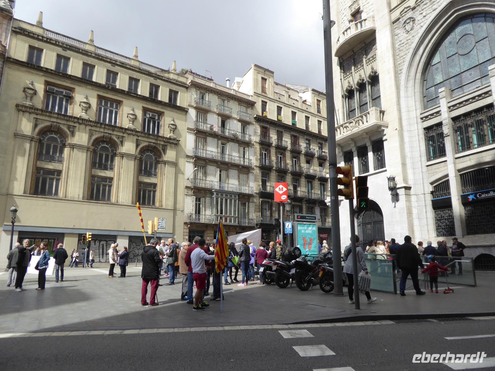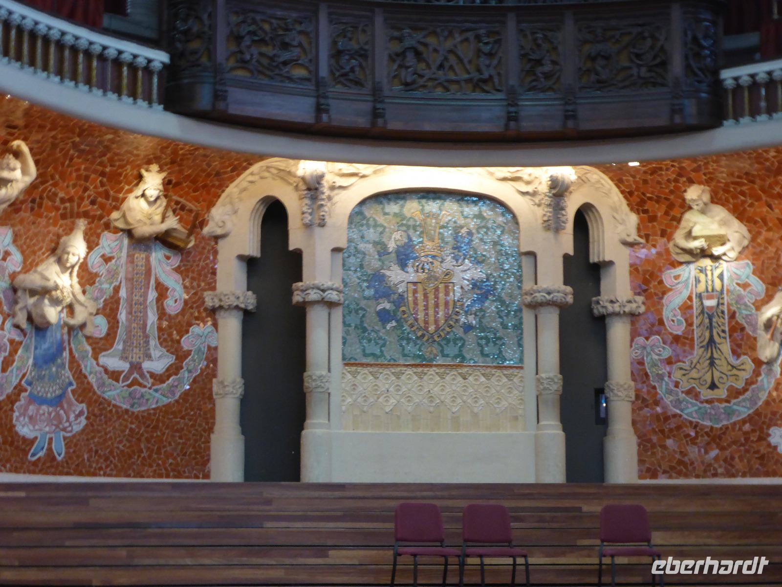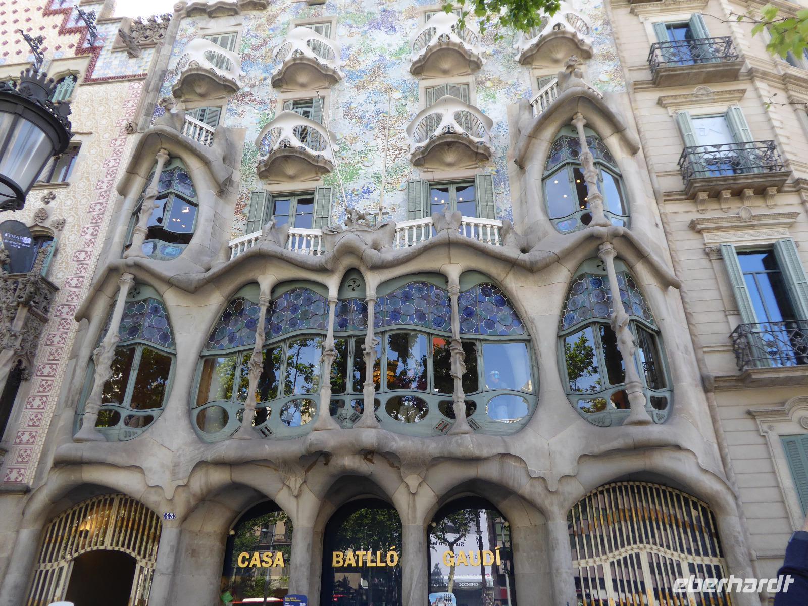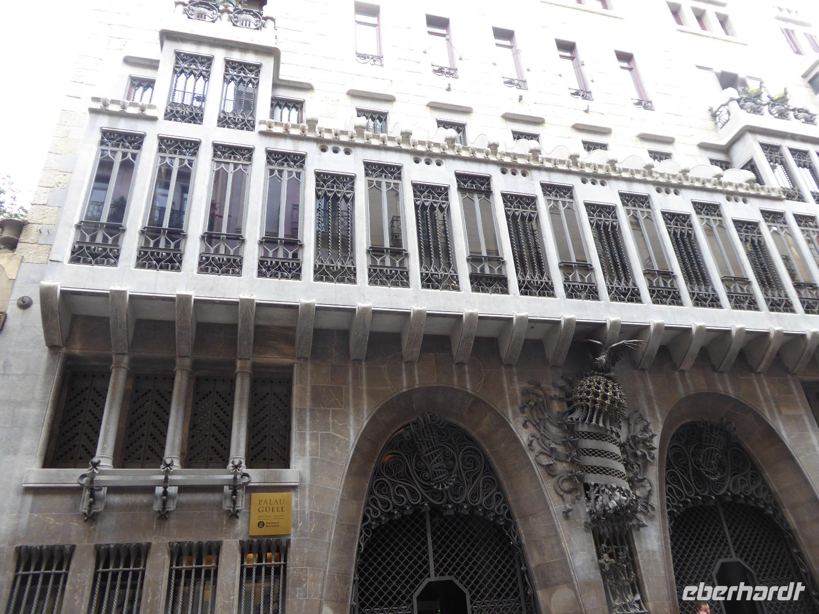 Nach einem ausgiebigen Frühstück treffen wir uns punkt Neun mit Lorenzo in der Lobby. Der Bus ist auch schon da und mit José , unserem Busfahrer, geht es heute kreuz und quer durch Barcelona. Zunächst fahren wir auf der längsten Straße der schachbrettangeordneten Stadt, der La Grande bis ins Zentrum. Auffällig sind die wunderschönen Fassaden der Häuser. Wir besuchen die Casa Mila. Die Wartezeit verkürzt uns unterhaltend eine Dame aus einer anderen Gruppe, die auf Krawall gebürstet ist und sich mit Carlos anlegt, weil sie meint, wir hätten uns vorgedrängelt. Da ist sie aber an den Richtigen geraten. Carlos lässt sich die Butter nicht vom Brot nehmen. Zu ihrer Beruhigung ist ihre Gruppe dann tatsächlich vor uns dran. Es dauert ein bisschen, aber bald schluckt auch uns dieses ungewöhnliche Haus. Wir bekommen Audioguides und fahren in kleinen Grüppchen mit dem Fahrstuhl auf die Terrasse. Was für eine grandiose Anlage. Die Bewohner hatten es hier wirklich gut. Nachdem wir die Aussicht nach allen Seiten genossen haben, geht es treppab durch das ganze Haus. Wir bewundern die Konstruktion des Dachbodens, schlendern an den Zimmern vorbei, deren Einrichtung so manche Erinnerung weckt. Obwohl wir so viel Zeit hatten, müssen wir uns jetzt doch sputen, denn wir haben bald den nächsten Termin. Um 11.30 Uhr werden wir im Musikpalast erwartet. Hier treffen wir auch auf die andere Eberhardt-Gruppe mit meinem lieben Kollegen Benjamin. Zunächst sehen wir einen Film über die Geschichte des Hauses, der zwar in Spanisch ist, aber durch die Bilder trotz Sprachunkenntnis, verstanden werden kann. Bei der Führung ist es dann etwas anders. Wir werden aufgefordert, einer spanisch sprechenden Führerin zu folgen, die unserem Lorenzo aber keine Chance lässt, für uns zu übersetzen. Wir beobachten die Auseinandersetzung der Beiden, aber diese Dame ist unerbittlich, sie hat für das Anliegen der deutschen Gäste kein Verständnis. Lorenzo tut was er kann und informiert uns trotzdem über das Geschehen im Musikpalast. Zu aller Überraschung bringt uns Benjamin ein Ständchen und erfreut damit nicht nur uns, sondern auch die Gäste der unnahbaren Reiseführerin. Anschließend genießen wir während der Mittagspause Tappas, Kaffee oder Bier je nach Bedarf. Eine ganze Stunde ist Zeit für Müßiggang. Nun fahren wir zum Park Güell. Wir haben so ein Glück, die Sonne scheint, der Himmel ist strahlend blau und die Fliesenscherben, die die Säulen schmücken, funkeln und glitzern. Wir spazieren durch die traumhafte Anlage und haben ausreichend Zeit, uns satt zu fotografieren. Auch unser Gruppenfoto entsteht hier.