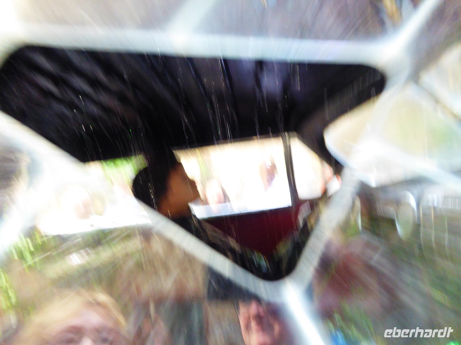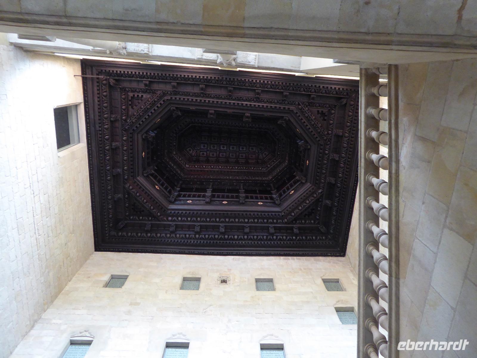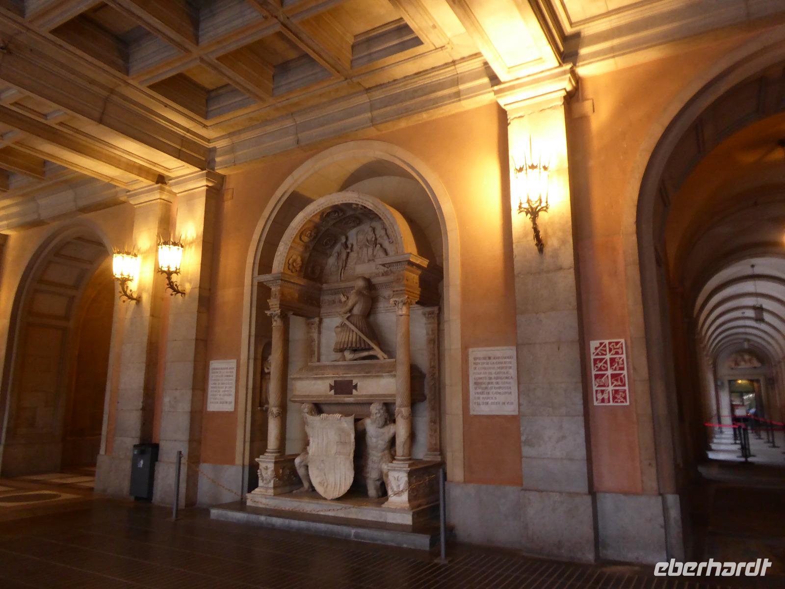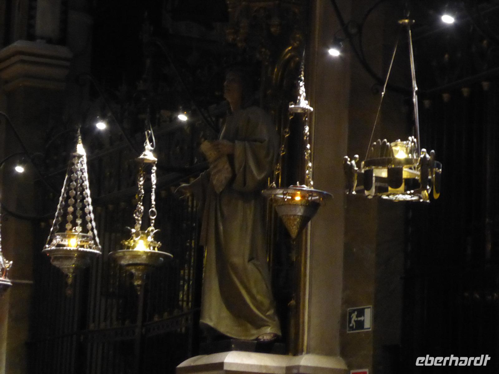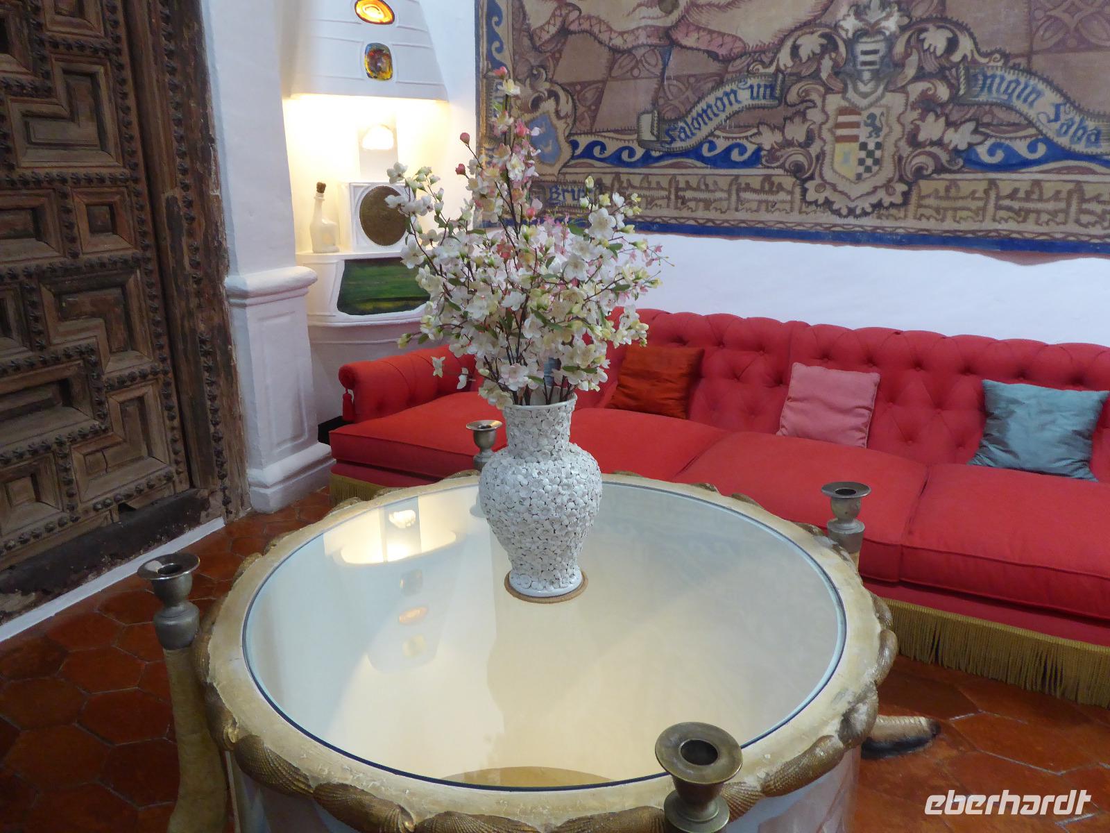 Nach einem ausgiebigen Frühstück treffen wir uns punkt Neun mit Lorenzo in der Lobby. Der Bus ist auch schon da und mit José , unserem Busfahrer, geht es heute kreuz und quer durch Barcelona. Zunächst fahren wir auf der längsten Straße der schachbrettangeordneten Stadt, der La Grande bis ins Zentrum. Auffällig sind die wunderschönen Fassaden der Häuser. Wir besuchen die Casa Mila. Die Wartezeit verkürzt uns unterhaltend eine Dame aus einer anderen Gruppe, die auf Krawall gebürstet ist und sich mit Carlos anlegt, weil sie meint, wir hätten uns vorgedrängelt. Da ist sie aber an den Richtigen geraten. Carlos lässt sich die Butter nicht vom Brot nehmen. Zu ihrer Beruhigung ist ihre Gruppe dann tatsächlich vor uns dran. Es dauert ein bisschen, aber bald schluckt auch uns dieses ungewöhnliche Haus. Wir bekommen Audioguides und fahren in kleinen Grüppchen mit dem Fahrstuhl auf die Terrasse. Was für eine grandiose Anlage. Die Bewohner hatten es hier wirklich gut. Nachdem wir die Aussicht nach allen Seiten genossen haben, geht es treppab durch das ganze Haus. Wir bewundern die Konstruktion des Dachbodens, schlendern an den Zimmern vorbei, deren Einrichtung so manche Erinnerung weckt. Obwohl wir so viel Zeit hatten, müssen wir uns jetzt doch sputen, denn wir haben bald den nächsten Termin. Um 11.30 Uhr werden wir im Musikpalast erwartet. Hier treffen wir auch auf die andere Eberhardt-Gruppe mit meinem lieben Kollegen Benjamin. Zunächst sehen wir einen Film über die Geschichte des Hauses, der zwar in Spanisch ist, aber durch die Bilder trotz Sprachunkenntnis, verstanden werden kann. Bei der Führung ist es dann etwas anders. Wir werden aufgefordert, einer spanisch sprechenden Führerin zu folgen, die unserem Lorenzo aber keine Chance lässt, für uns zu übersetzen. Wir beobachten die Auseinandersetzung der Beiden, aber diese Dame ist unerbittlich, sie hat für das Anliegen der deutschen Gäste kein Verständnis. Lorenzo tut was er kann und informiert uns trotzdem über das Geschehen im Musikpalast. Zu aller Überraschung bringt uns Benjamin ein Ständchen und erfreut damit nicht nur uns, sondern auch die Gäste der unnahbaren Reiseführerin. Anschließend genießen wir während der Mittagspause Tappas, Kaffee oder Bier je nach Bedarf. Eine ganze Stunde ist Zeit für Müßiggang. Nun fahren wir zum Park Güell. Wir haben so ein Glück, die Sonne scheint, der Himmel ist strahlend blau und die Fliesenscherben, die die Säulen schmücken, funkeln und glitzern. Wir spazieren durch die traumhafte Anlage und haben ausreichend Zeit, uns satt zu fotografieren. Auch unser Gruppenfoto entsteht hier.